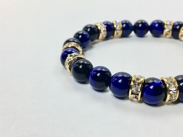 こちらは、8mm玉のブルータイガーアイを使ったパワーストーンブレスレットです。シンプルなデザインでどんなコーディネートにも合わせやすいデザインに仕上げています。サイズは内周約15cmです。気になる方は是非この機会にどうぞ。