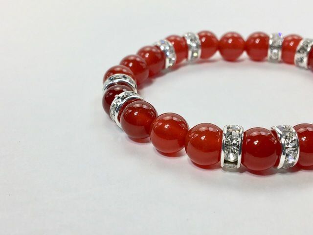 こちらは、8mm玉の赤瑪瑙を使ったパワーストーンブレスレットです。シンプルなデザインでどんなコーディネートにも合わせやすいデザインに仕上げています。サイズは内周約15cmです。気になる方は是非この機会にどうぞ。