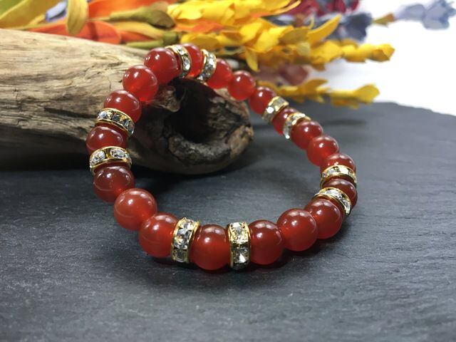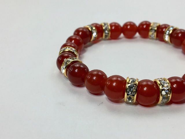 こちらは、8mm玉の赤瑪瑙を使ったパワーストーンブレスレットです。シンプルなデザインでどんなコーディネートにも合わせやすいデザインに仕上げています。サイズは内周約15cmです。気になる方は是非この機会にどうぞ。