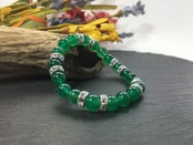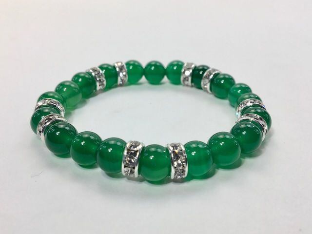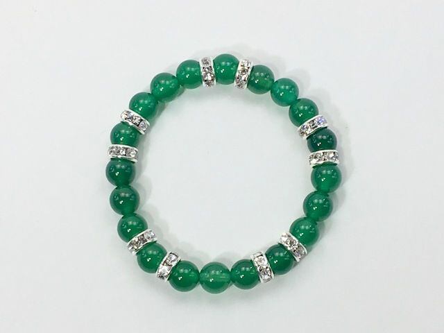 こちらは、8mm玉の緑瑪瑙を使ったパワーストーンブレスレットです。シンプルなデザインでどんなコーディネートにも合わせやすいデザインに仕上げています。サイズは内周約15cmです。気になる方は是非この機会にどうぞ。