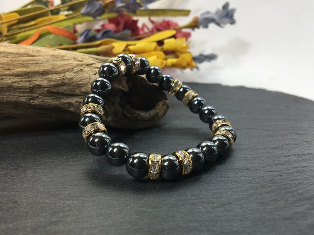 こちらは、8mm玉のヘマタイトを使ったパワーストーンブレスレットです。シンプルなデザインでどんなコーディネートにも合わせやすいデザインに仕上げています。サイズは内周約15cmです。気になる方は是非この機会にどうぞ。