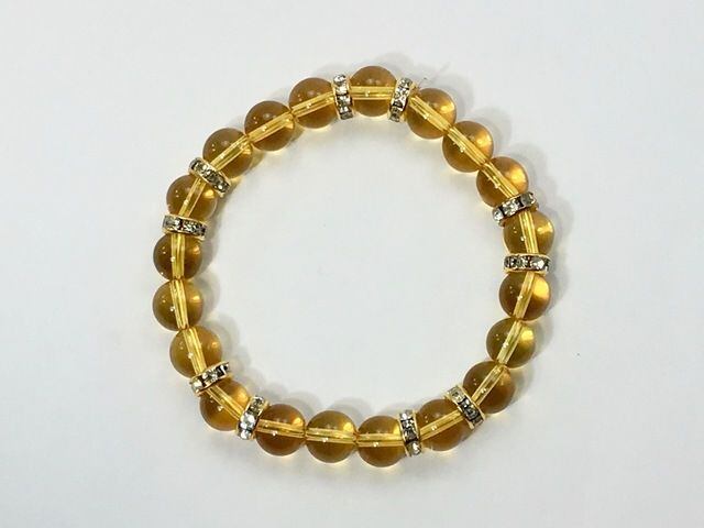 こちらは、8mm玉のシトリンを使ったパワーストーンブレスレットです。シンプルなデザインでどんなコーディネートにも合わせやすいデザインに仕上げています。サイズは内周約15cmです。気になる方は是非この機会にどうぞ。