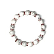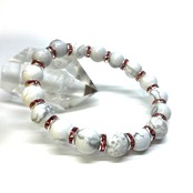 こちらは、ハウライトの8mm玉を使用したパワーストーンブレスレットです。石との間にはロンデルを挟み高級感を演出しております。シンプルなデザインは、シーン問わずどんなコーディネートとも合わせ易いブレスレットです。サイズは内周約15cm (手首周りを測り少し余裕をもってお買い求めくださいませ。)です。当社の中でも一番人気の実績があるデザインとなっております。気になる方はお早めにどうぞ。