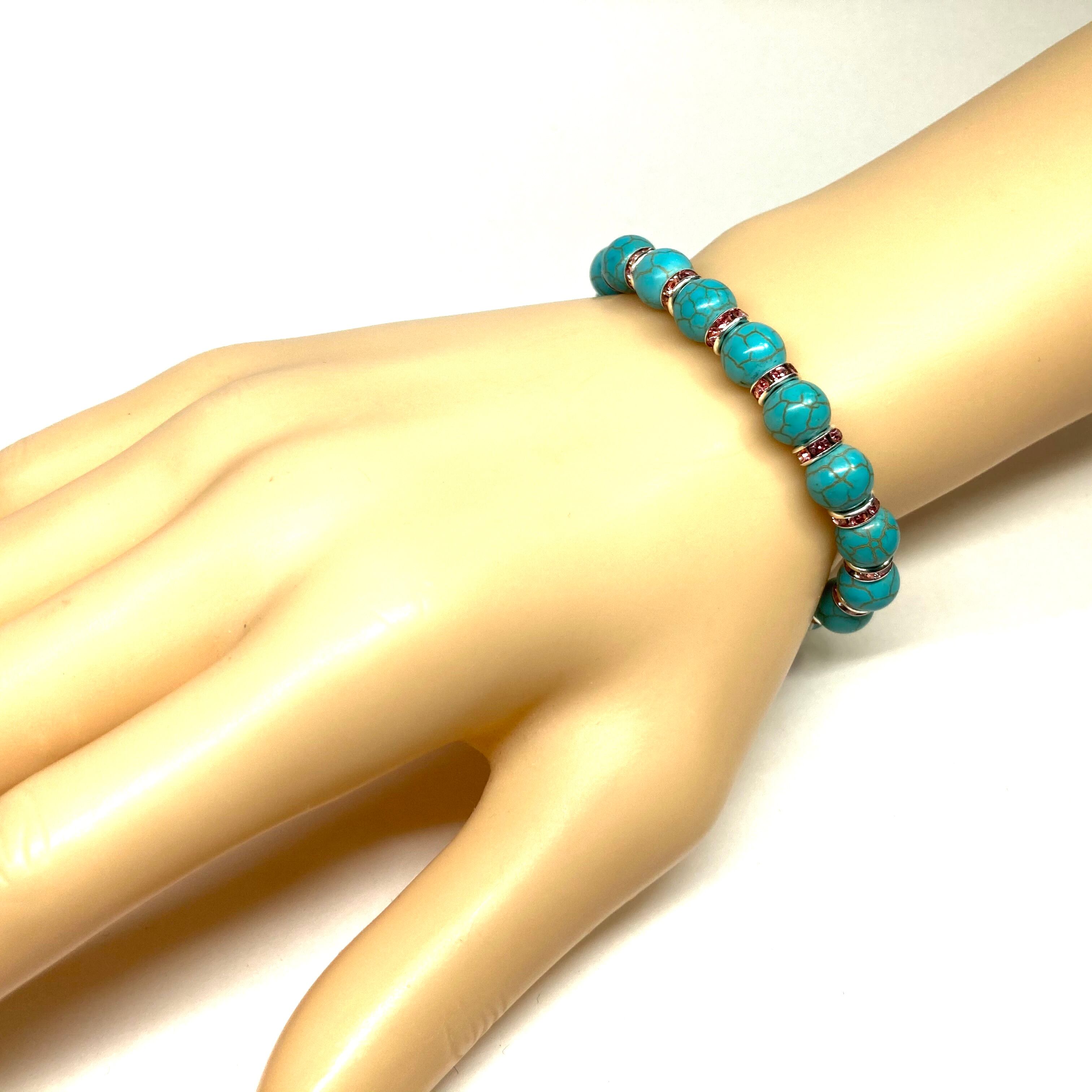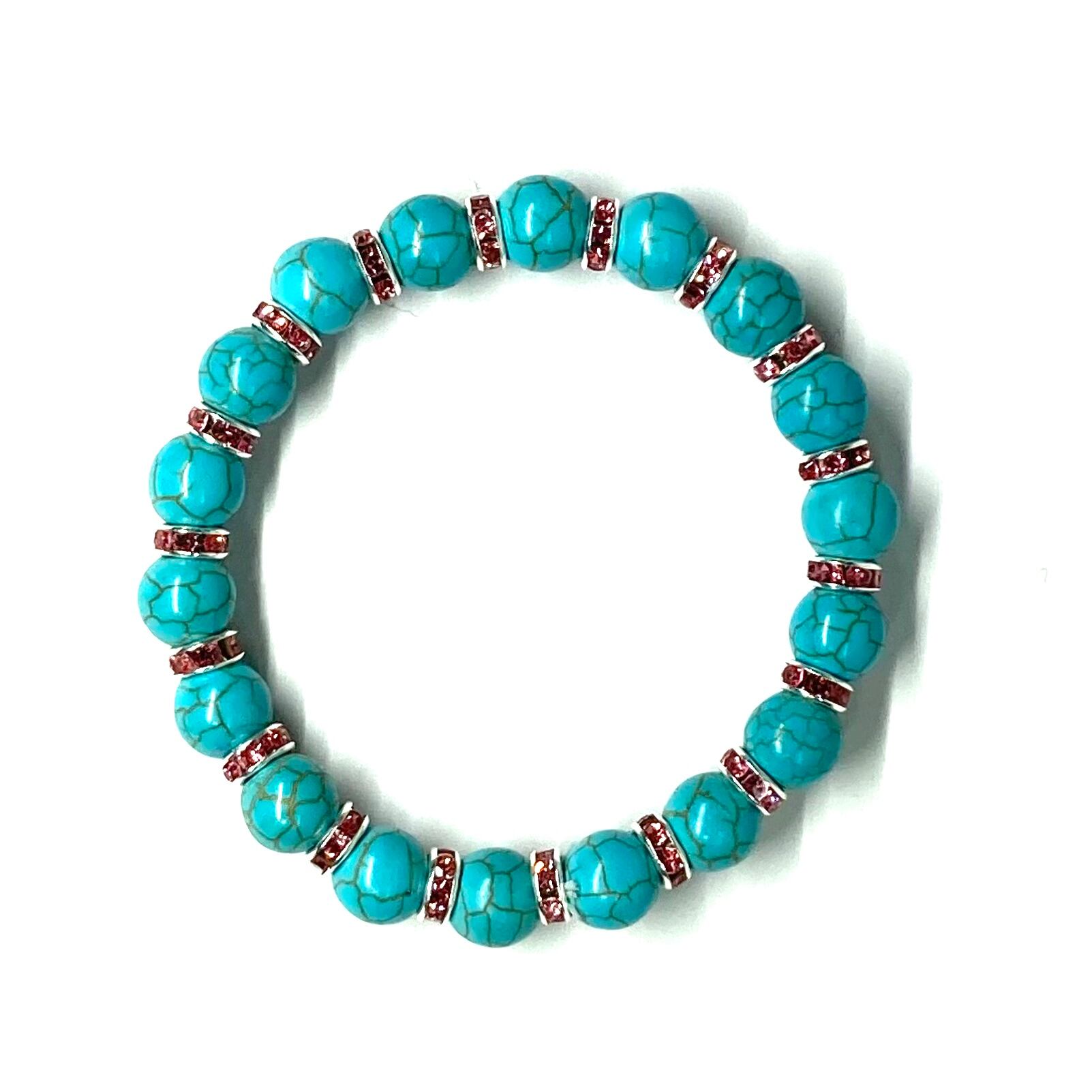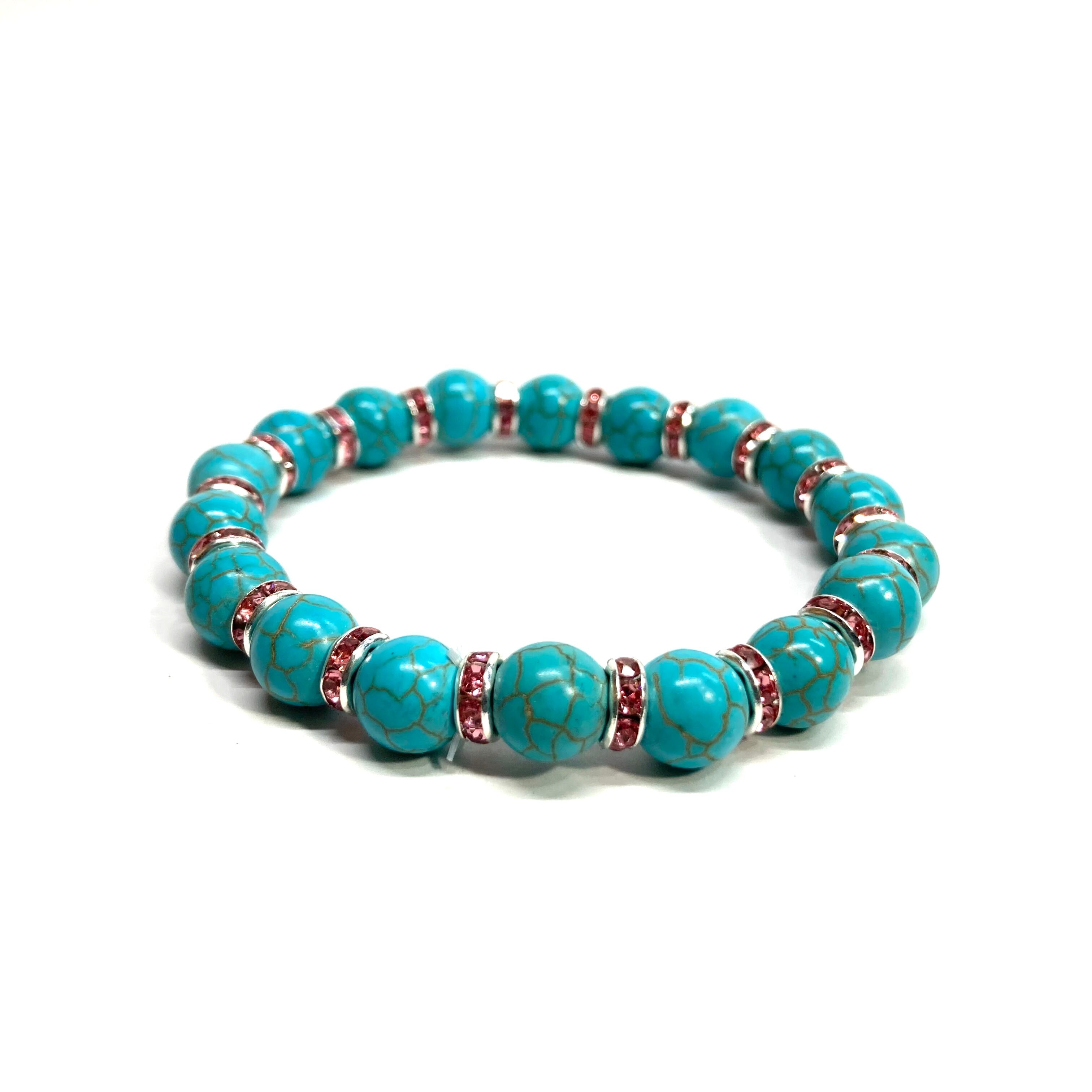 ターコイズ パワーストーン ブレスレット 8mm #2 (ピンク)メンズ・レディース 男性・女性 数珠ブレス 開運
