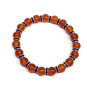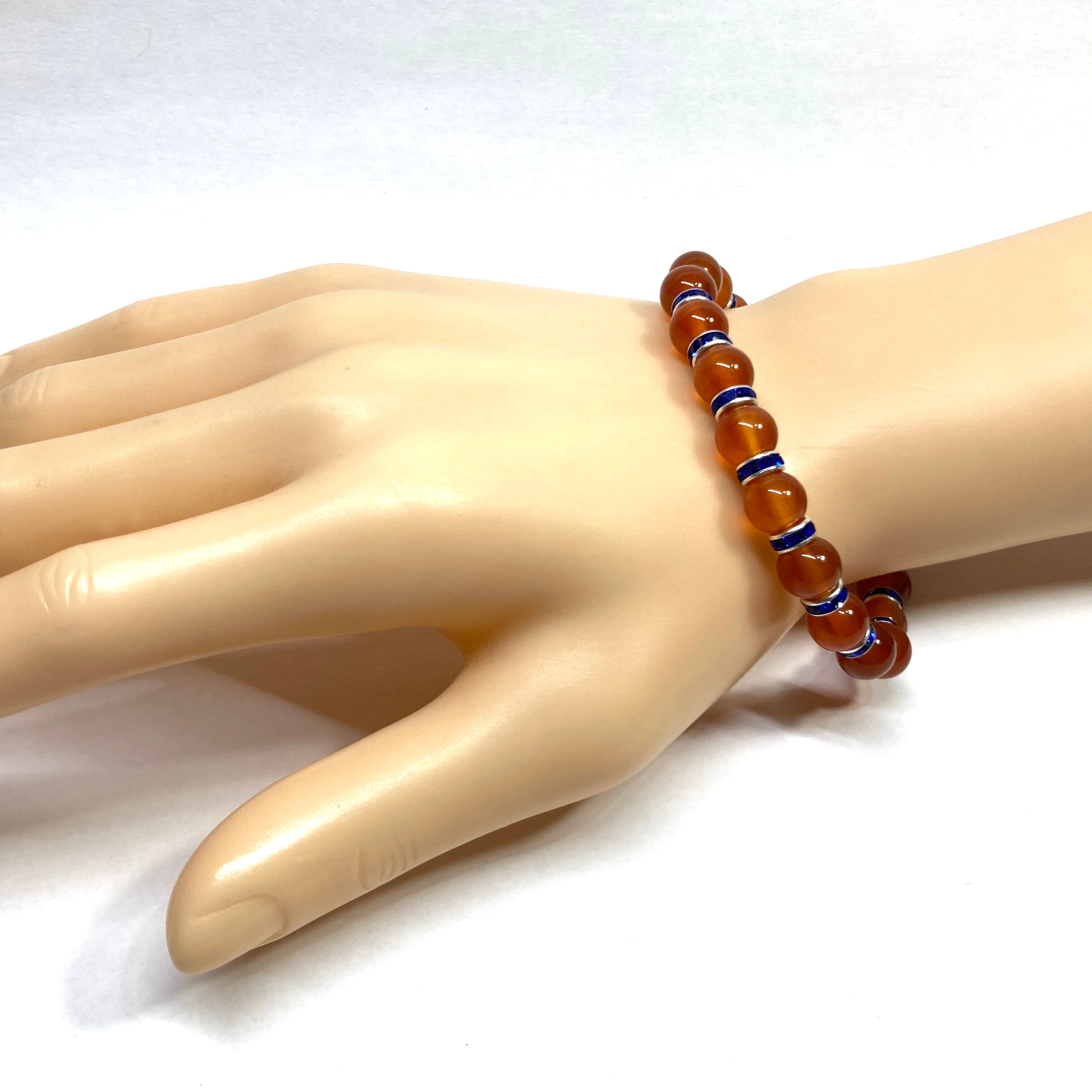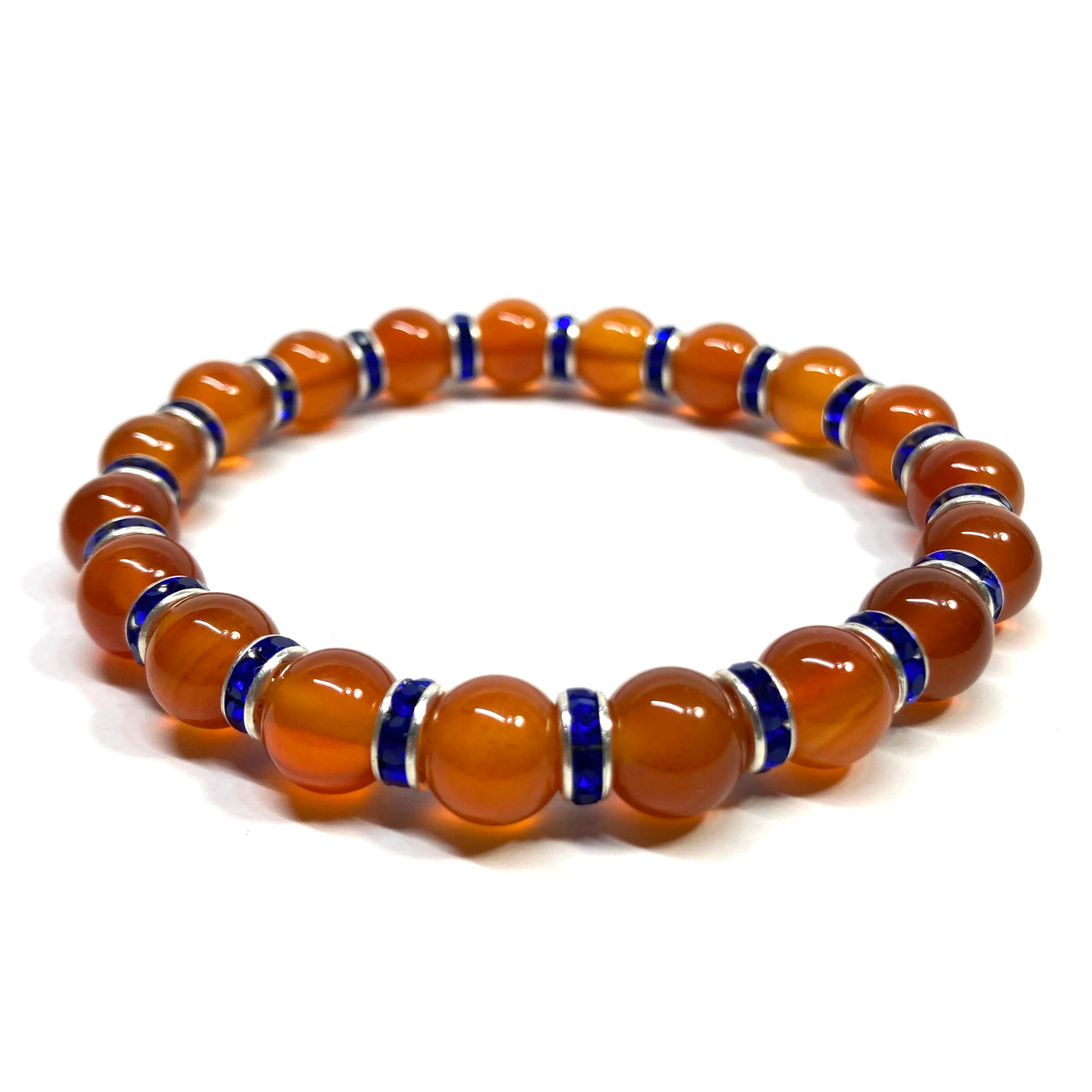 こちらは、カーネリアンの8mm玉を使用したパワーストーンブレスレットです。石との間にはロンデルを挟み高級感を演出しております。シンプルなデザインは、シーン問わずどんなコーディネートとも合わせ易いブレスレットです。サイズは内周約15cm (手首周りを測り少し余裕をもってお買い求めくださいませ。)です。当社の中でも一番人気の実績があるデザインとなっております。気になる方はお早めにどうぞ。