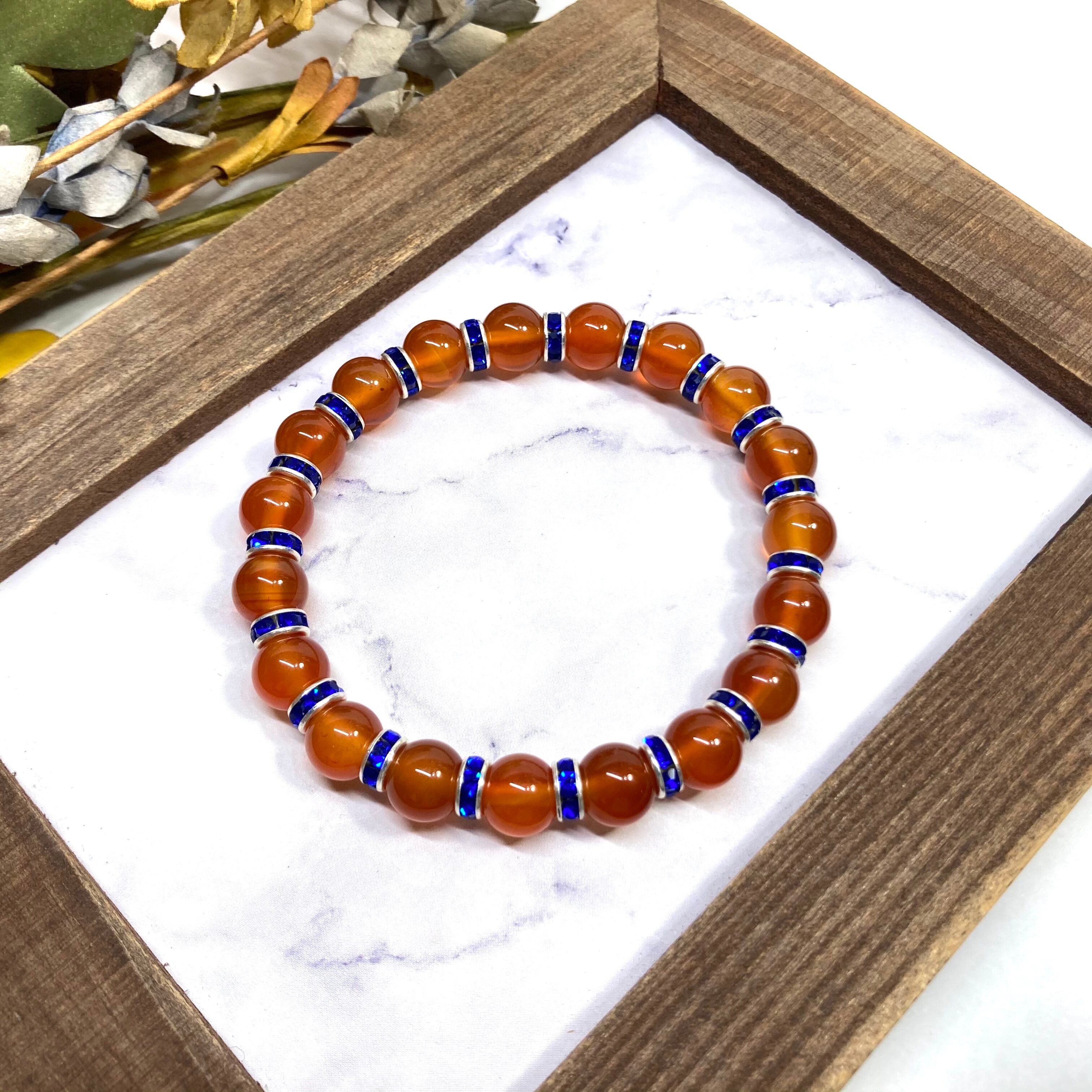 カーネリアン パワーストーン ブレスレット 8mm 7月誕生石 (ダークブルー)メンズ・レディース 男性・女性 数珠ブレス 開運