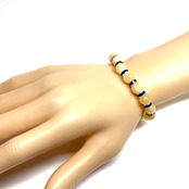 こちらは、アラゴナイトの8mm玉を使用したパワーストーンブレスレットです。石との間にはロンデルを挟み高級感を演出しております。シンプルなデザインは、シーン問わずどんなコーディネートとも合わせ易いブレスレットです。サイズは内周約15cm (手首周りを測り少し余裕をもってお買い求めくださいませ。)です。当社の中でも一番人気の実績があるデザインとなっております。気になる方はお早めにどうぞ。