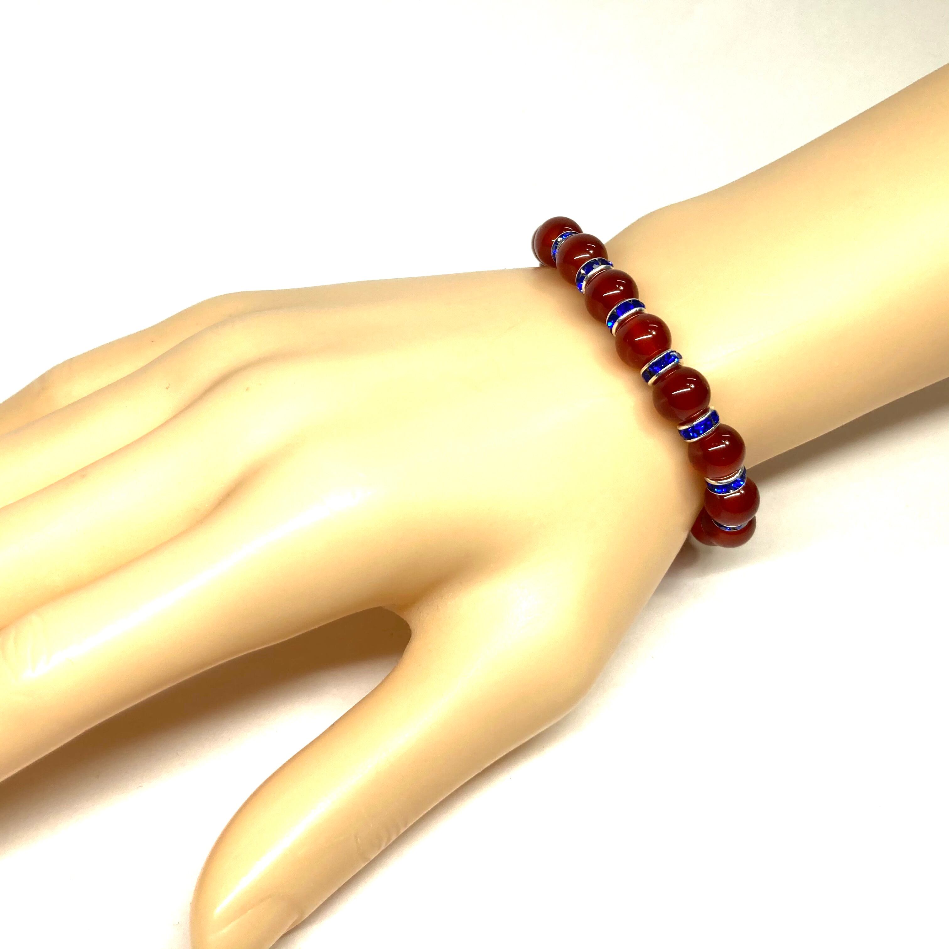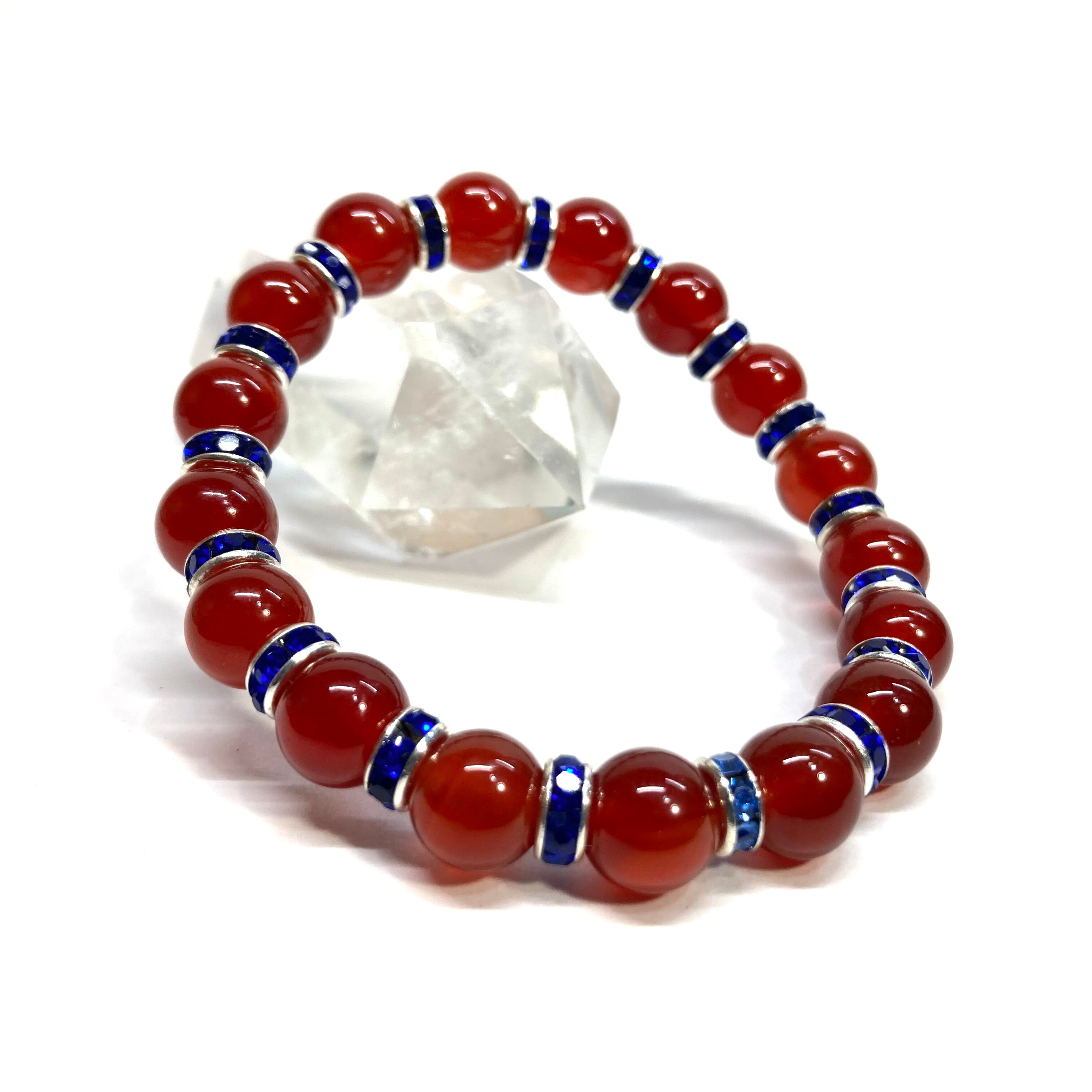 赤瑪瑙 パワーストーン ブレスレット 8mm 7月誕生石 (ダークブルー)メンズ・レディース 男性・女性 数珠ブレス 開運