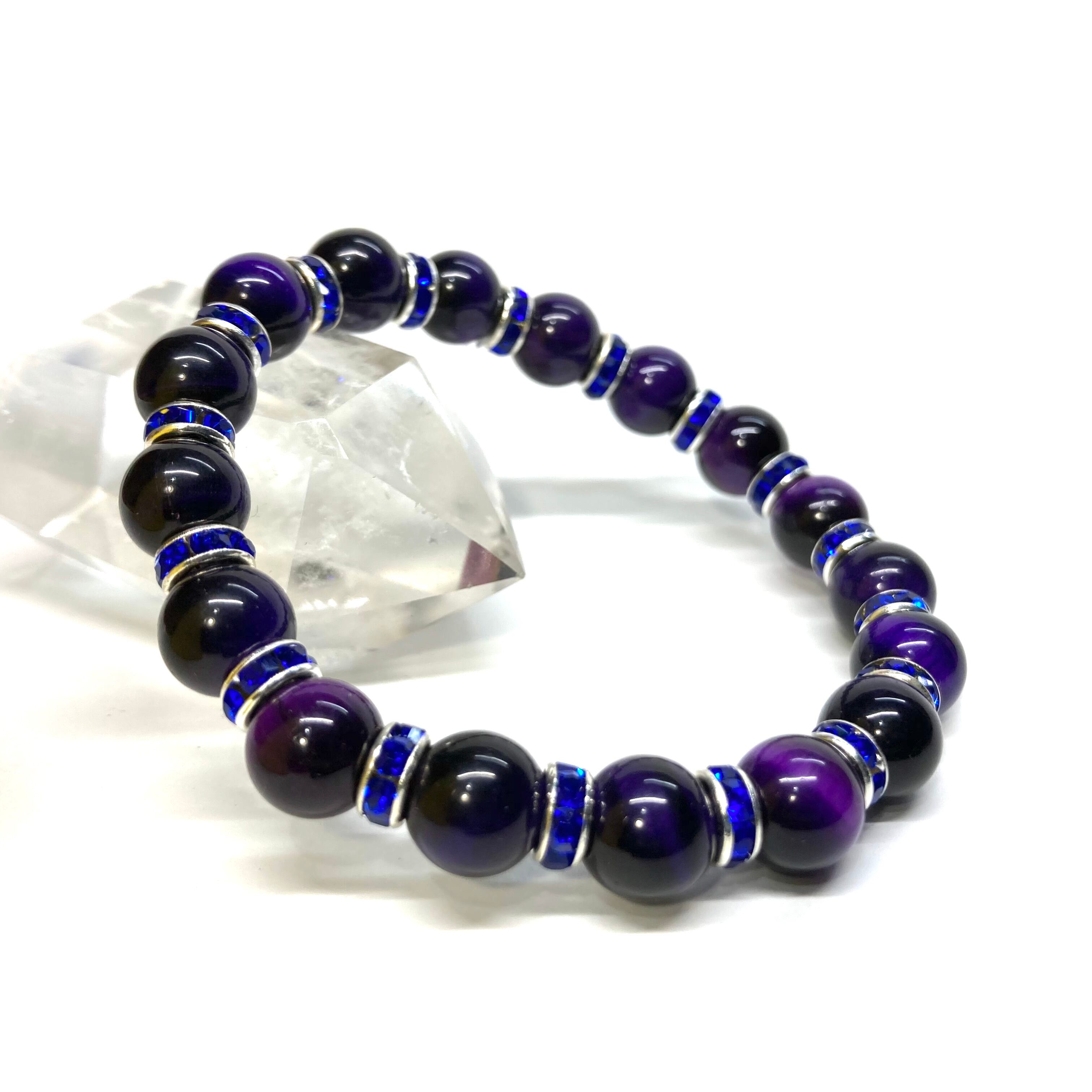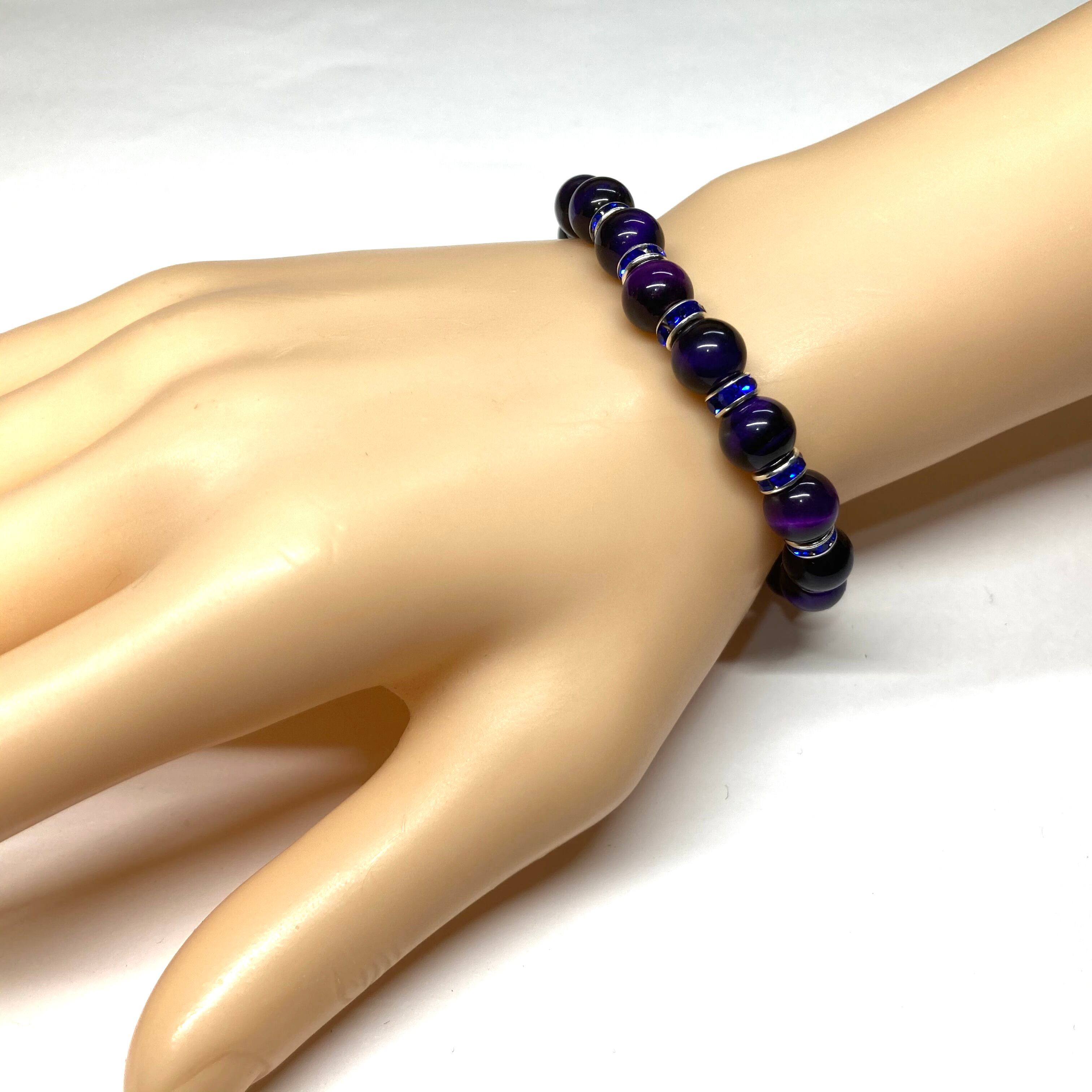 パープルタイガーアイ パワーストーン ブレスレット 8mm (ダークブルー)メンズ・レディース 男性・女性 数珠ブレス 開運