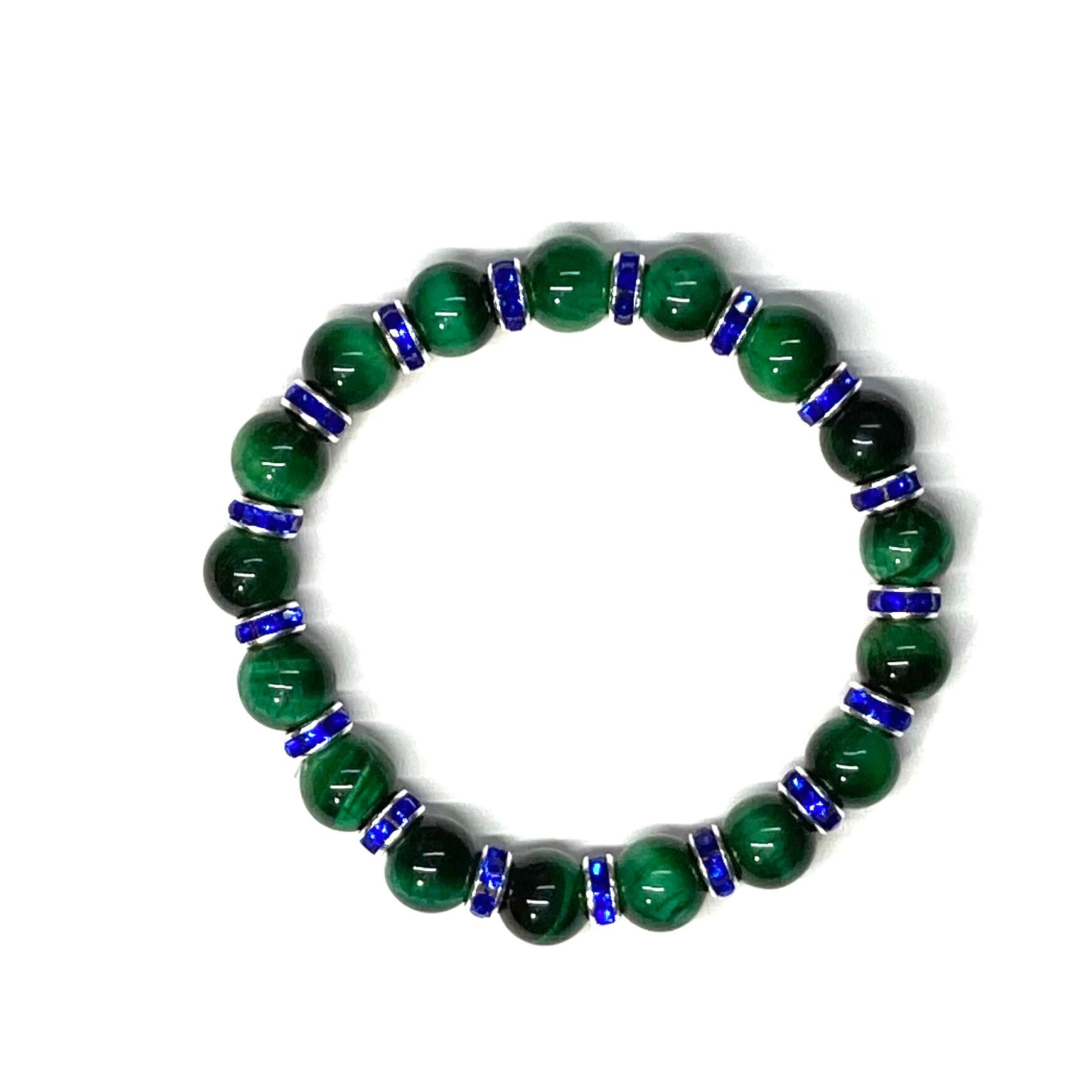 グリーンタイガーアイ パワーストーン ブレスレット 8mm (ダークブルー)メンズ・レディース 男性・女性 数珠ブレス 開運