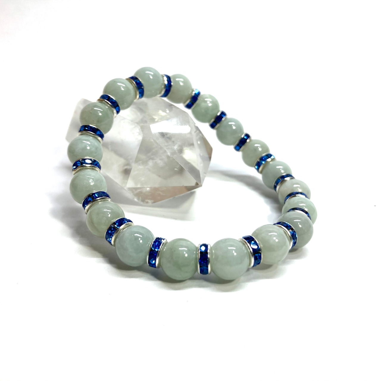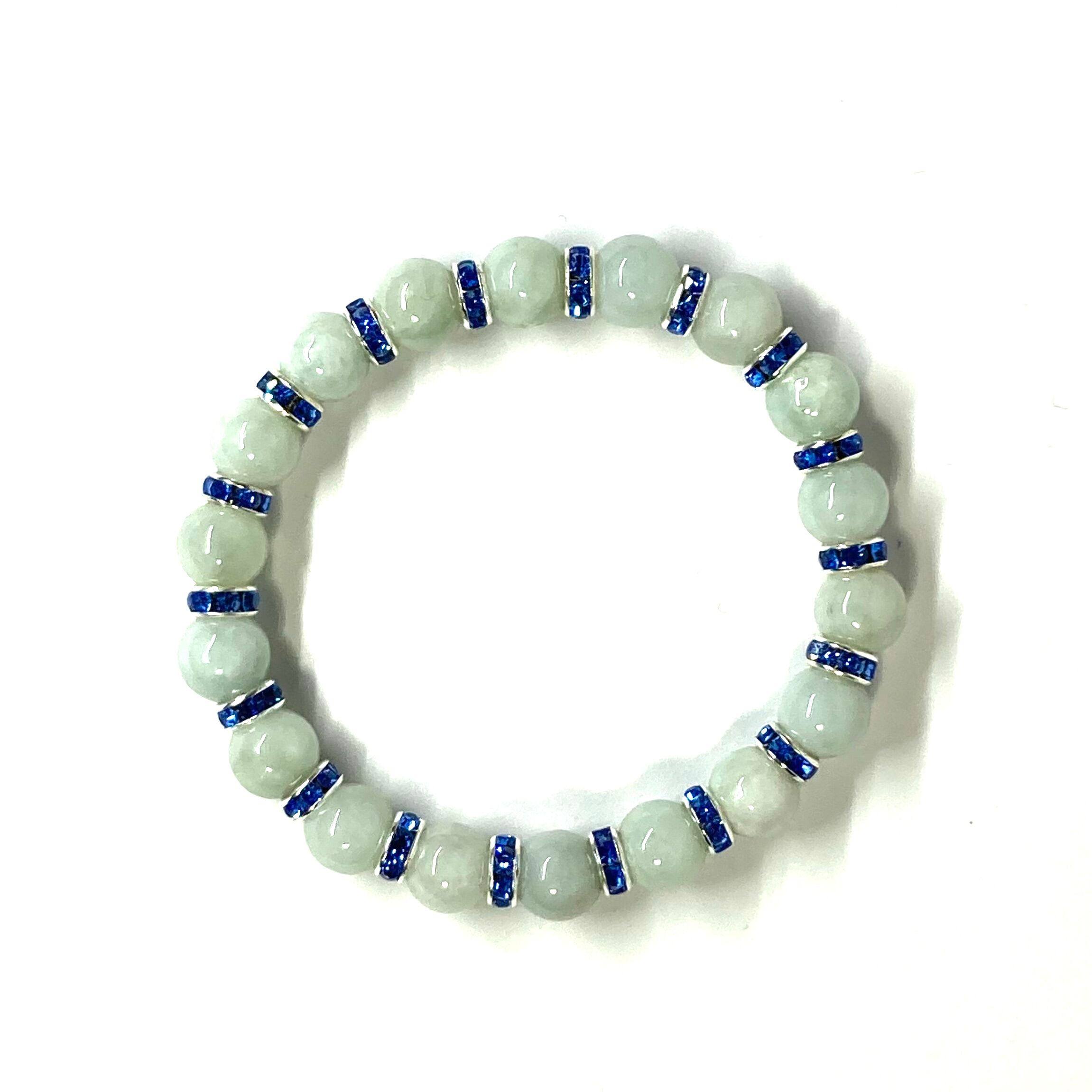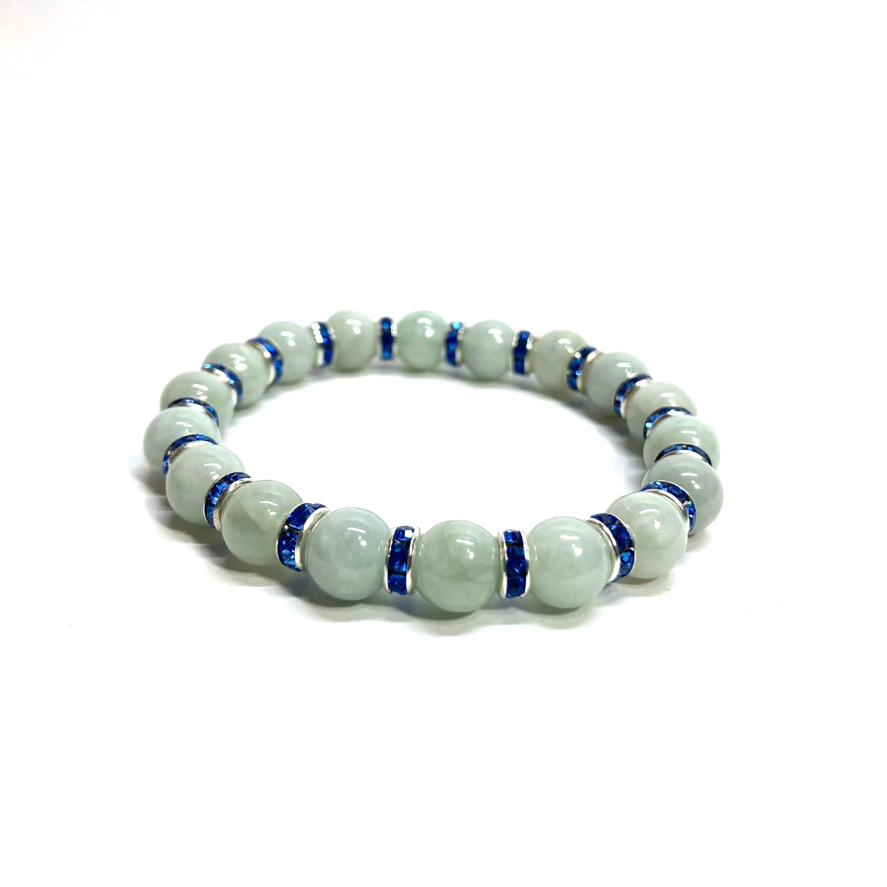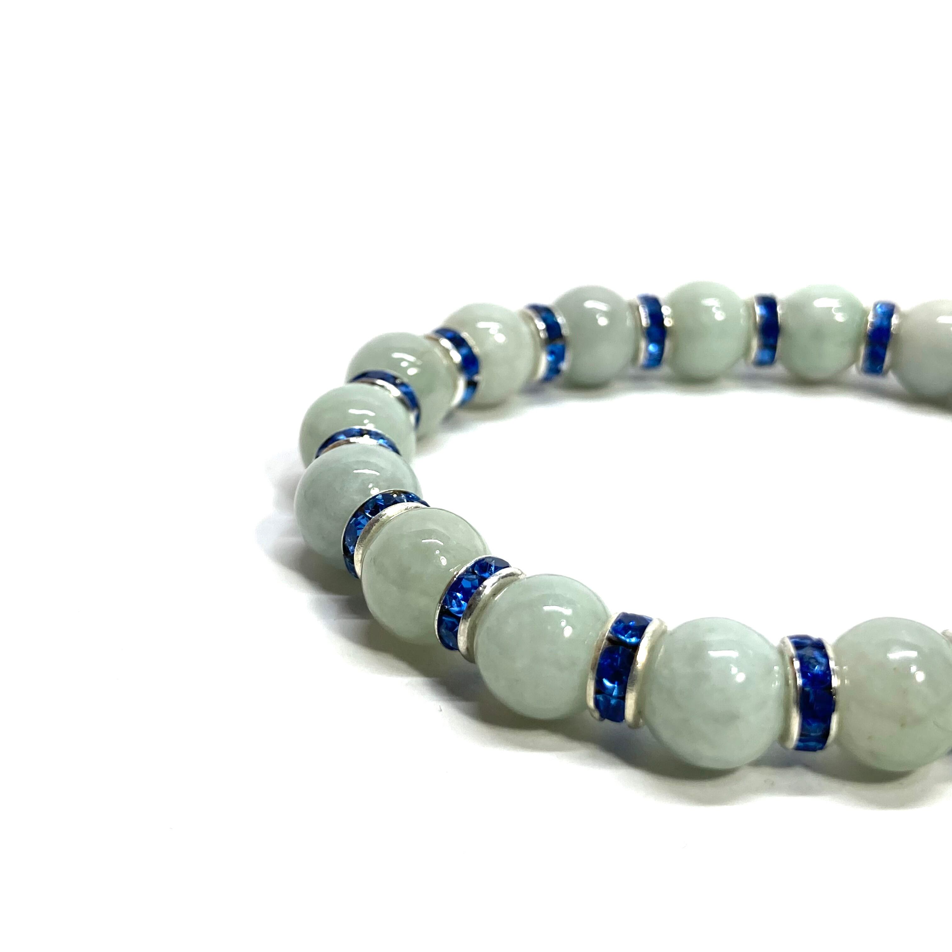 ビルマ翡翠 パワーストーン ブレスレット 8mm 5月誕生 (ブルー)メンズ・レディース 男性・女性 数珠ブレス 開運