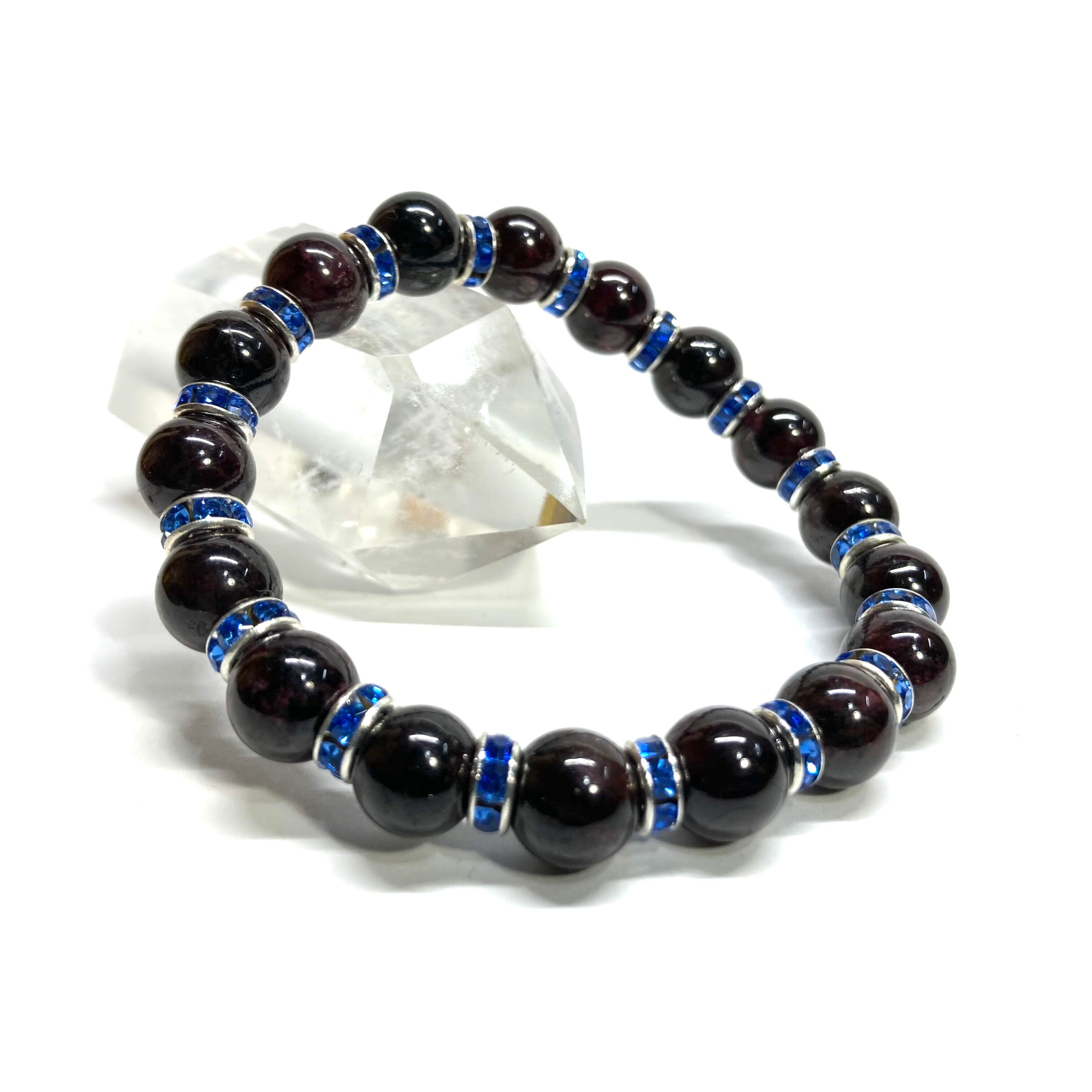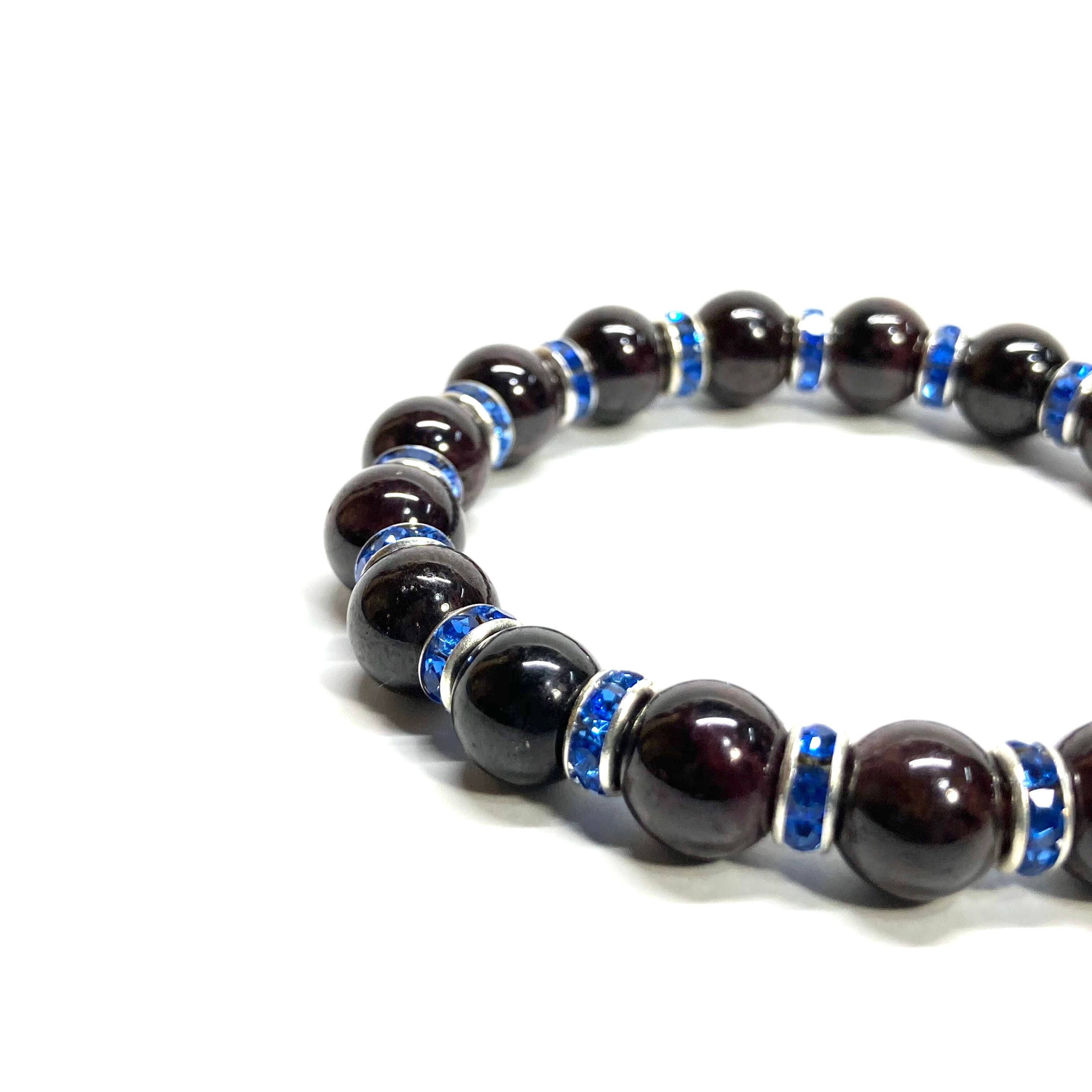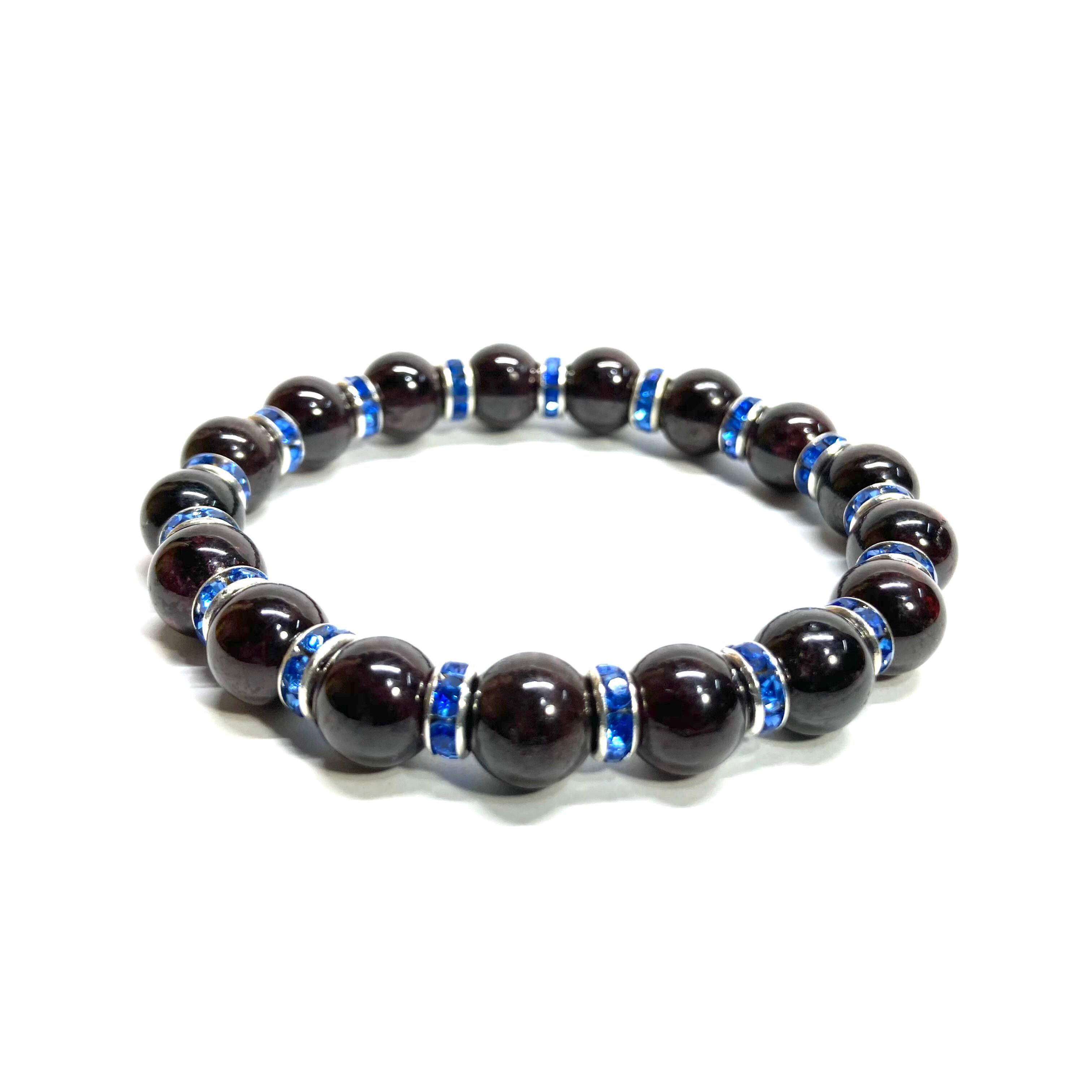 ガーネット パワーストーン ブレスレット 8mm 1月誕生石 (ブルー)メンズ・レディース 男性・女性 数珠ブレス 開運