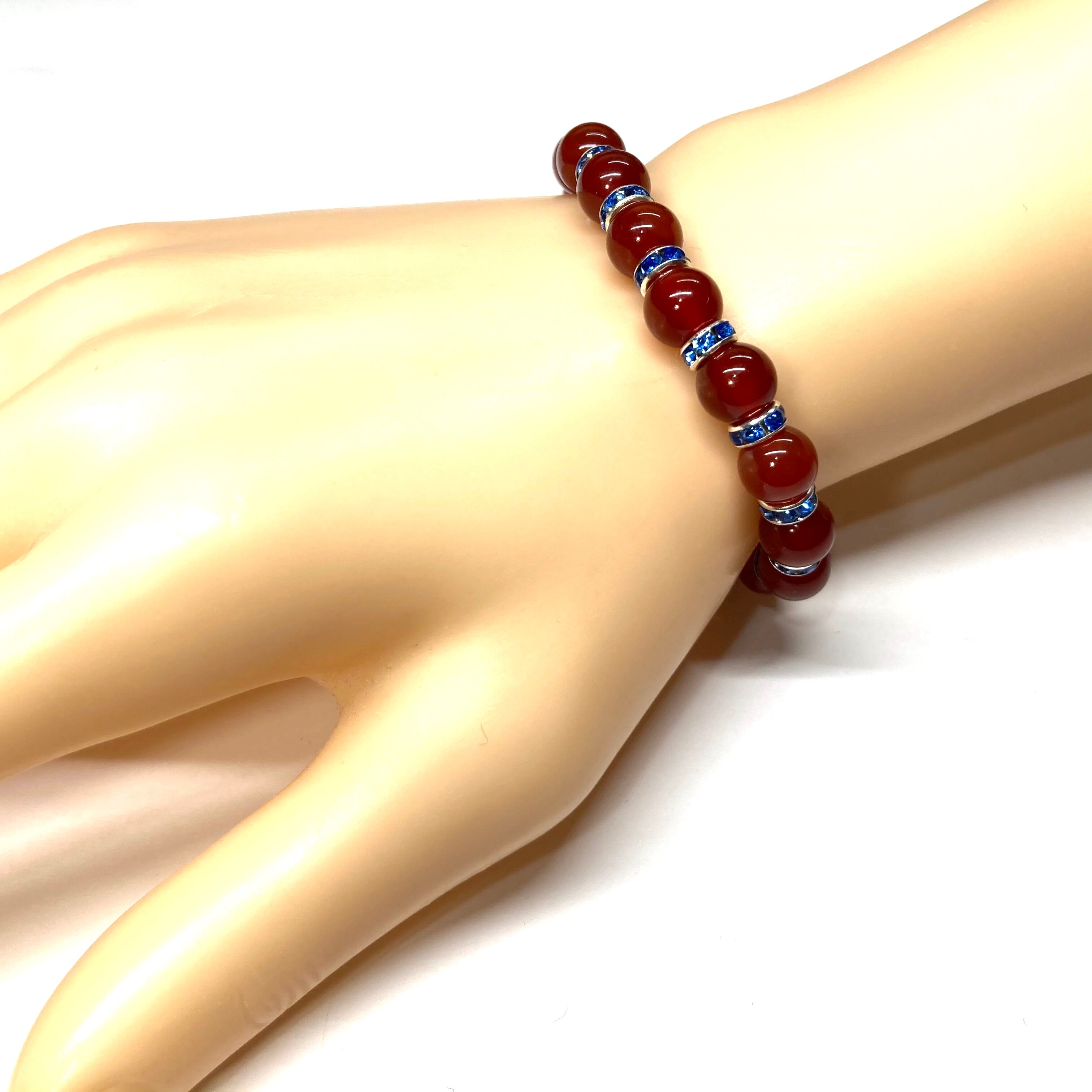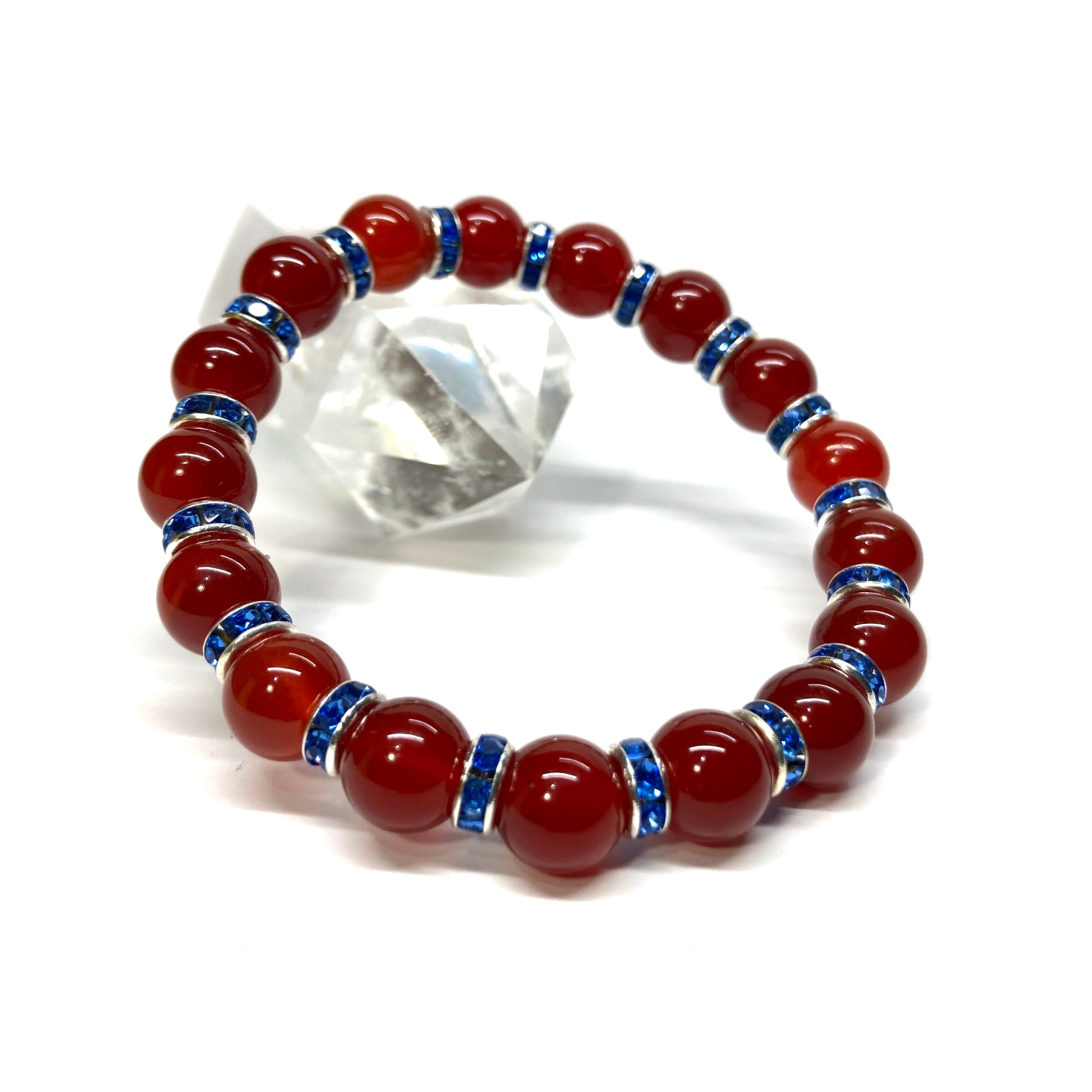 赤瑪瑙 パワーストーン ブレスレット 8mm 7月誕生石 (ブルー)メンズ・レディース 男性・女性 数珠ブレス 開運
