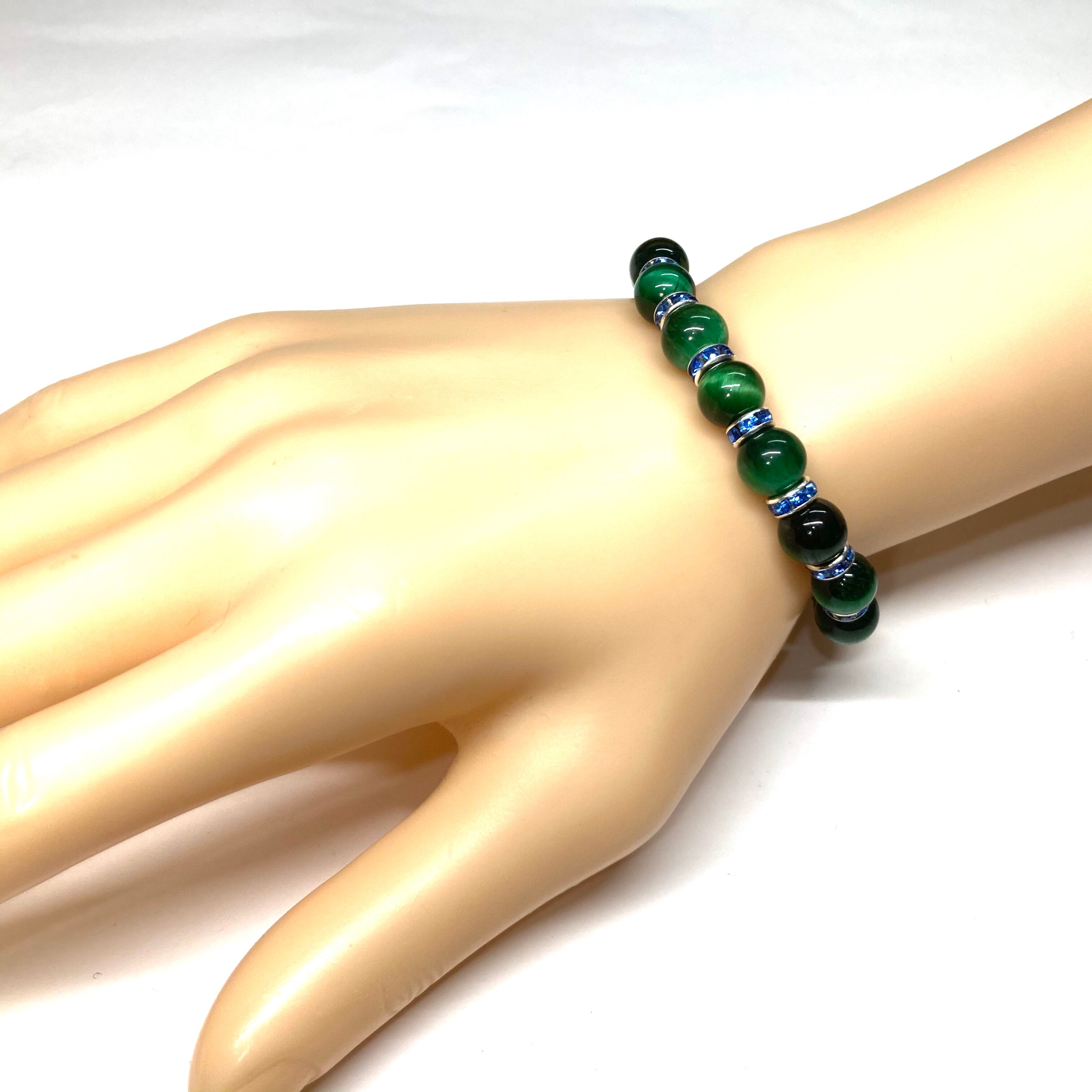 グリーンタイガーアイ パワーストーン ブレスレット 8mm (ブルー)メンズ・レディース 男性・女性 数珠ブレス 開運
