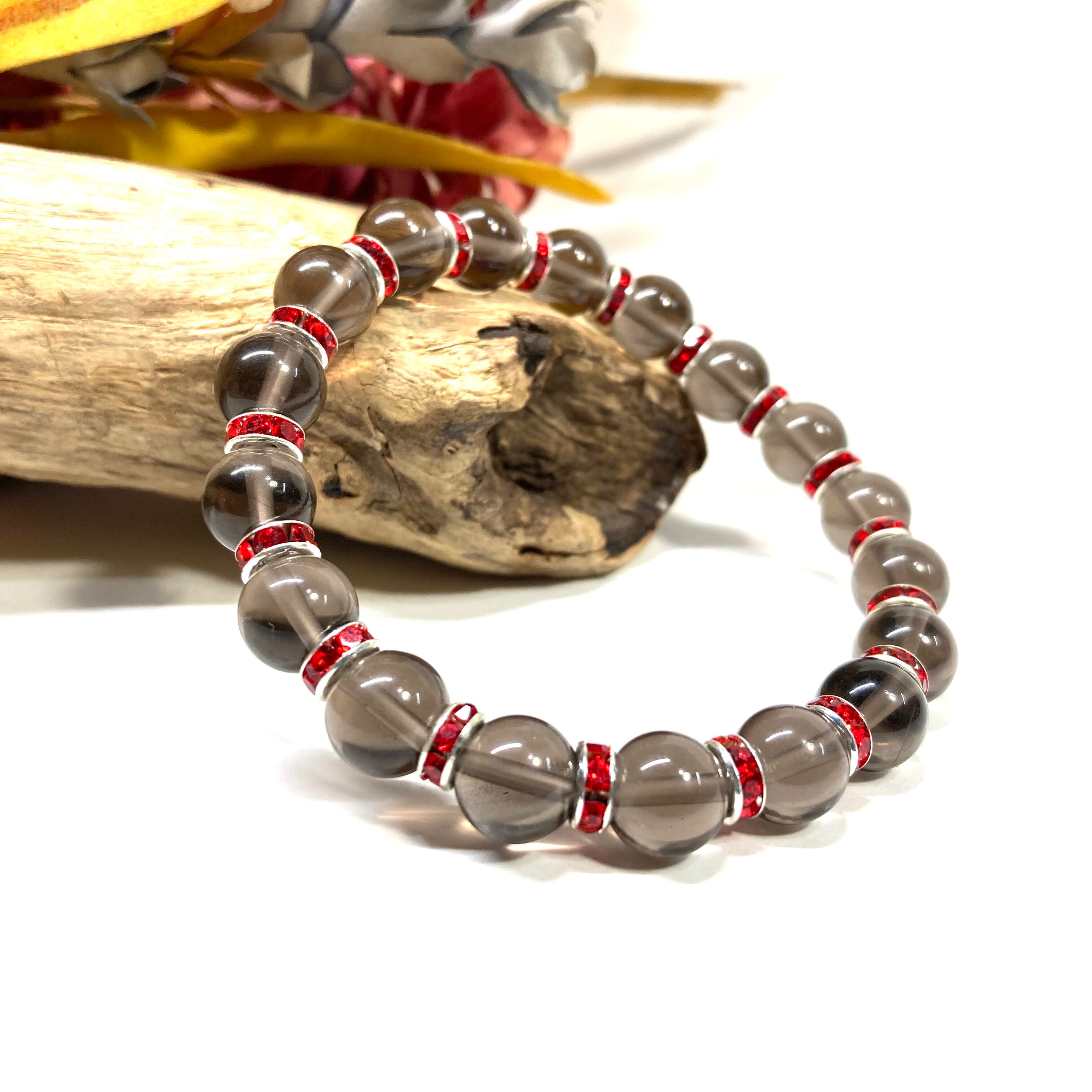 スモーキークォーツ パワーストーン ブレスレット 8mm 天然石 (レッド)メンズ・レディース 男性・女性 数珠ブレス 開運