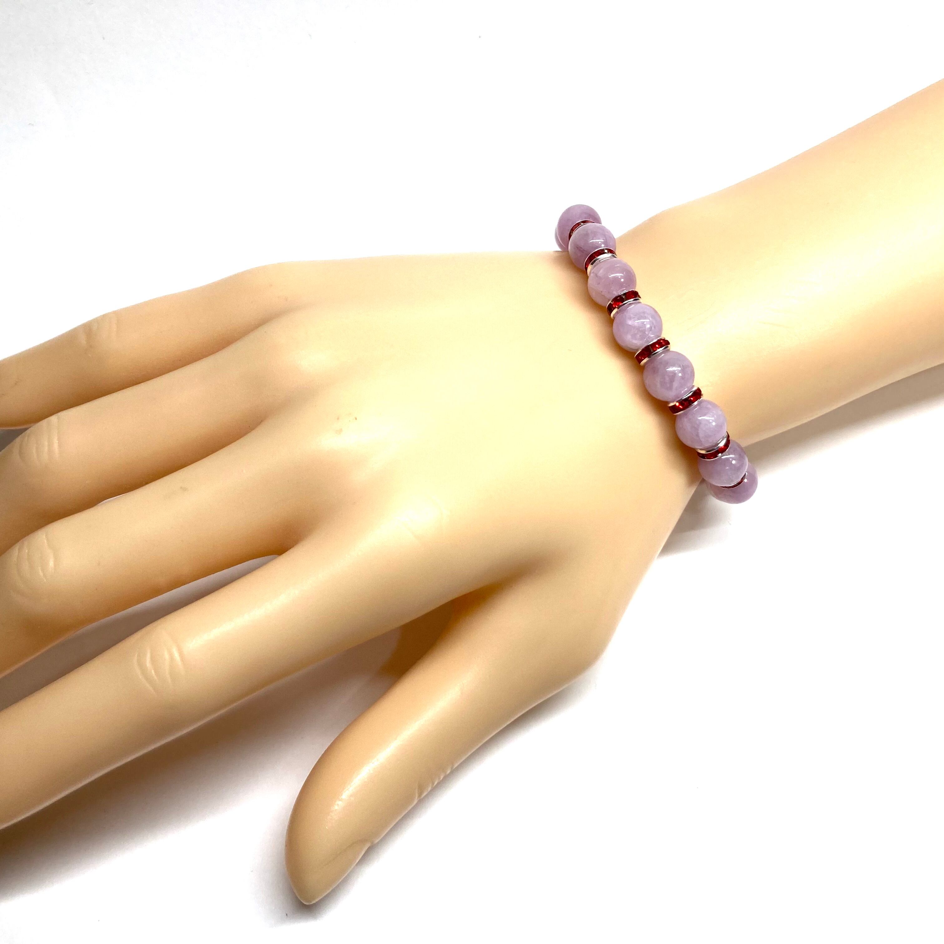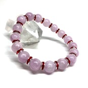 こちらは、クンツァイトの8mm玉を使用したパワーストーンブレスレットです。石との間にはロンデルを挟み高級感を演出しております。シンプルなデザインは、シーン問わずどんなコーディネートとも合わせ易いブレスレットです。サイズは内周約15cm (手首周りを測り少し余裕をもってお買い求めくださいませ。)です。当社の中でも一番人気の実績があるデザインとなっております。気になる方はお早めにどうぞ。