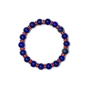 こちらは、ラピスラズリの8mm玉を使用したパワーストーンブレスレットです。石との間にはロンデルを挟み高級感を演出しております。シンプルなデザインは、シーン問わずどんなコーディネートとも合わせ易いブレスレットです。サイズは内周約15cm (手首周りを測り少し余裕をもってお買い求めくださいませ。)です。当社の中でも一番人気の実績があるデザインとなっております。気になる方はお早めにどうぞ。