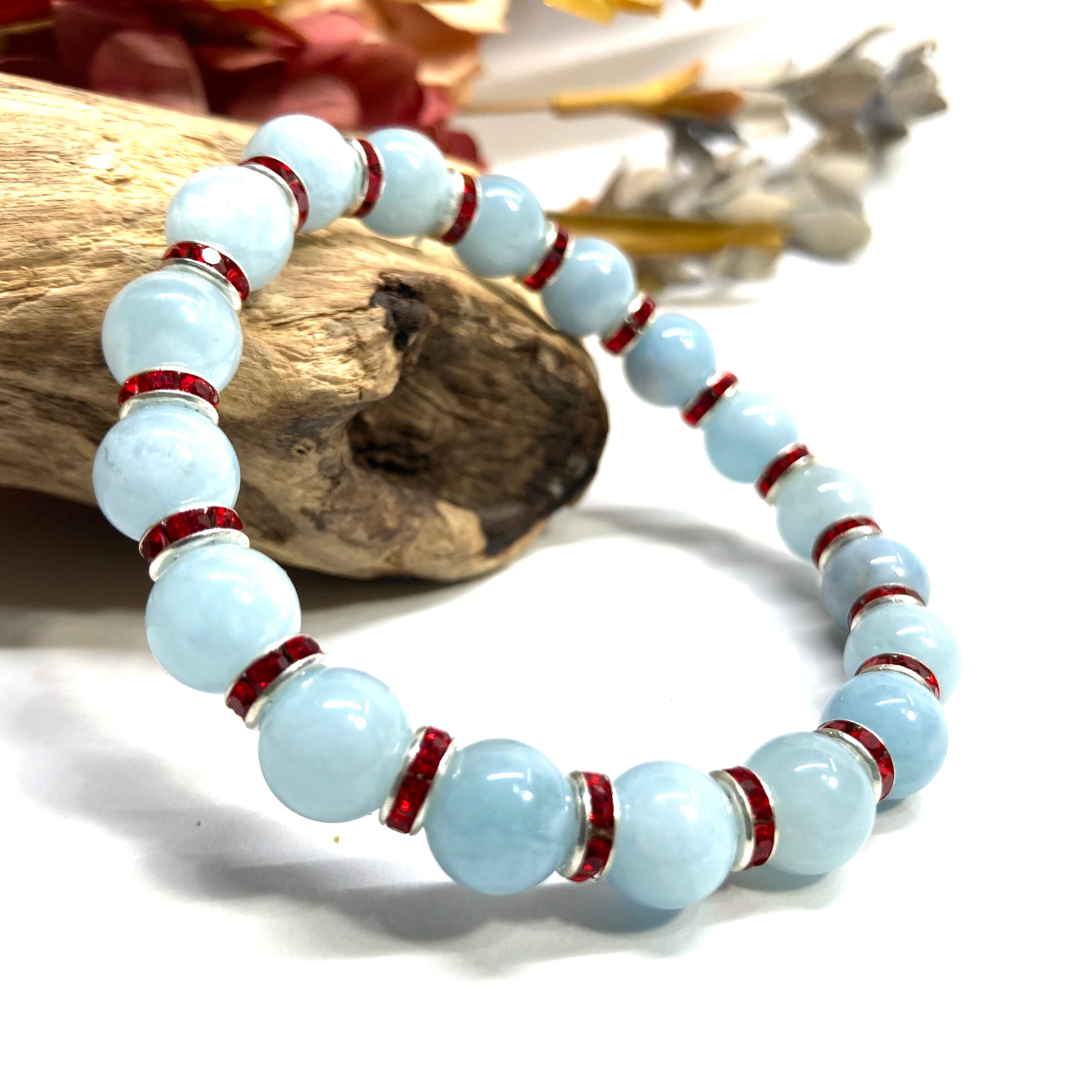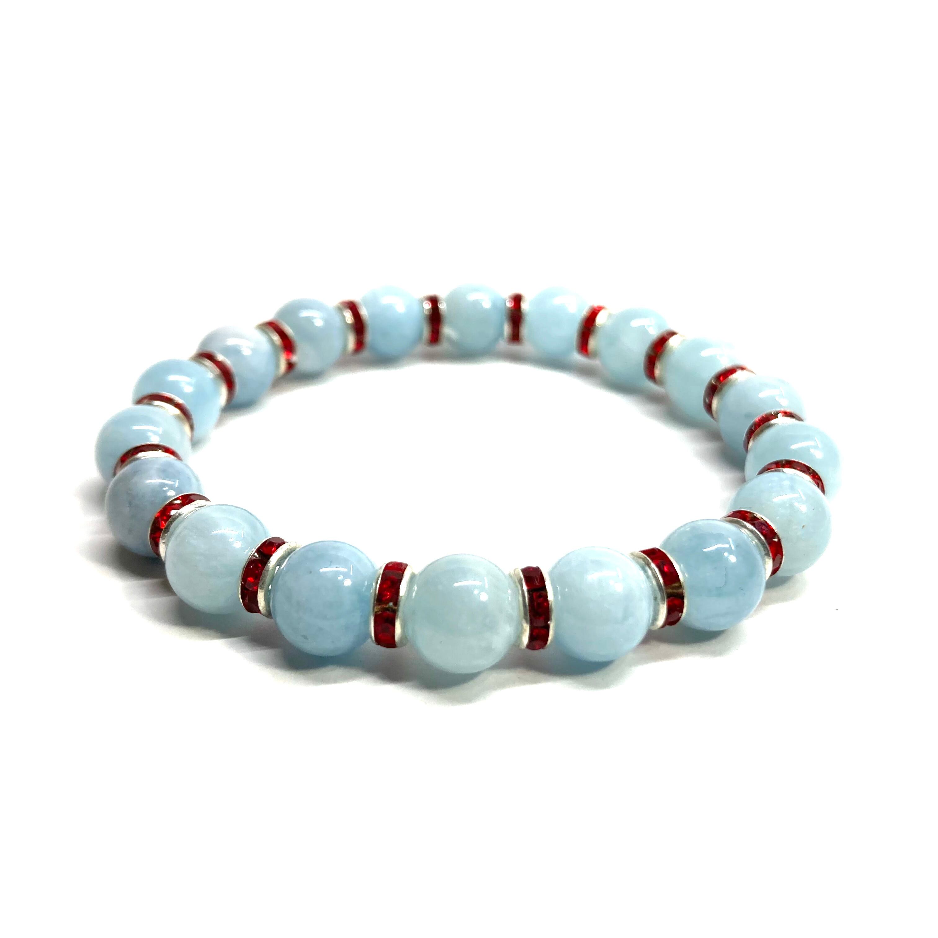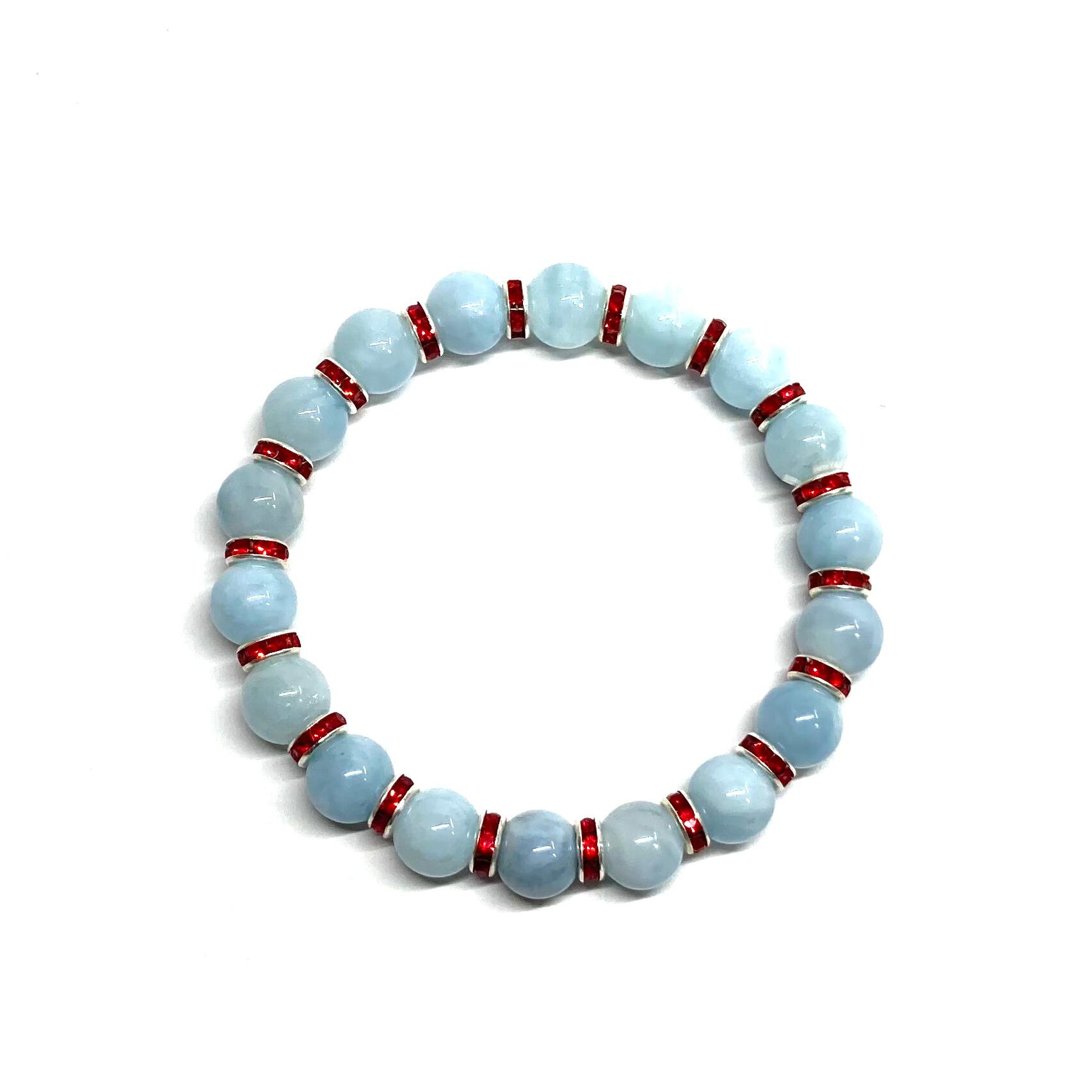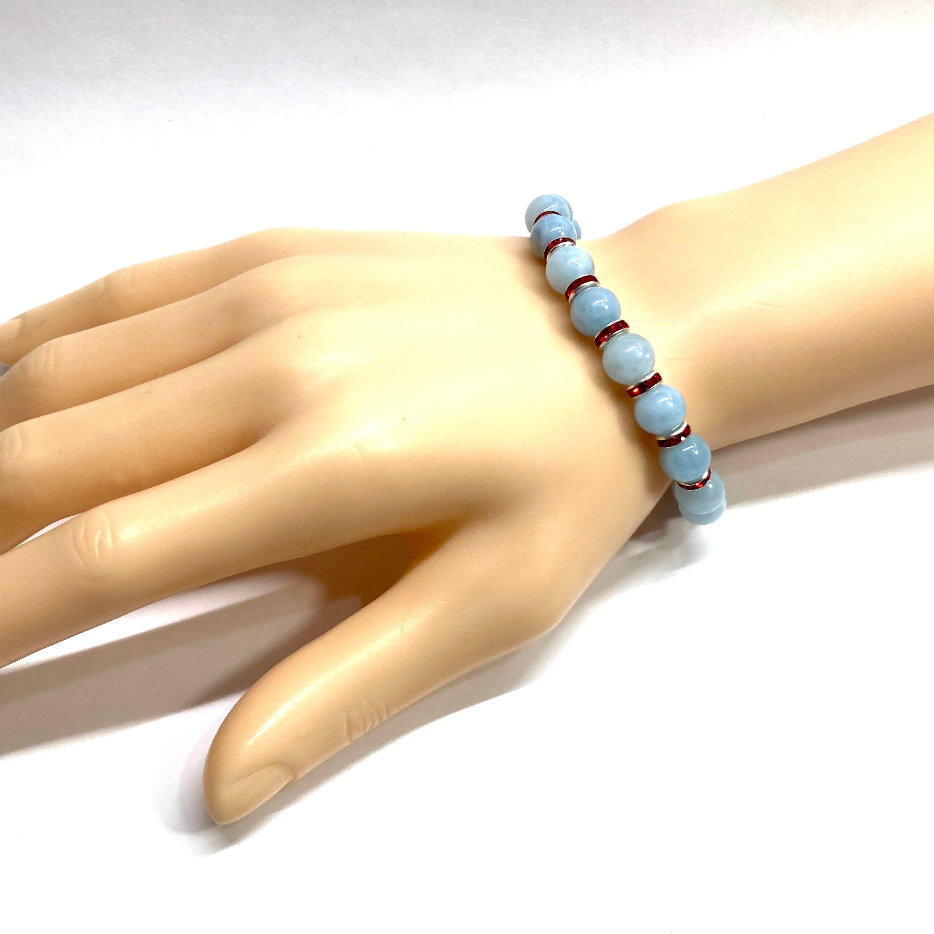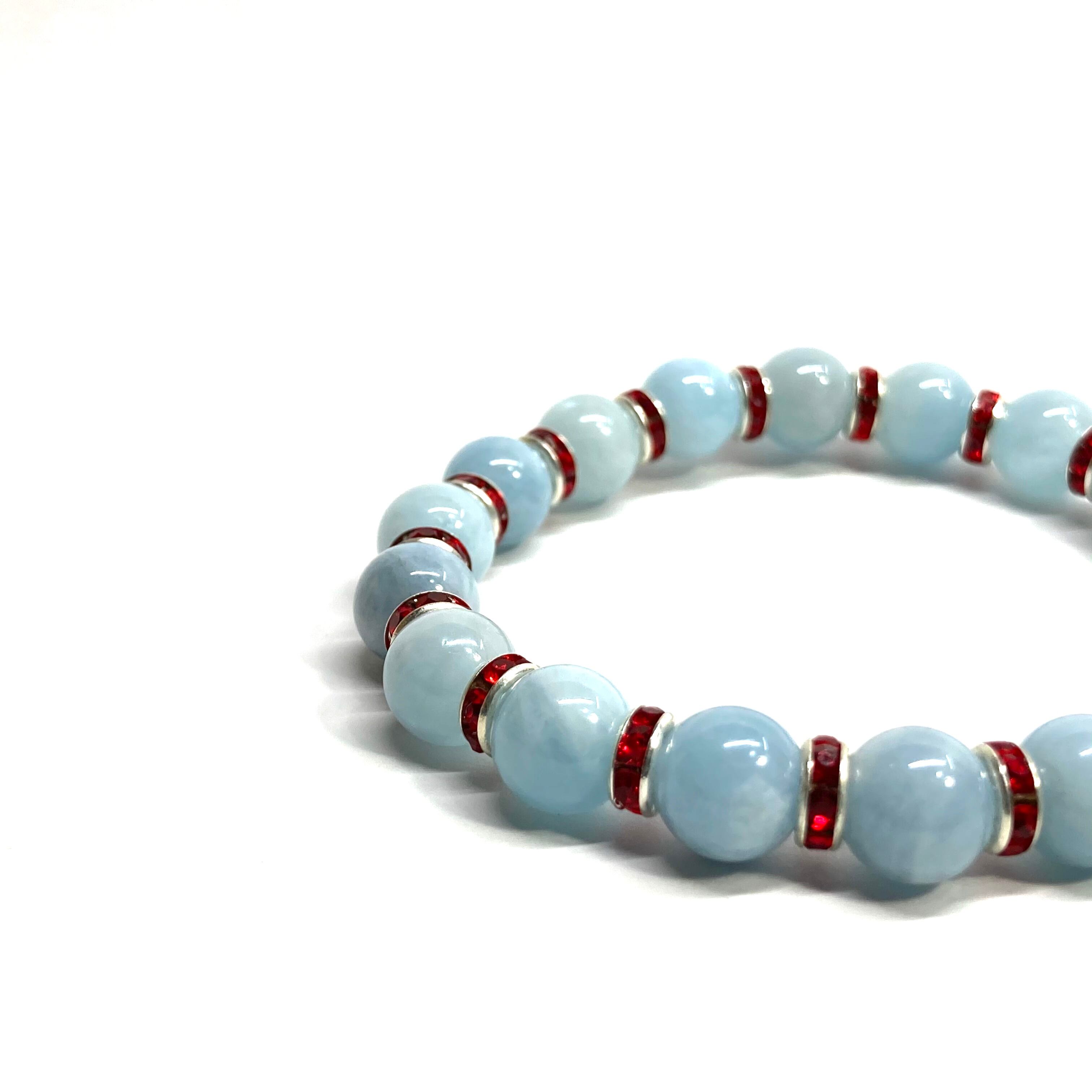 アクアマリン パワーストーン ブレスレット 8mm 3月誕生石(レッド)メンズ・レディース 男性・女性 数珠ブレス 開運