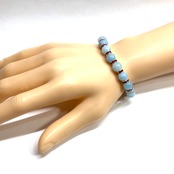 こちらは、アクアマリンの8mm玉を使用したパワーストーンブレスレットです。石との間にはロンデルを挟み高級感を演出しております。シンプルなデザインは、シーン問わずどんなコーディネートとも合わせ易いブレスレットです。サイズは内周約15cm (手首周りを測り少し余裕をもってお買い求めくださいませ。)です。当社の中でも一番人気の実績があるデザインとなっております。気になる方はお早めにどうぞ。