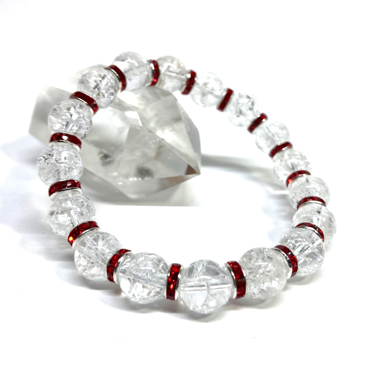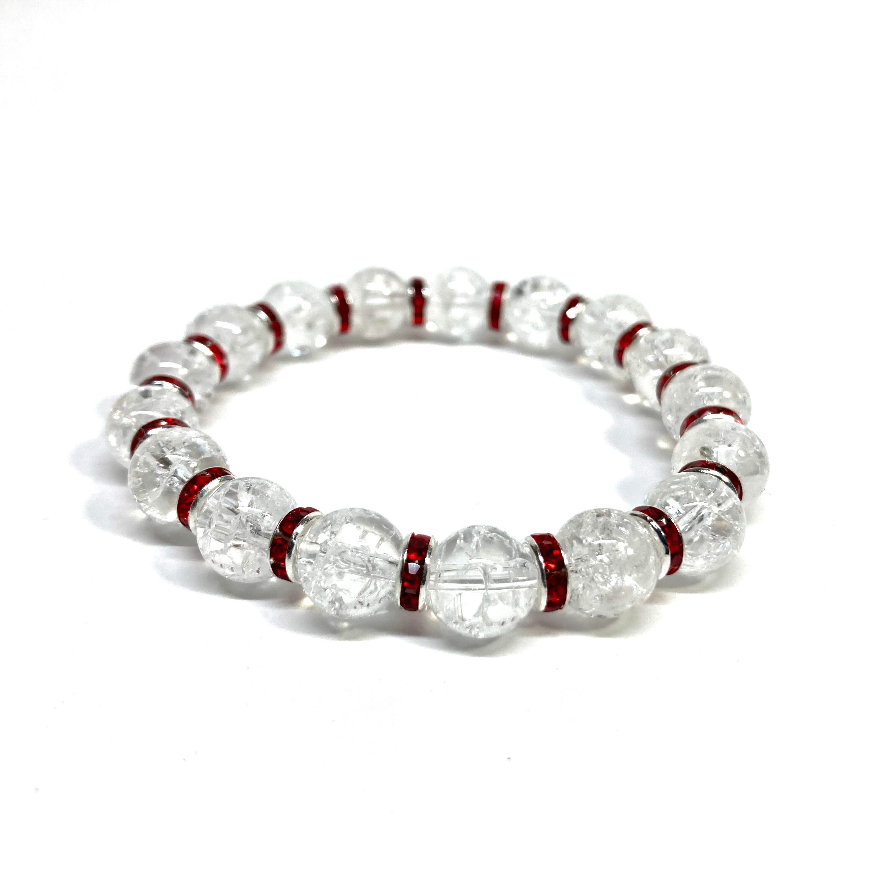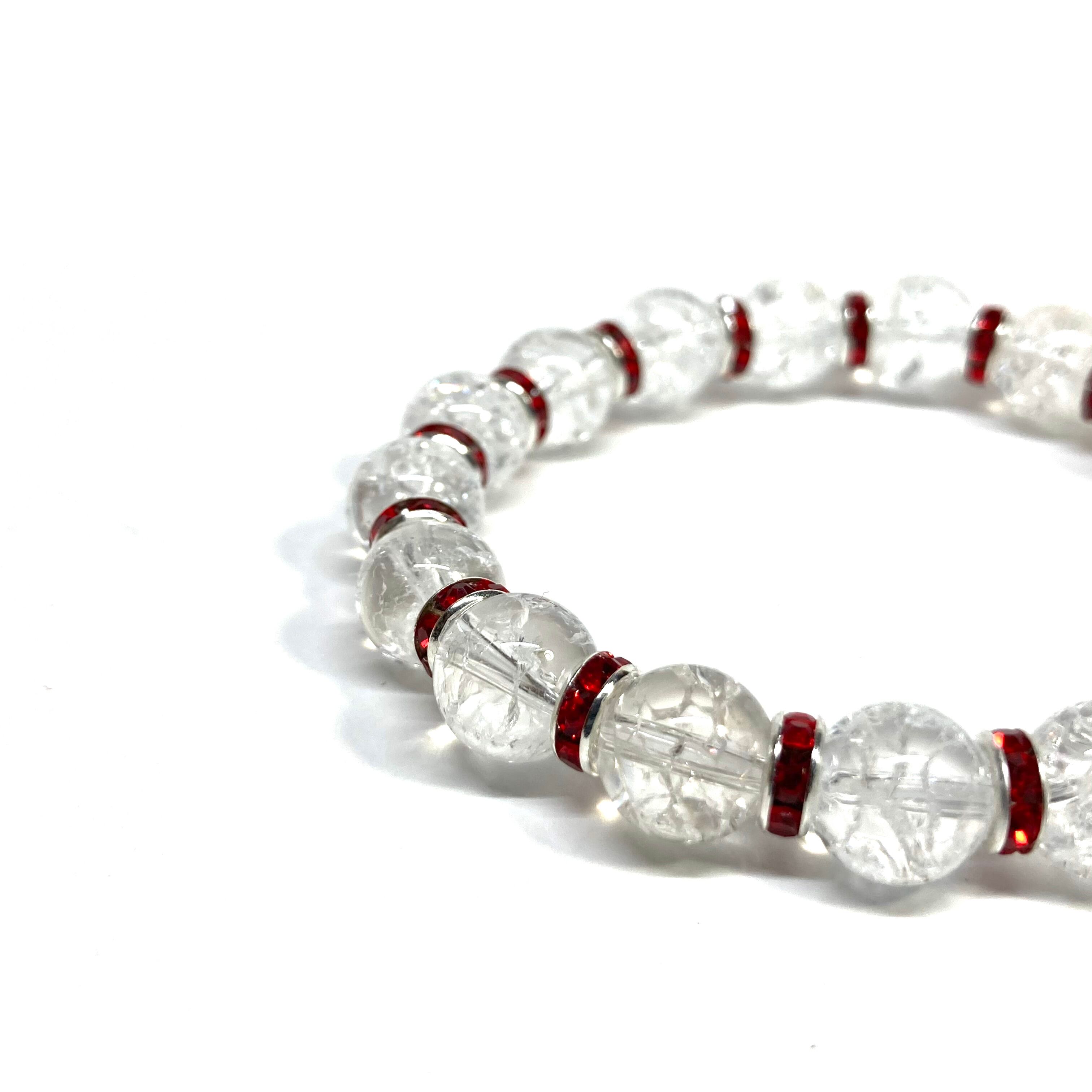 クラック水晶 パワーストーン ブレスレット 8mm(レッド)メンズ・レディース 男性・女性 数珠ブレス 開運