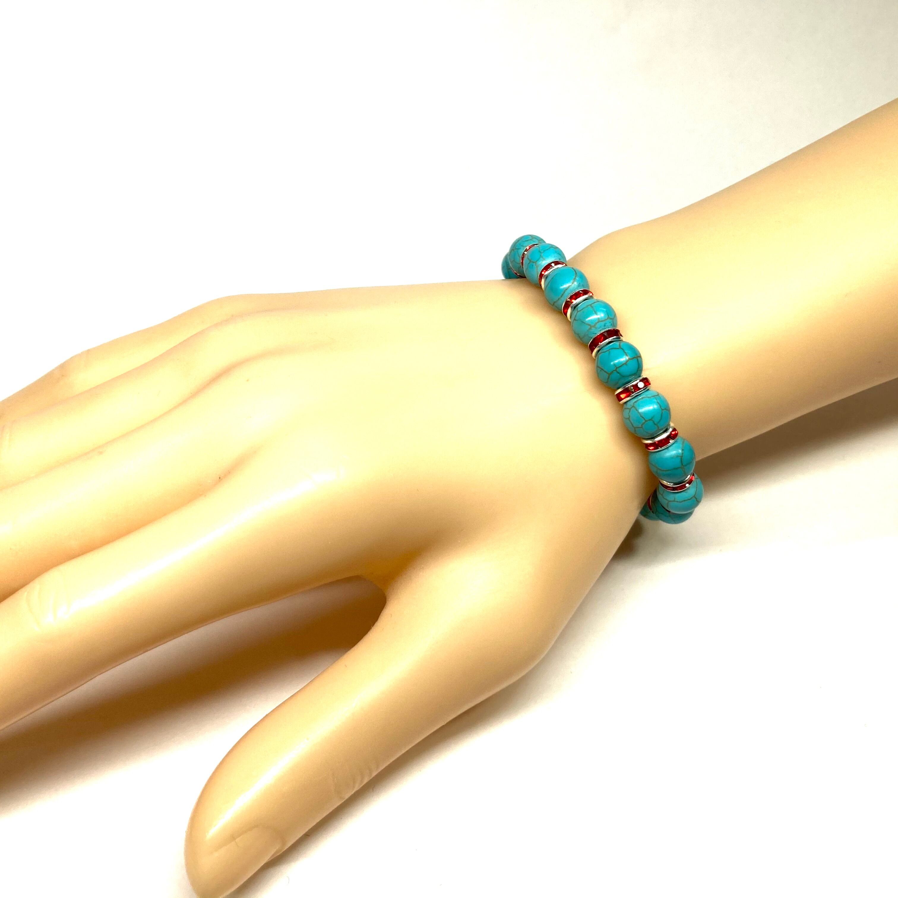 ターコイズ パワーストーン ブレスレット 8mm #2(レッド)メンズ・レディース 男性・女性 数珠ブレス 開運