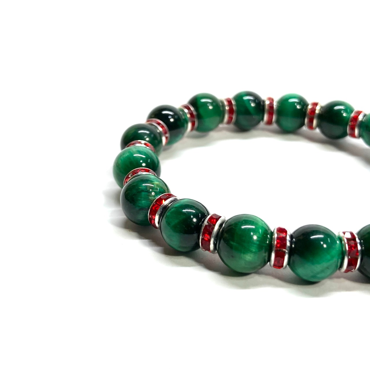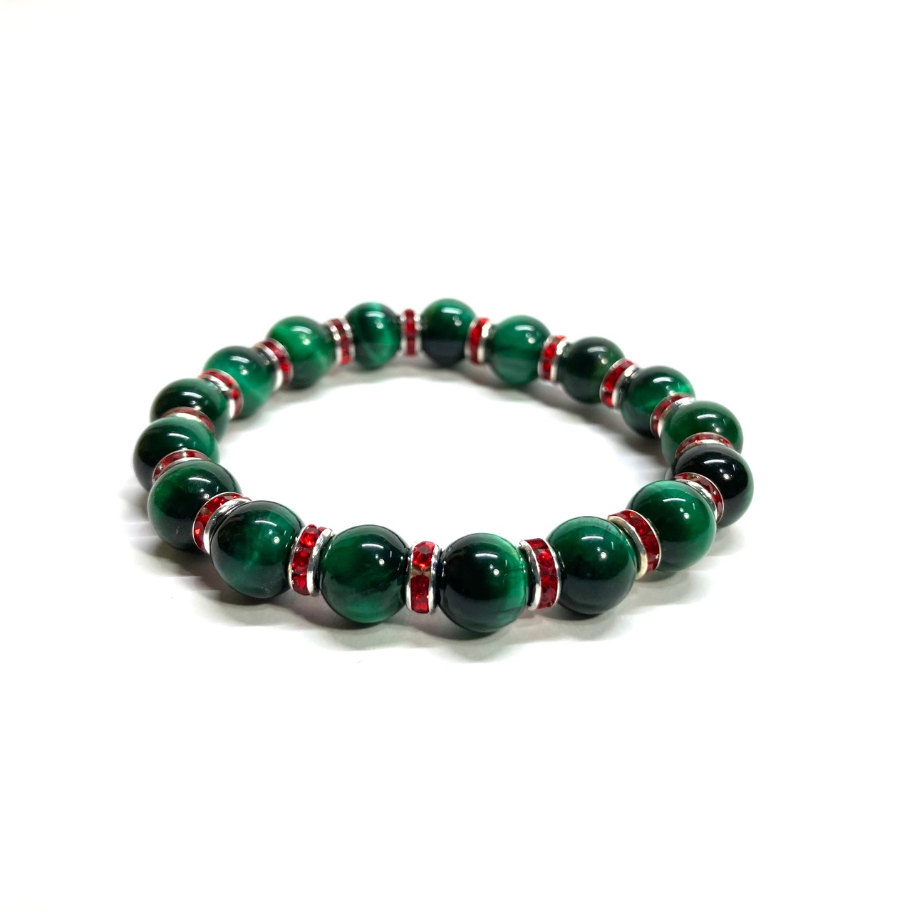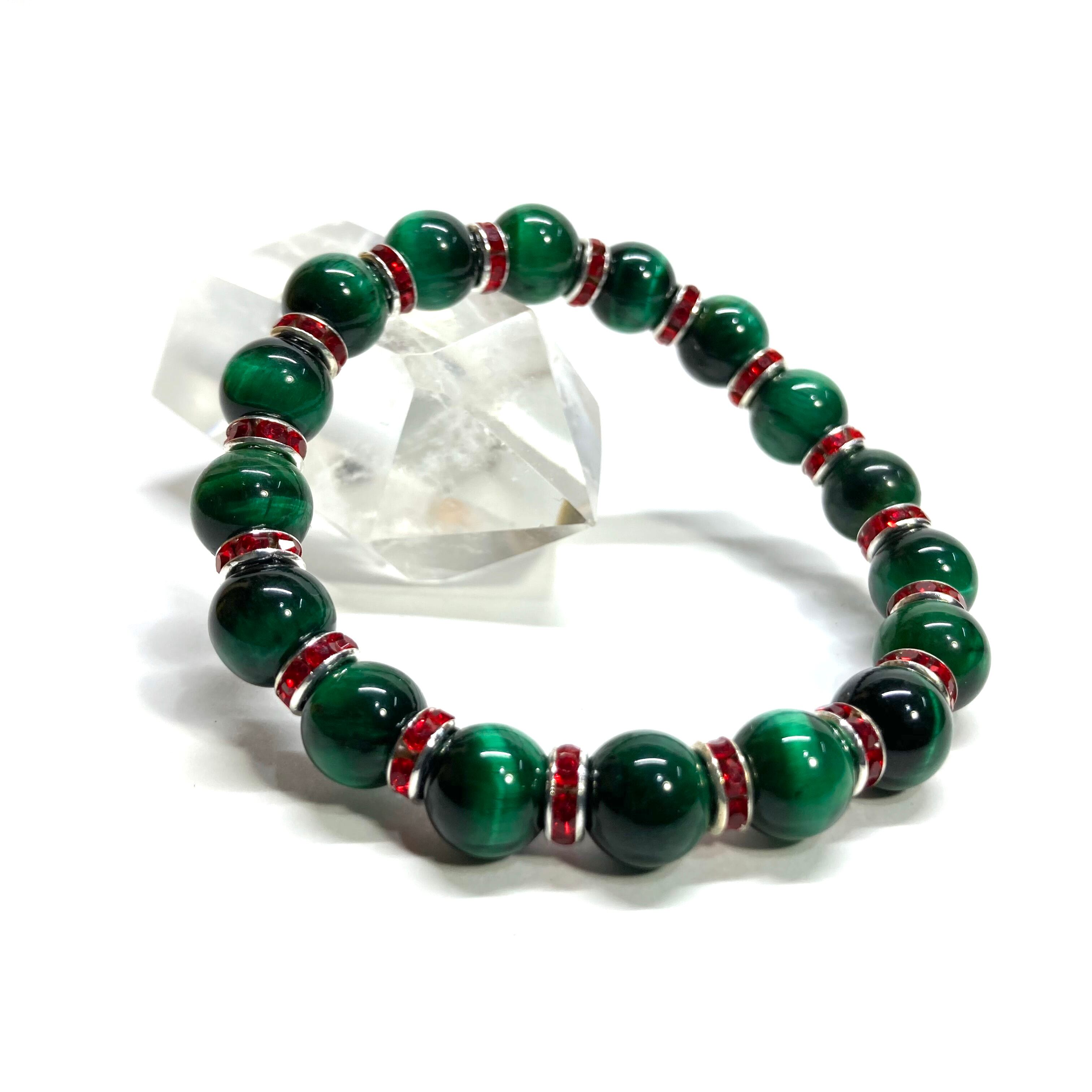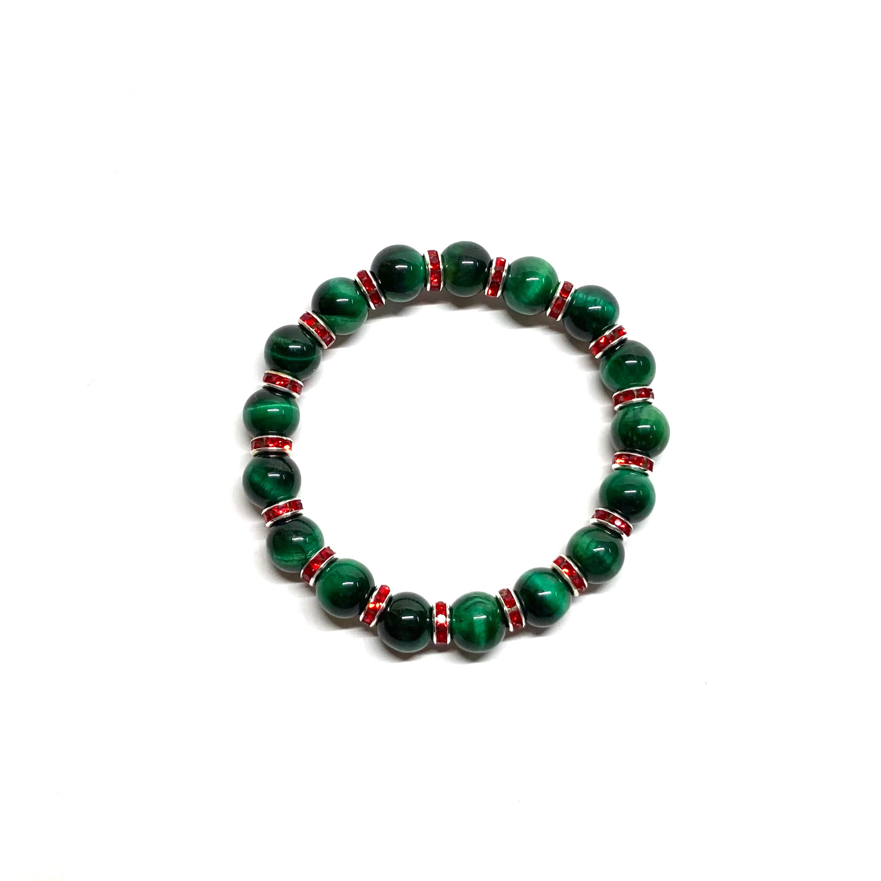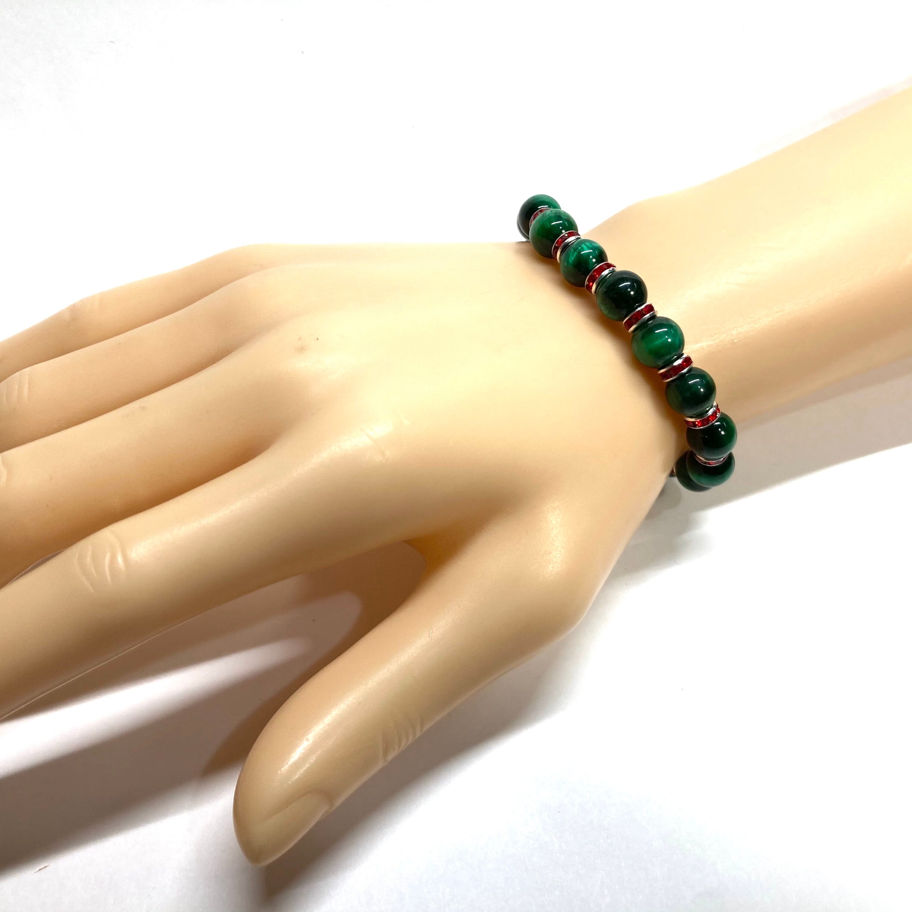 グリーンタイガーアイ パワーストーン ブレスレット 8mm(レッド)メンズ・レディース 男性・女性 数珠ブレス 開運
