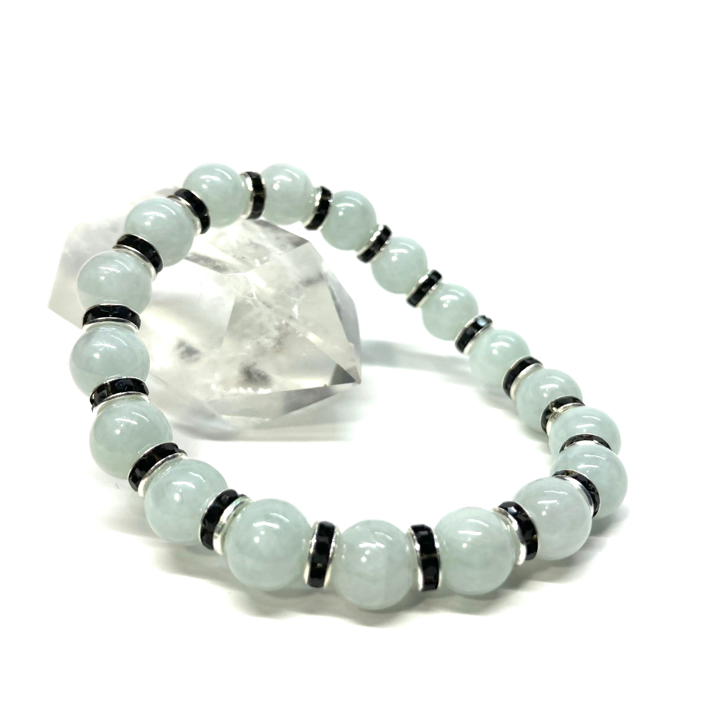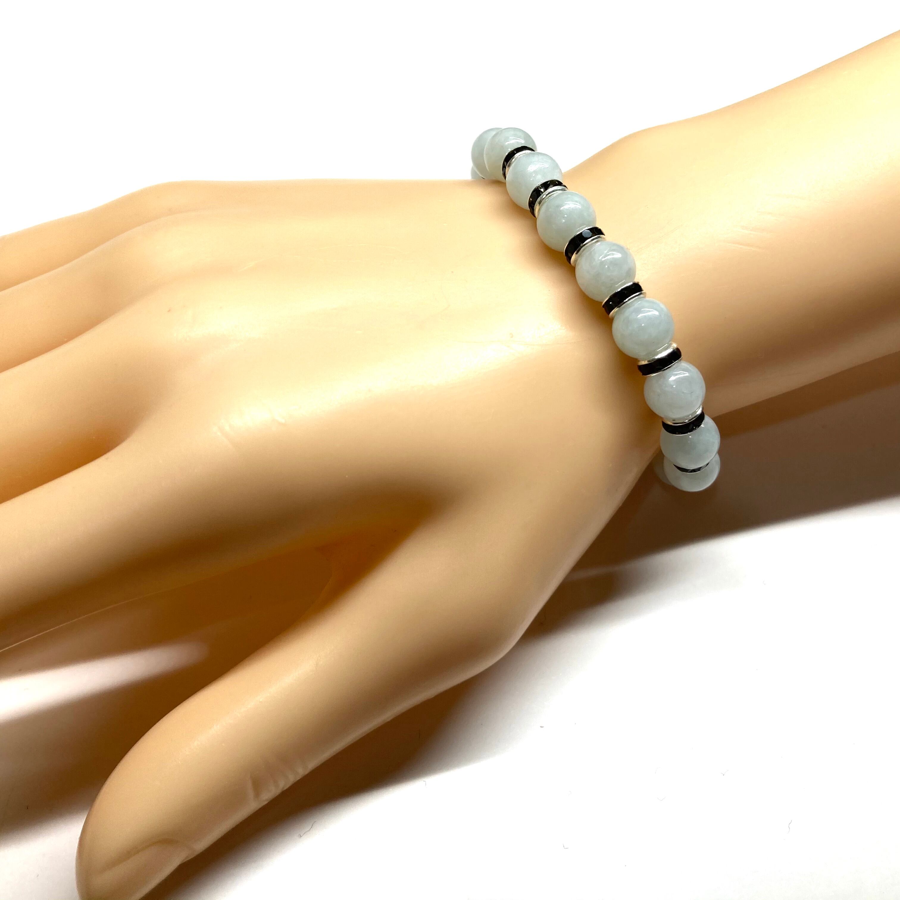 ビルマ翡翠 パワーストーン ブレスレット 8mm 5月誕生 (ブラック)メンズ・レディース 男性・女性 数珠ブレス 開運