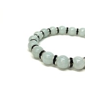 こちらは、ビルマ翡翠の8mm玉を使用したパワーストーンブレスレットです。石との間にはロンデルを挟み高級感を演出しております。シンプルなデザインは、シーン問わずどんなコーディネートとも合わせ易いブレスレットです。サイズは内周約15cm (手首周りを測り少し余裕をもってお買い求めくださいませ。)です。当社の中でも一番人気の実績があるデザインとなっております。気になる方はお早めにどうぞ。