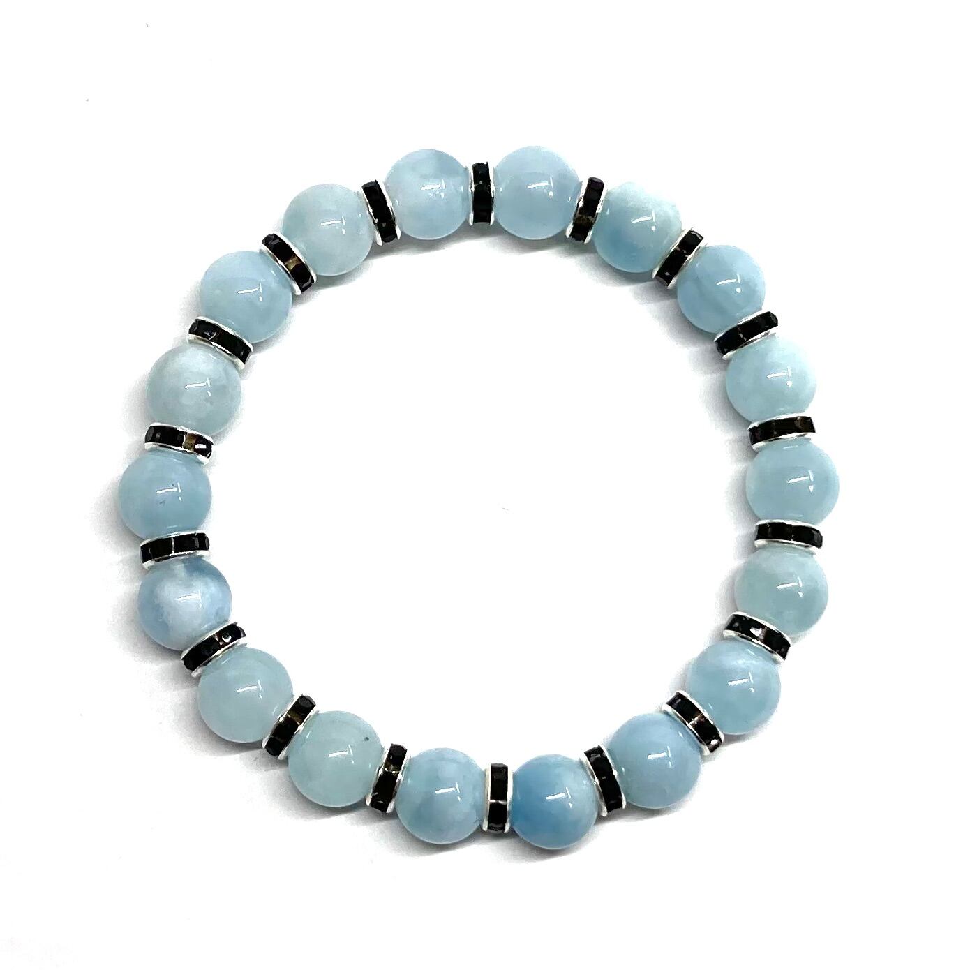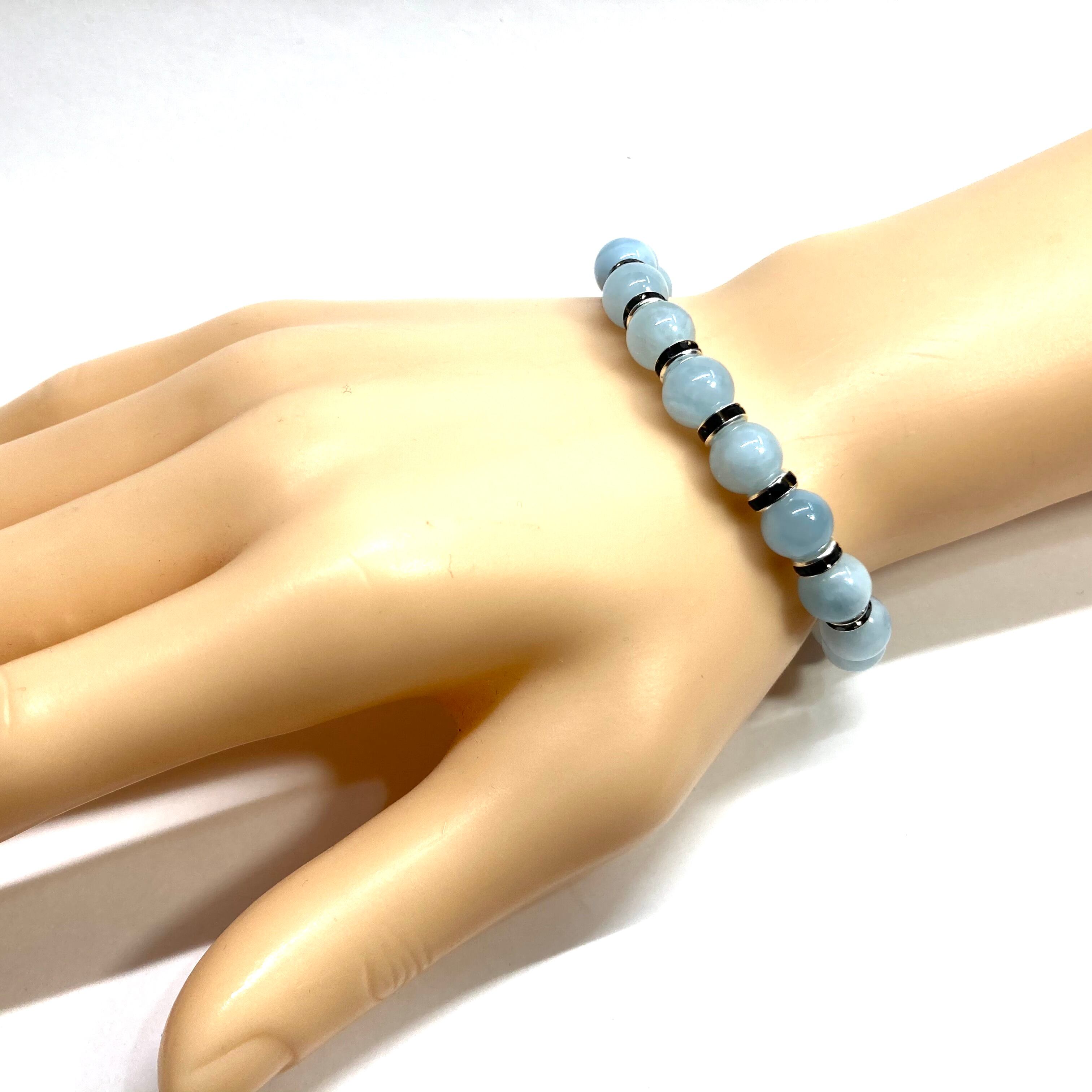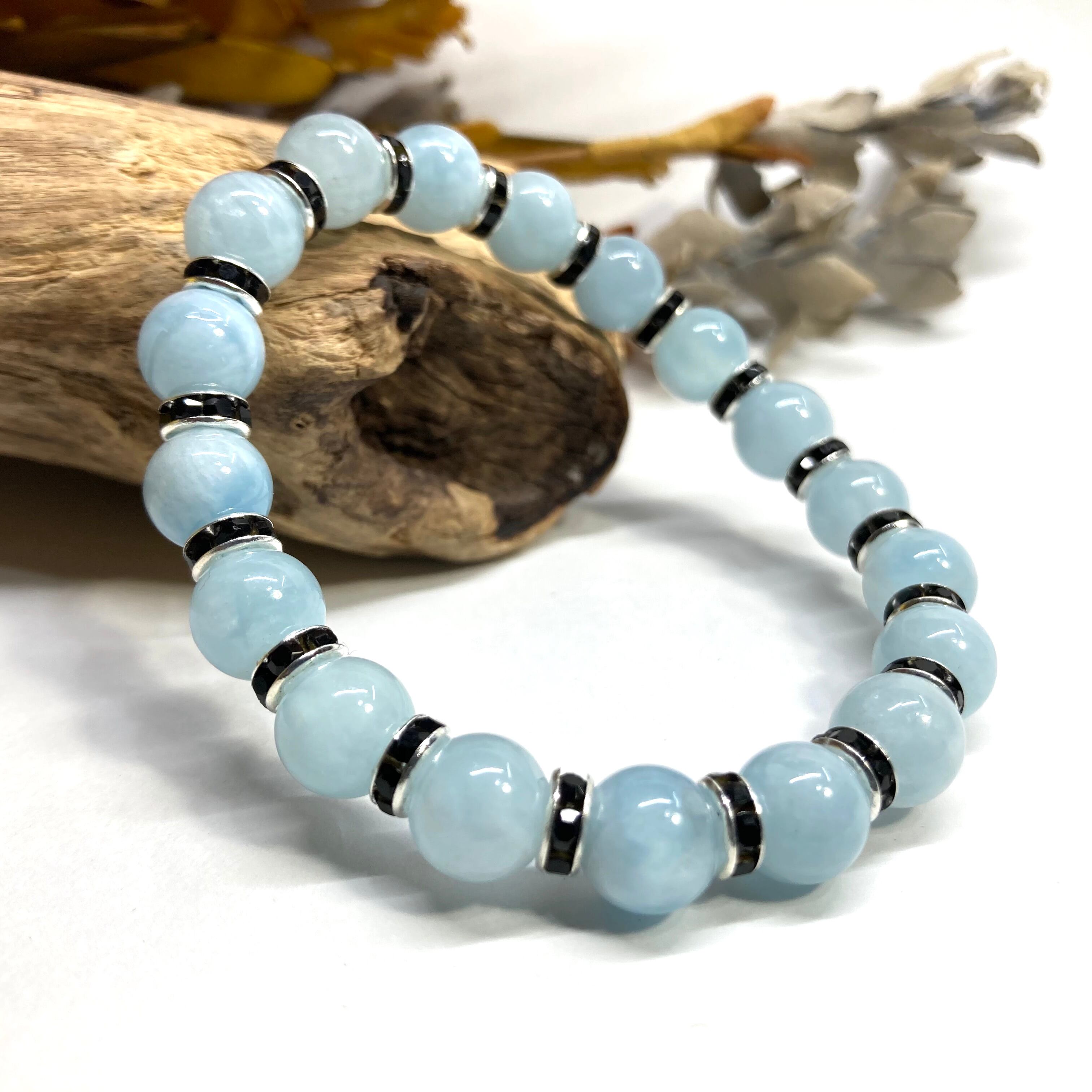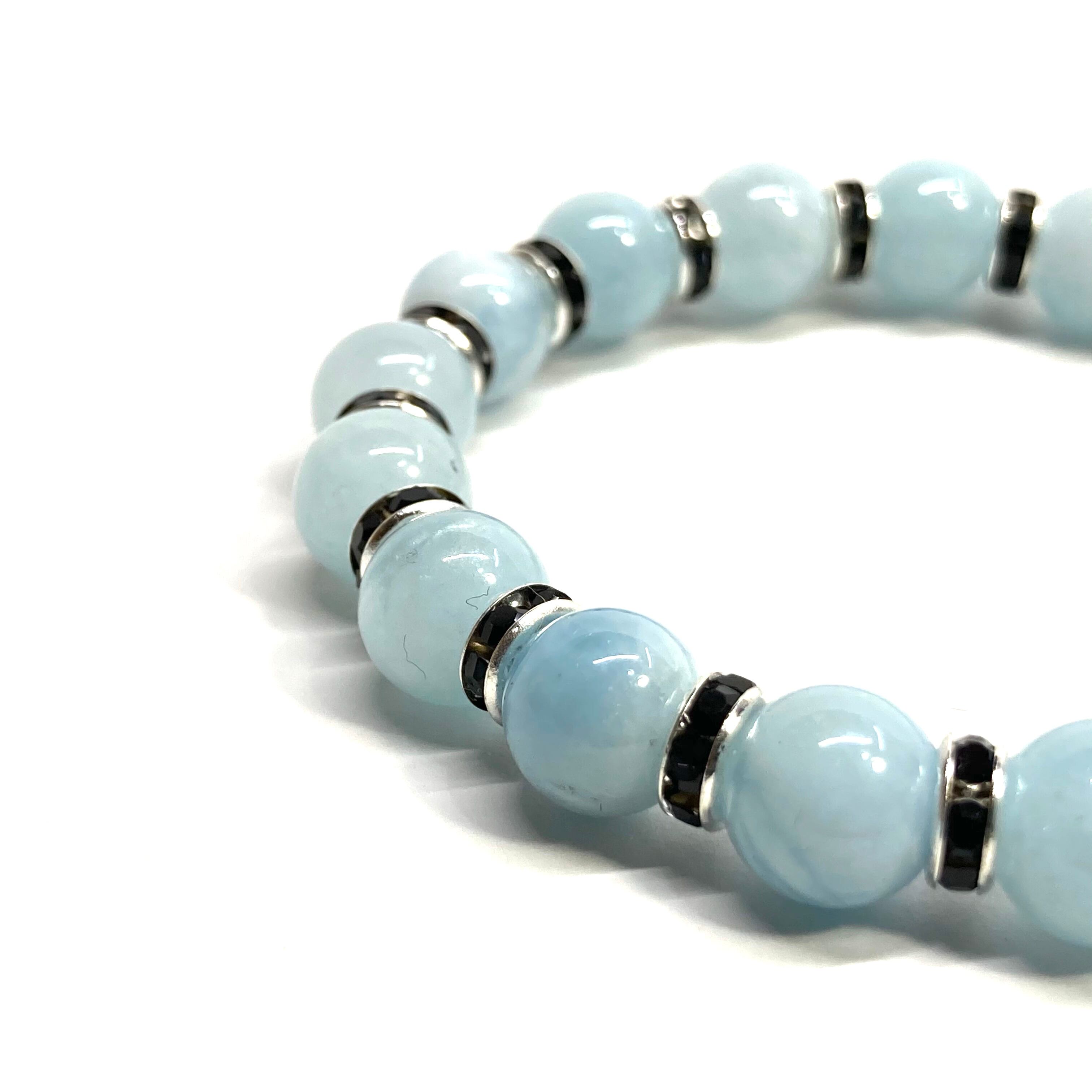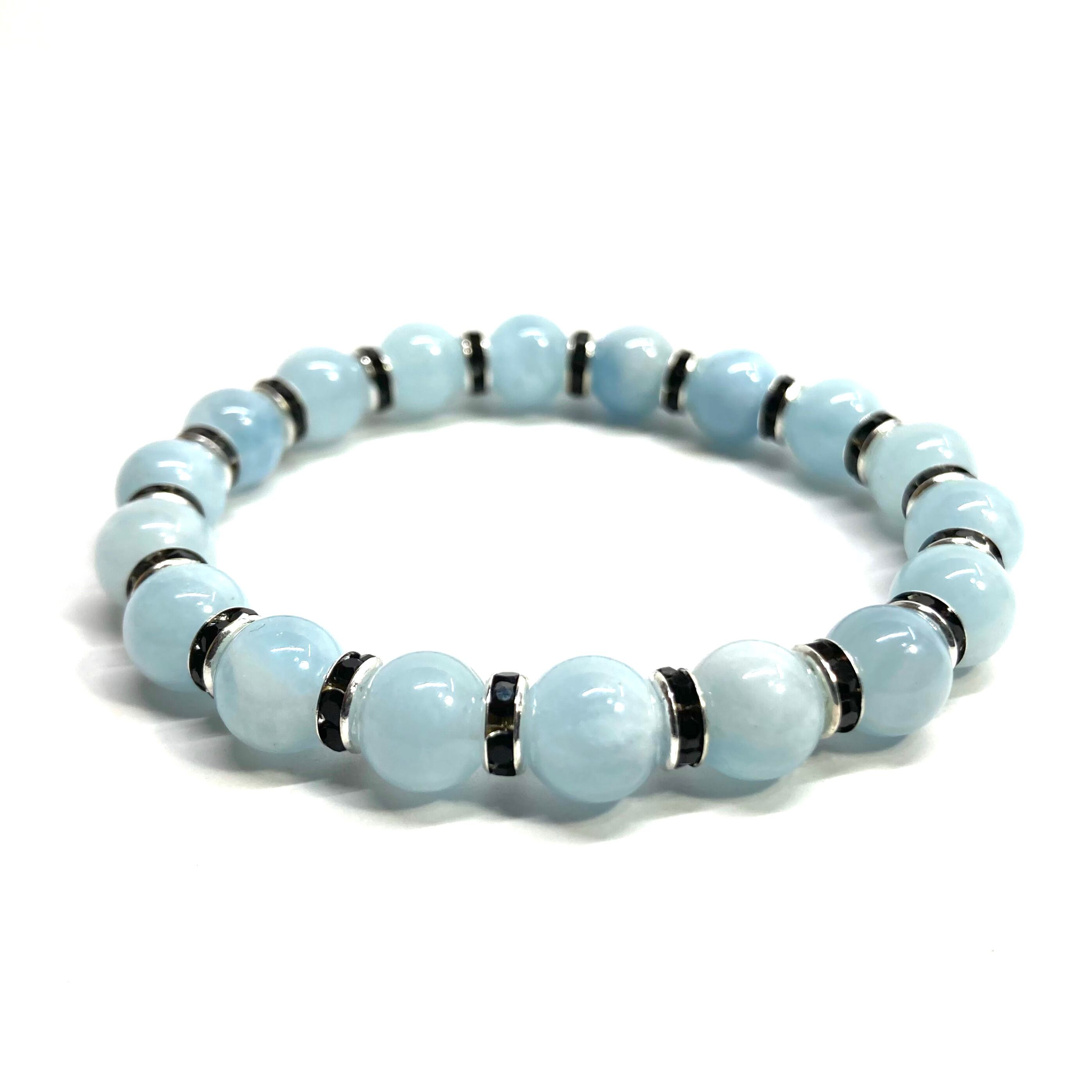 アクアマリン パワーストーン ブレスレット 8mm 3月誕生石 (ブラック)メンズ・レディース 男性・女性 数珠ブレス 開運