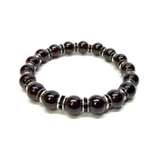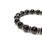こちらは、ガーネットの8mm玉を使用したパワーストーンブレスレットです。石との間にはロンデルを挟み高級感を演出しております。シンプルなデザインは、シーン問わずどんなコーディネートとも合わせ易いブレスレットです。サイズは内周約15cm (手首周りを測り少し余裕をもってお買い求めくださいませ。)です。当社の中でも一番人気の実績があるデザインとなっております。気になる方はお早めにどうぞ。