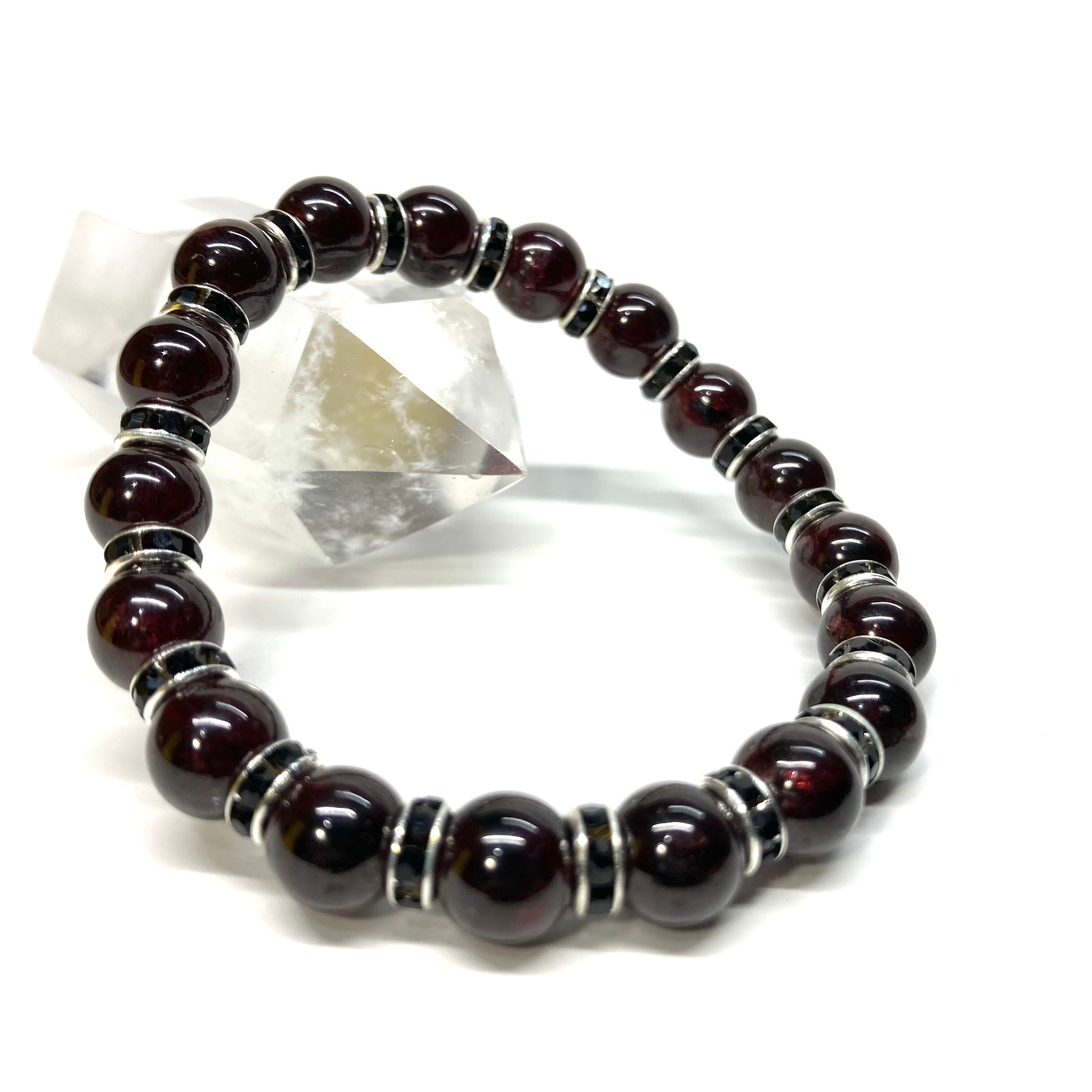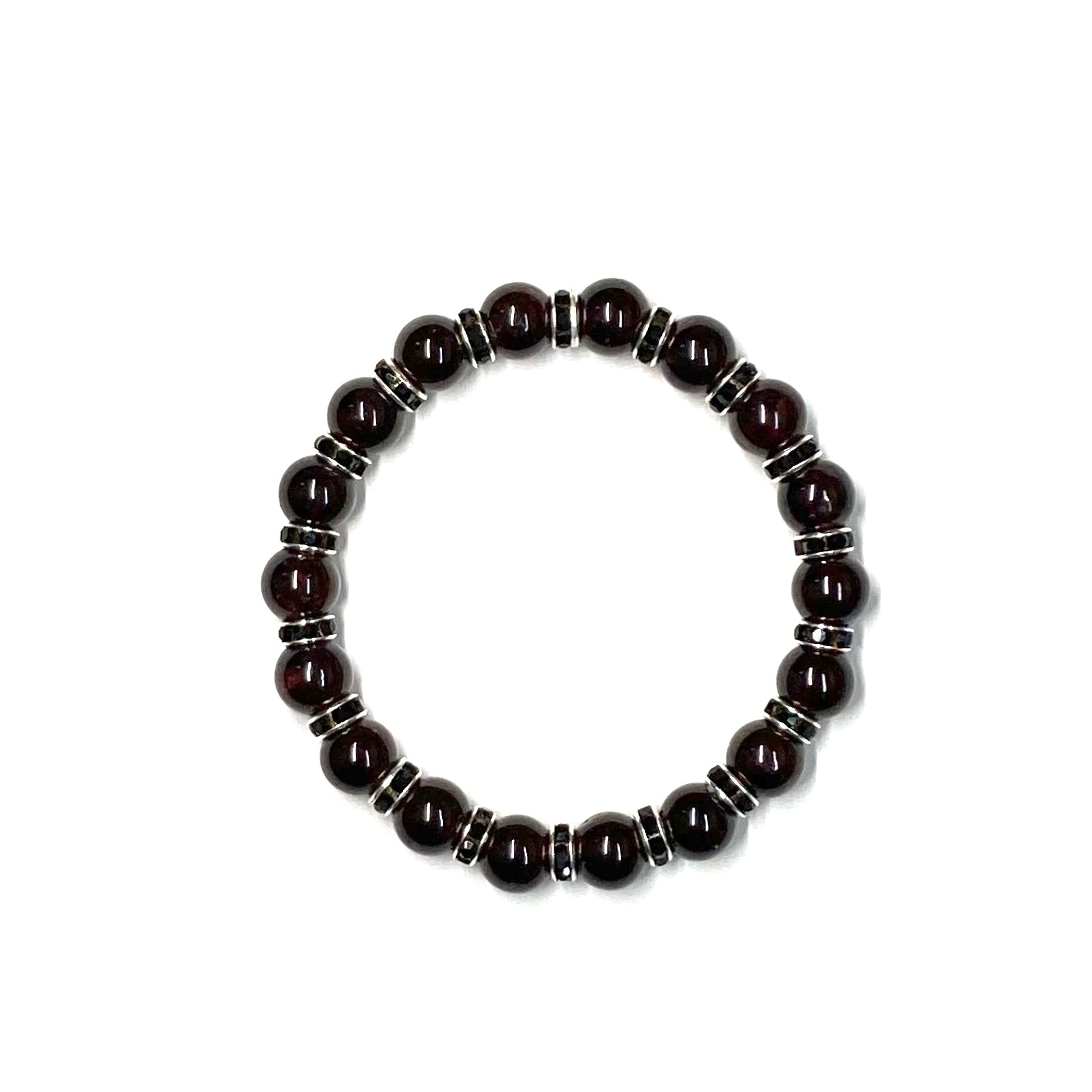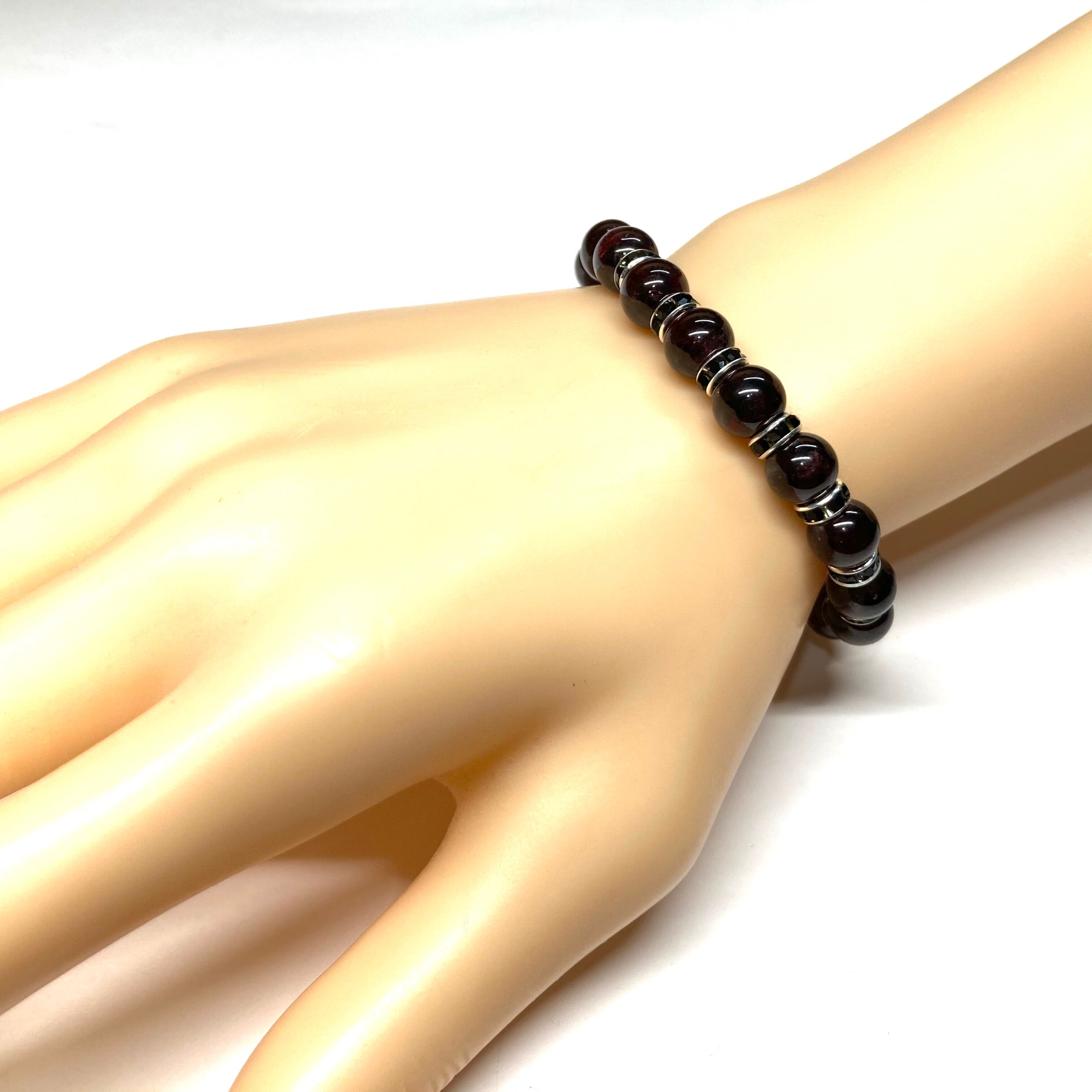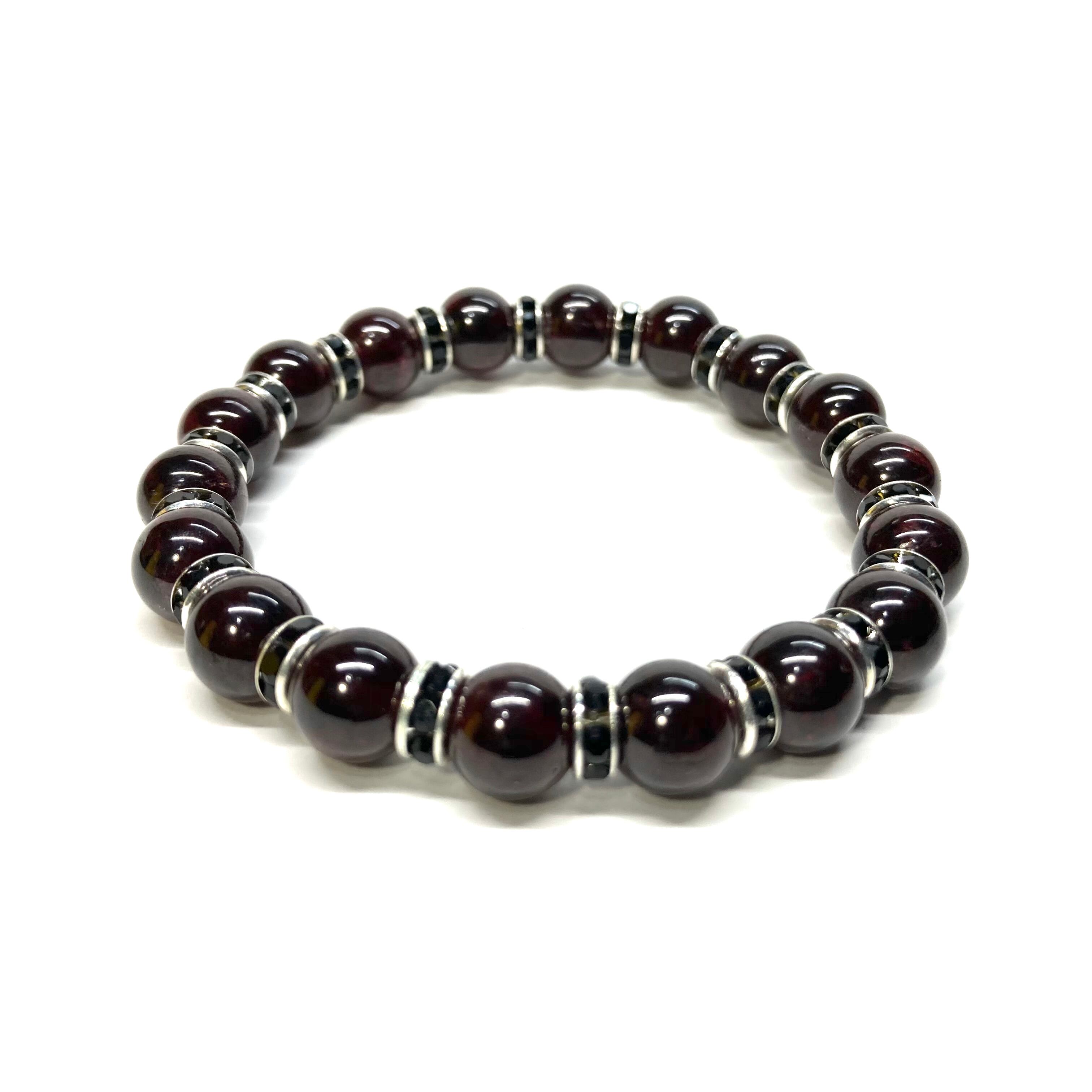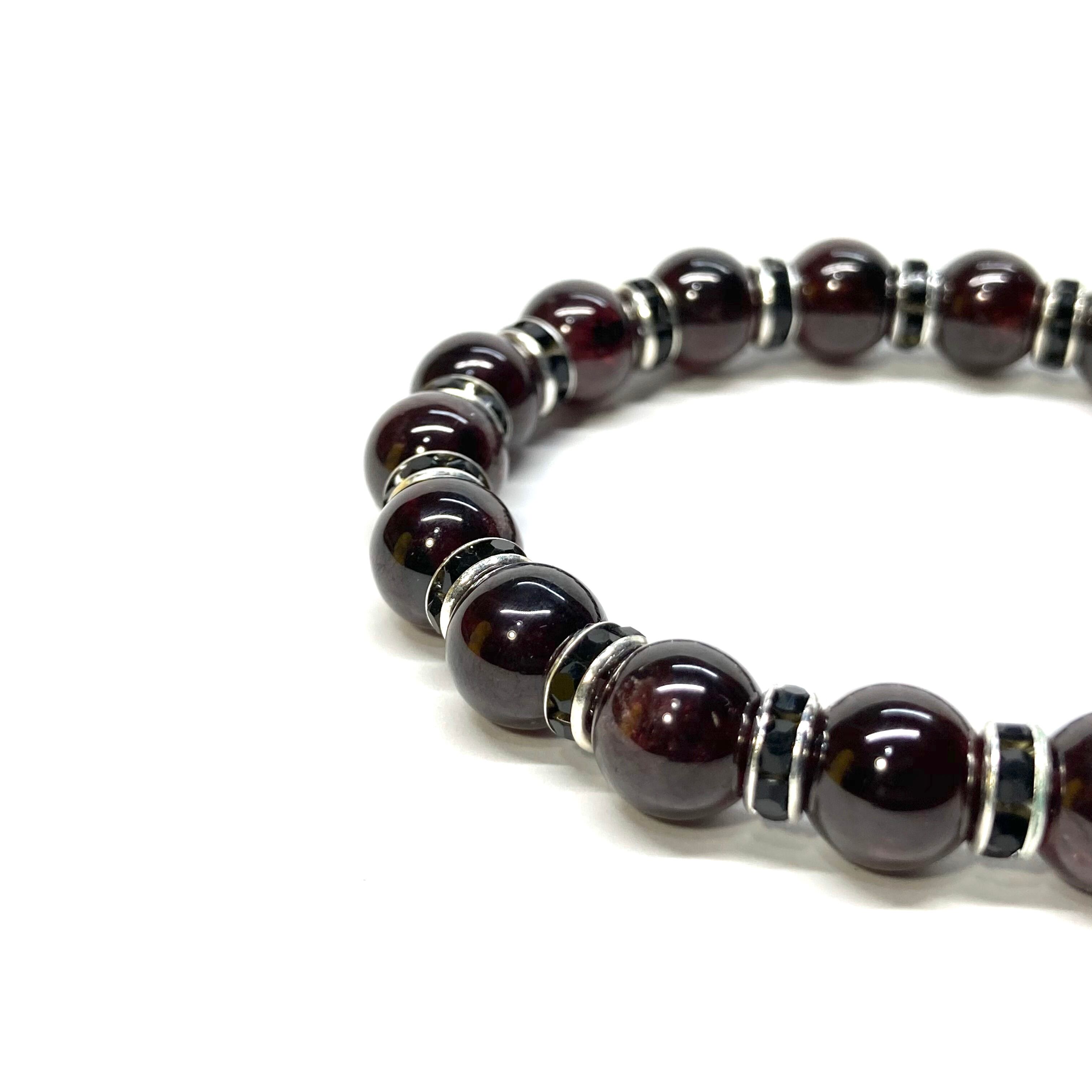 ガーネット パワーストーン ブレスレット 8mm 1月誕生石 (ブラック)メンズ・レディース 男性・女性 数珠ブレス 開運