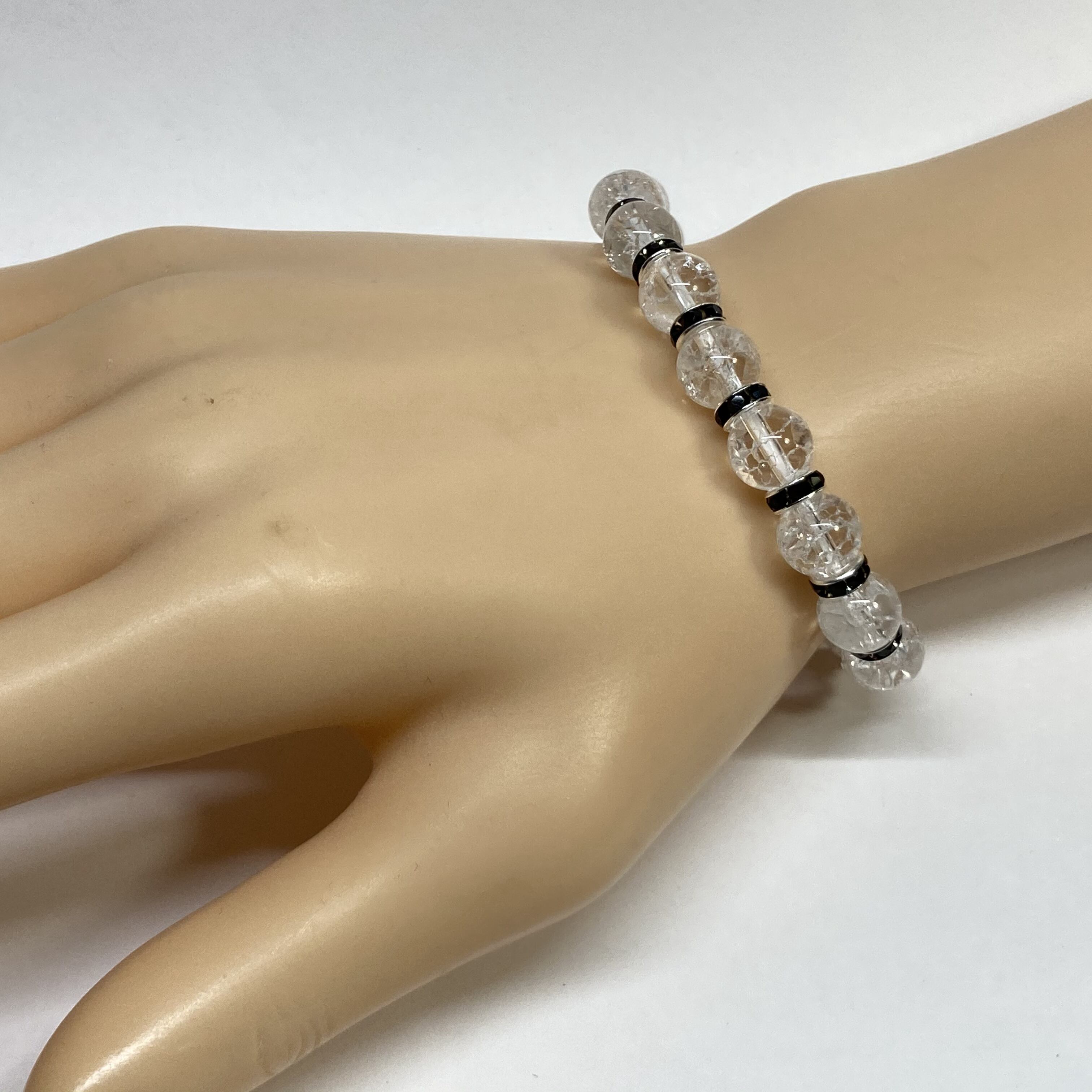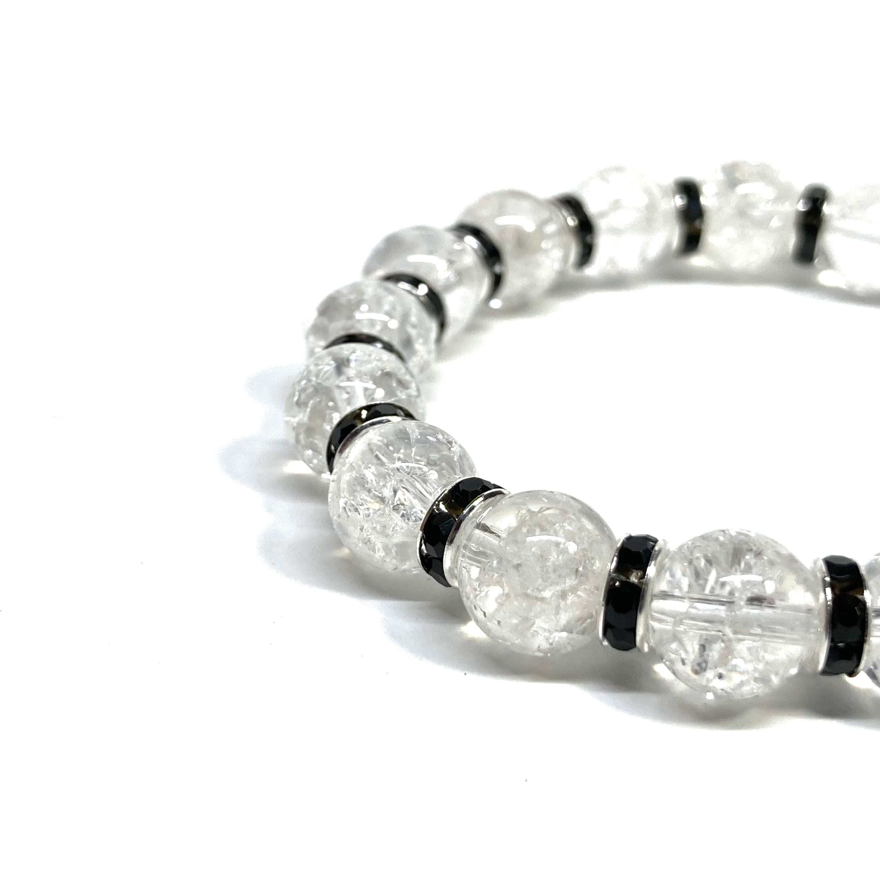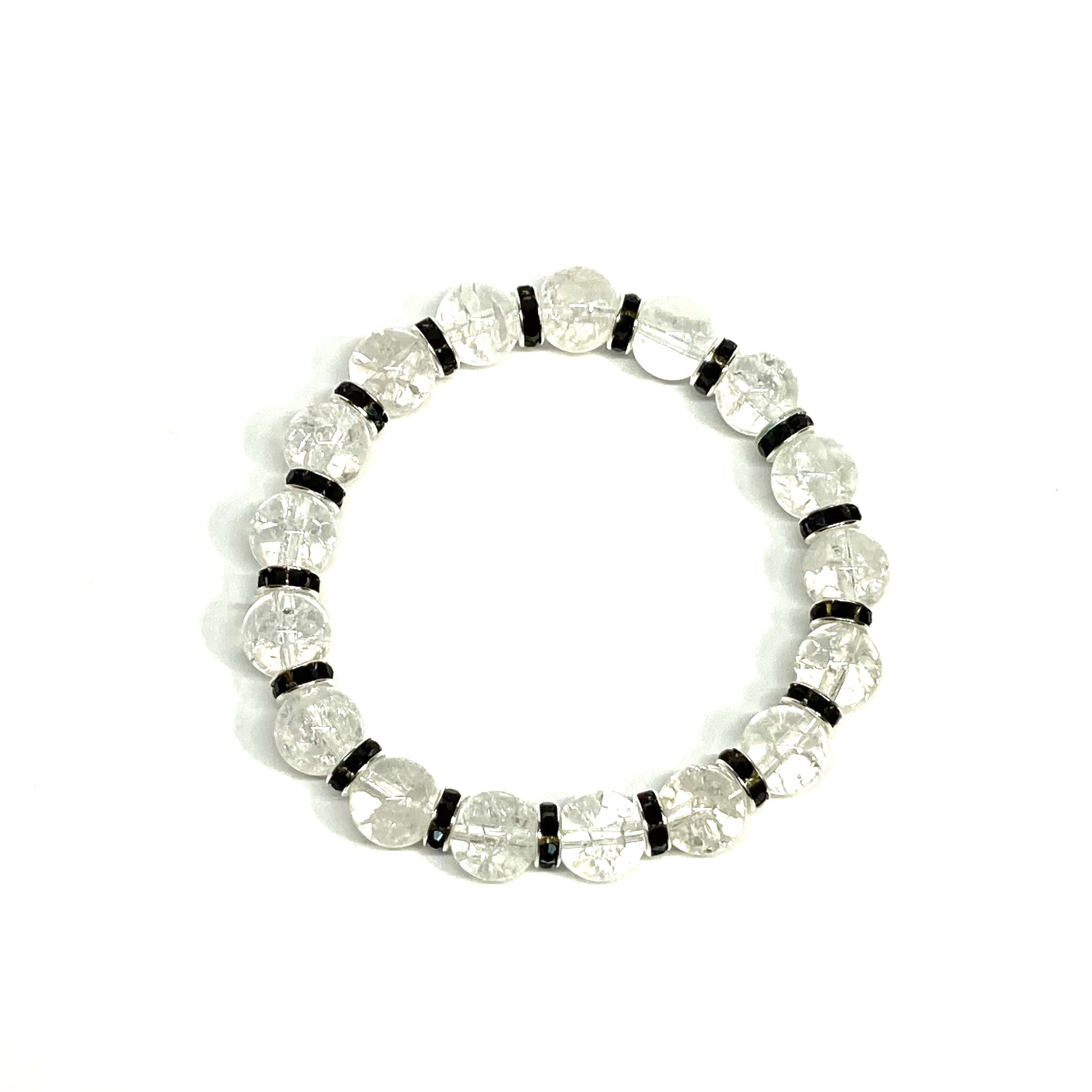 クラック水晶 パワーストーン ブレスレット 8mm (ブラック)メンズ・レディース 男性・女性 数珠ブレス 開運