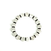 こちらは、クラック水晶の8mm玉を使用したパワーストーンブレスレットです。石との間にはロンデルを挟み高級感を演出しております。シンプルなデザインは、シーン問わずどんなコーディネートとも合わせ易いブレスレットです。サイズは内周約15cm (手首周りを測り少し余裕をもってお買い求めくださいませ。)です。当社の中でも一番人気の実績があるデザインとなっております。気になる方はお早めにどうぞ。