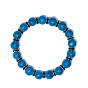 こちらは、ターコイズの8mm玉を使用したパワーストーンブレスレットです。石との間にはロンデルを挟み高級感を演出しております。シンプルなデザインは、シーン問わずどんなコーディネートとも合わせ易いブレスレットです。サイズは内周約15cm (手首周りを測り少し余裕をもってお買い求めくださいませ。)です。当社の中でも一番人気の実績があるデザインとなっております。気になる方はお早めにどうぞ。