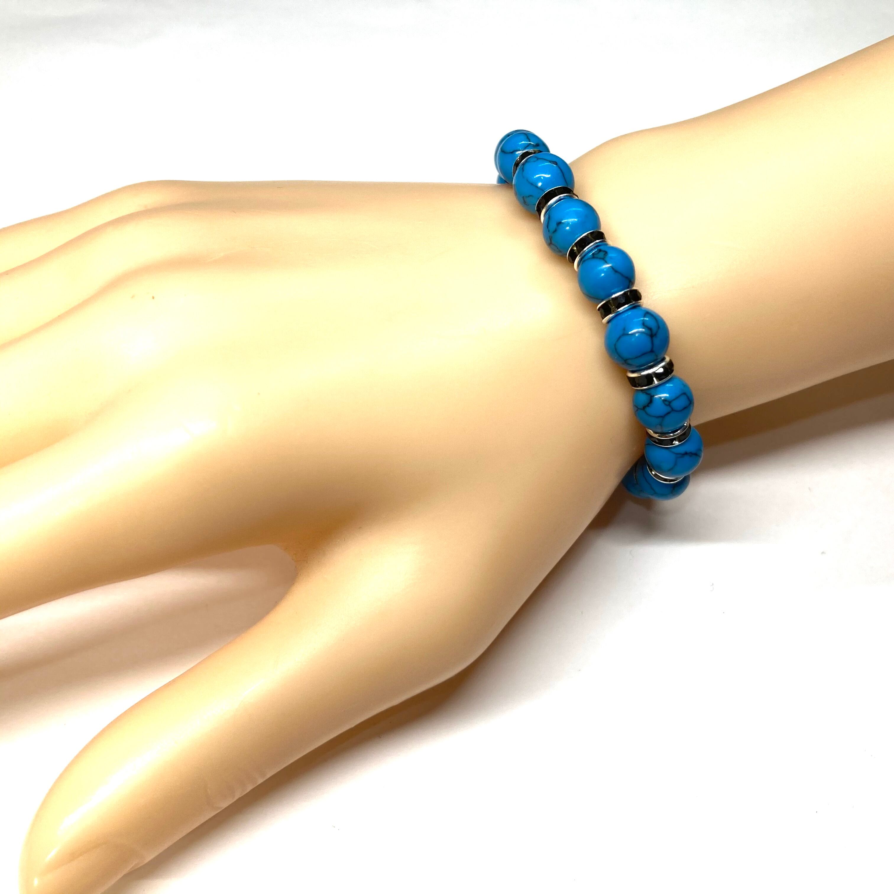 ターコイズ パワーストーン ブレスレット 8mm #1 (ブラック)メンズ・レディース 男性・女性 数珠ブレス 開運
