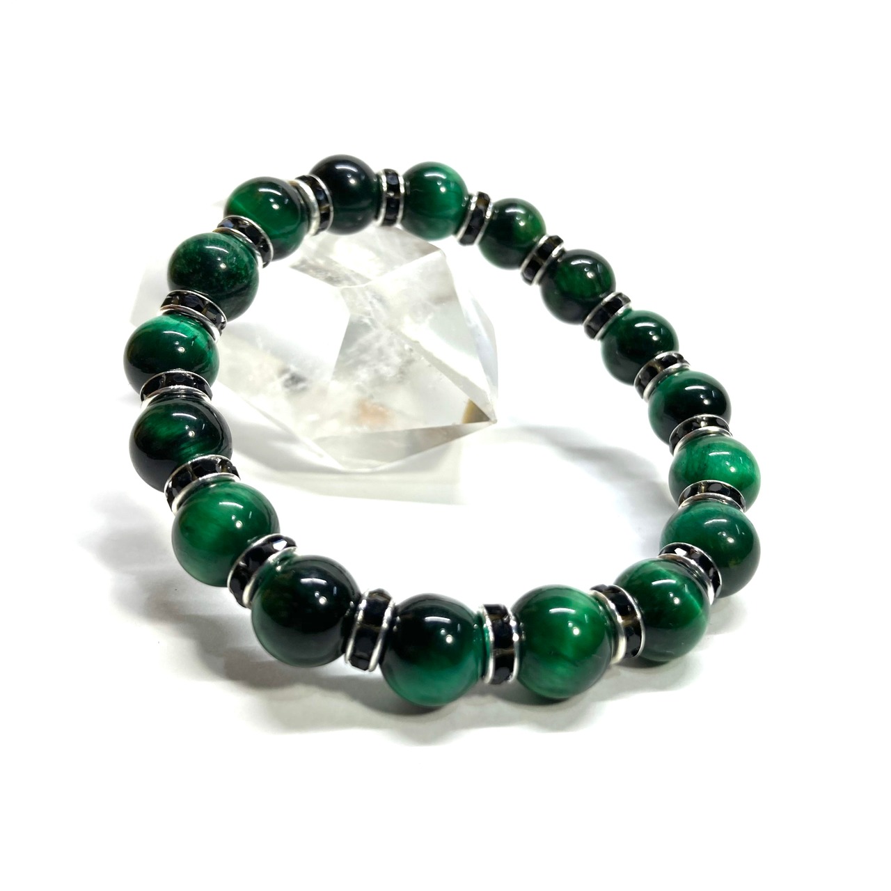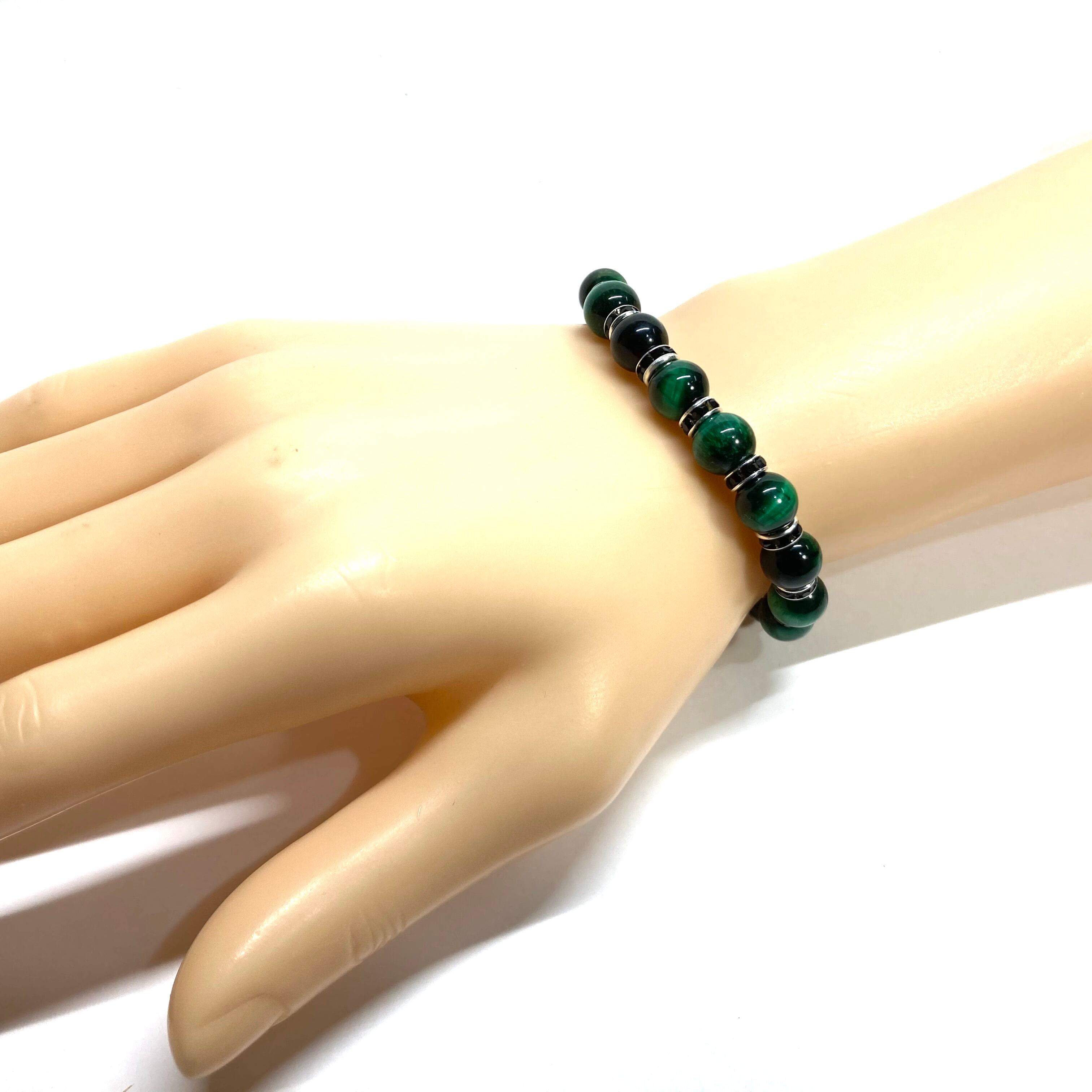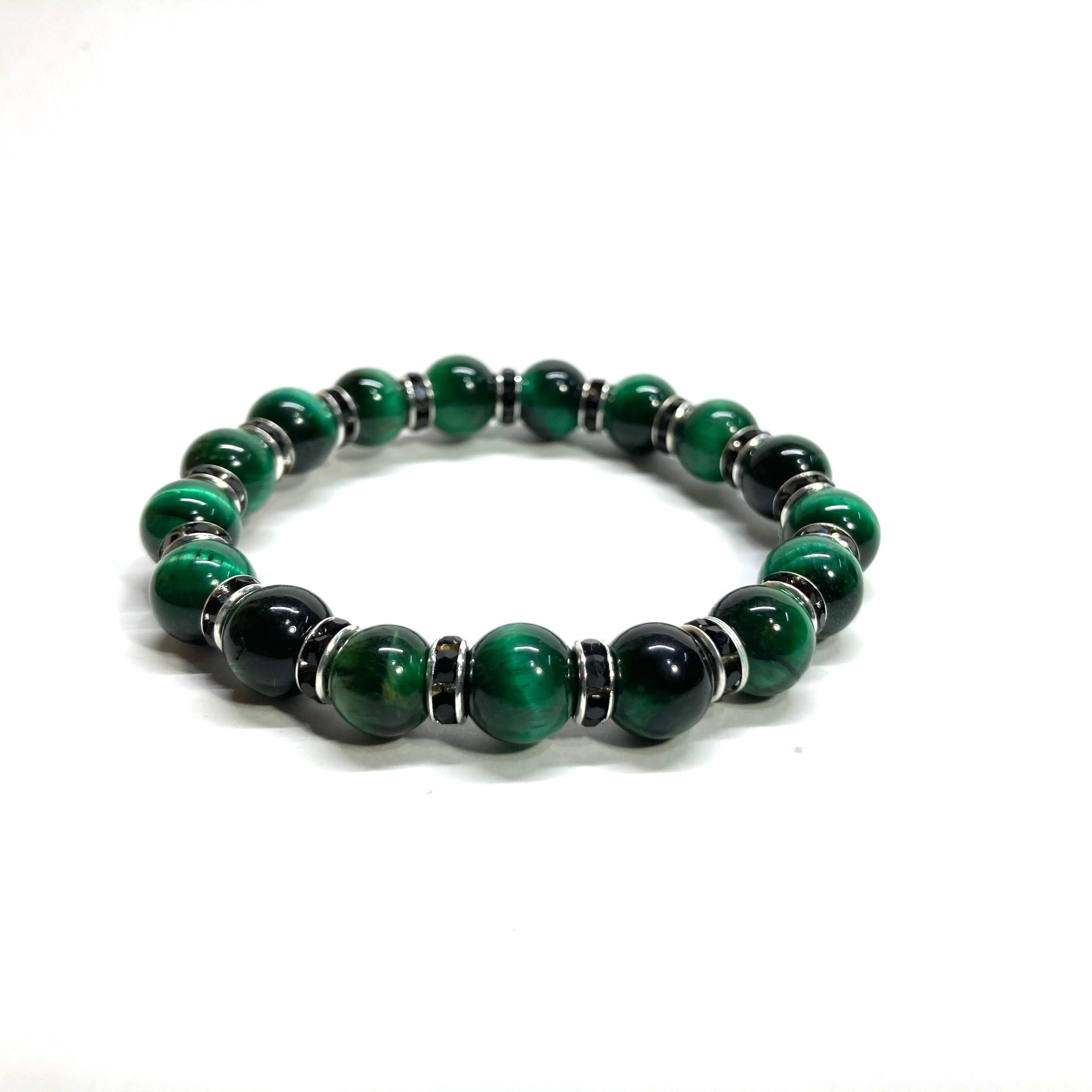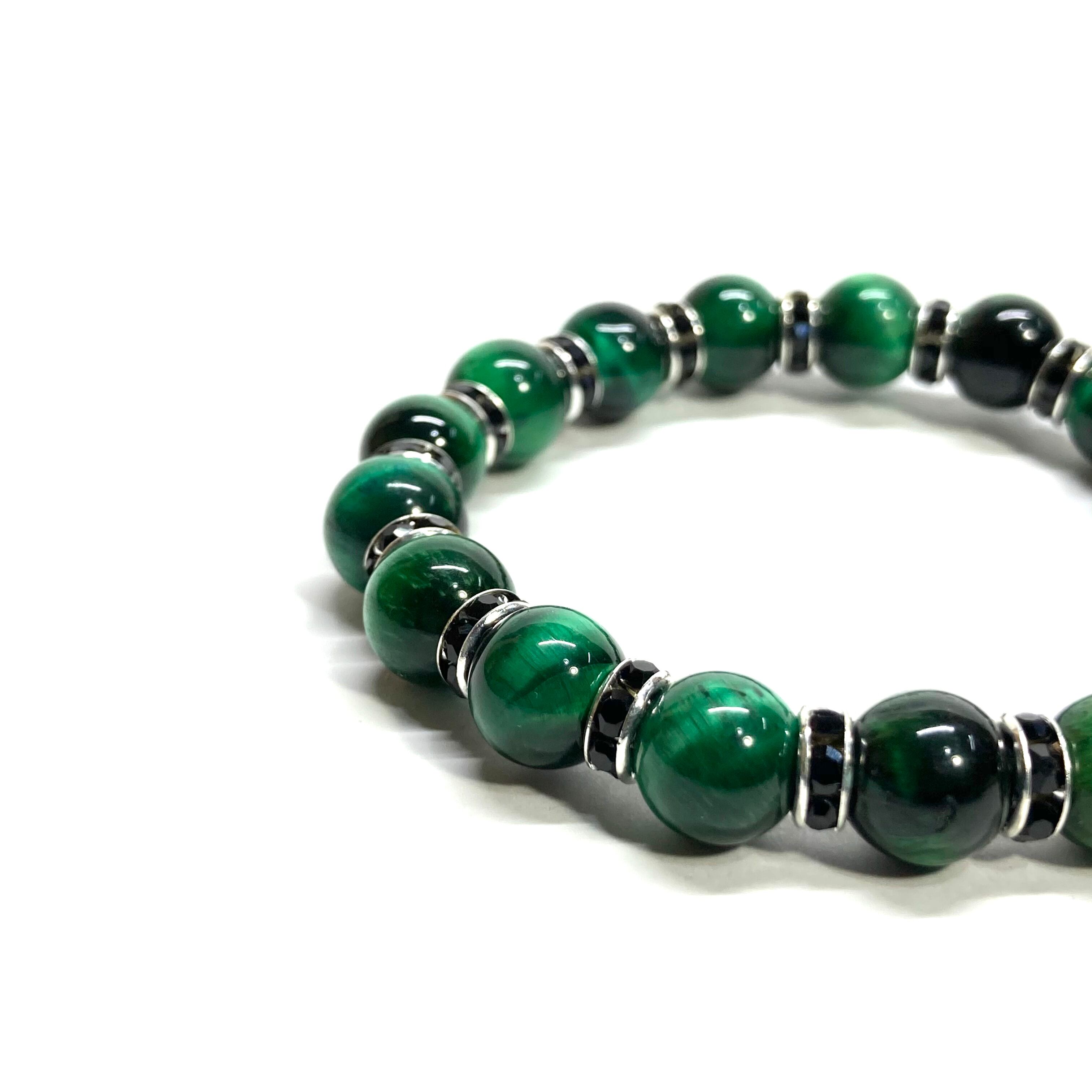 グリーンタイガーアイ パワーストーン ブレスレット 8mm (ブラック)メンズ・レディース 男性・女性 数珠ブレス 開運