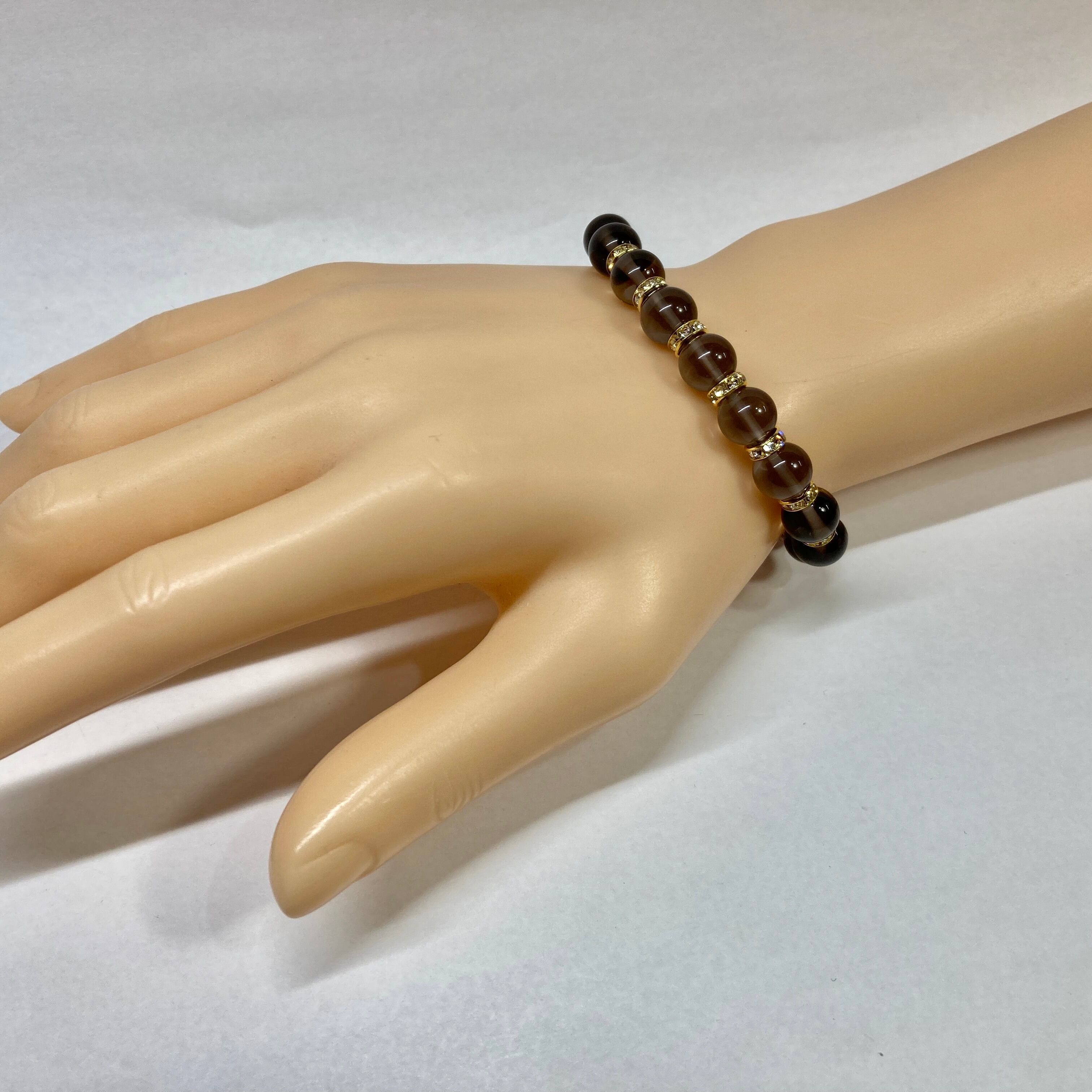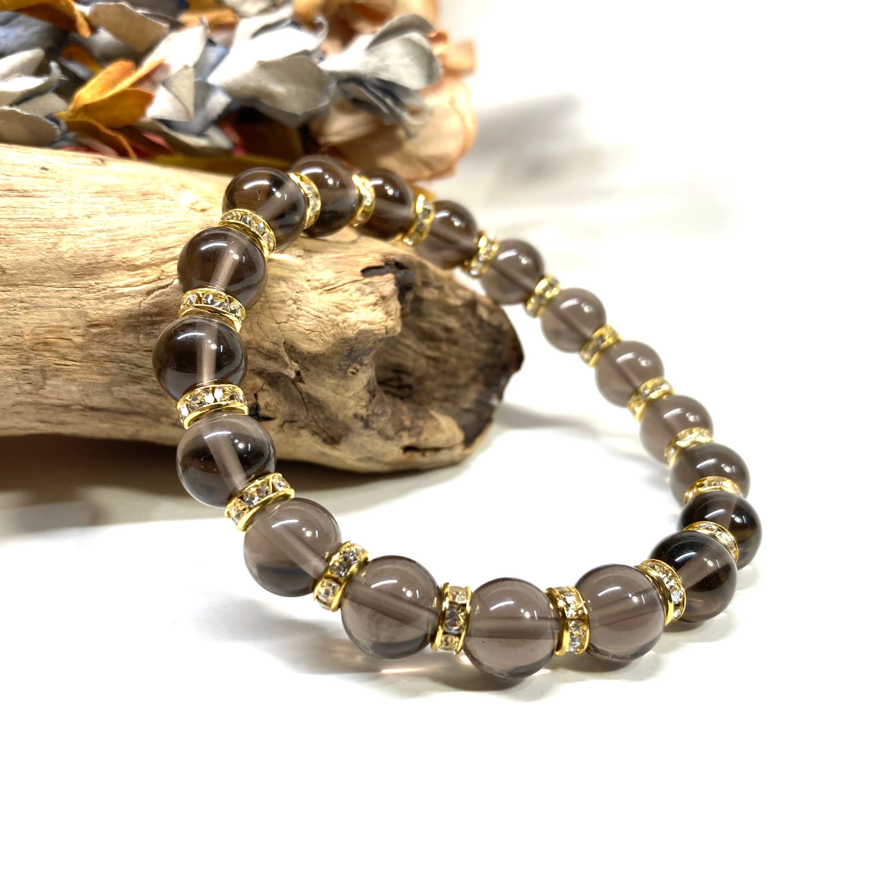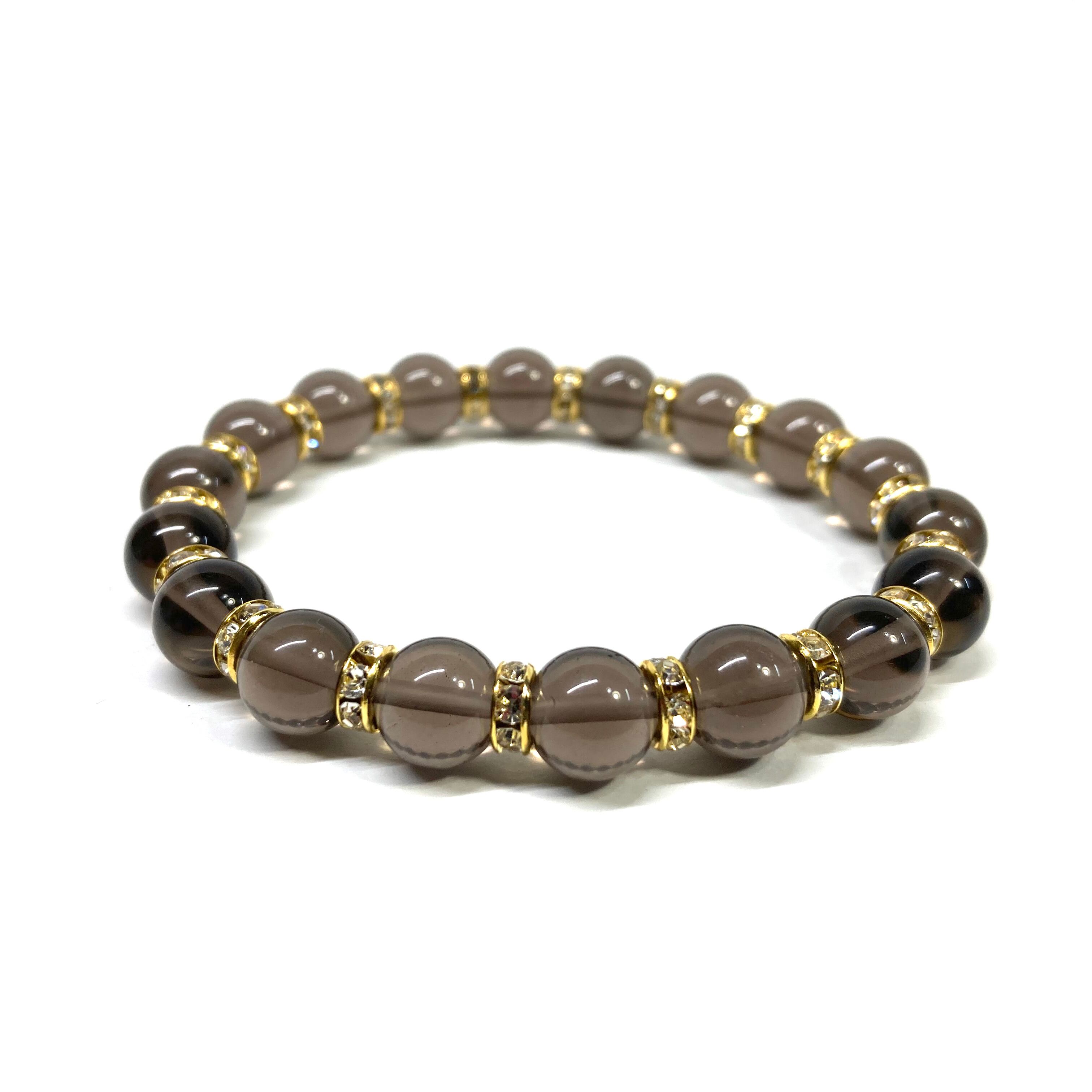 スモーキークォーツ パワーストーン ブレスレット 8mm 天然石 (ゴールド)メンズ・レディース 男性・女性 数珠ブレス 開運
