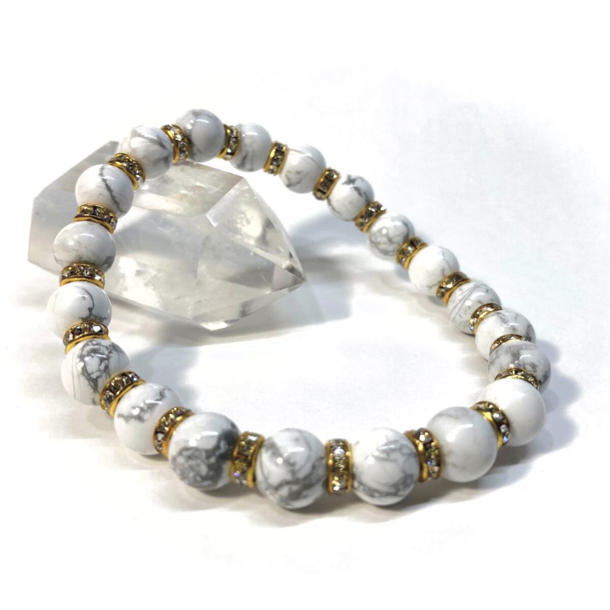 ハウライト パワーストーン ブレスレット 8mm 天然石 (ゴールド)メンズ・レディース 男性・女性 数珠ブレス 開運