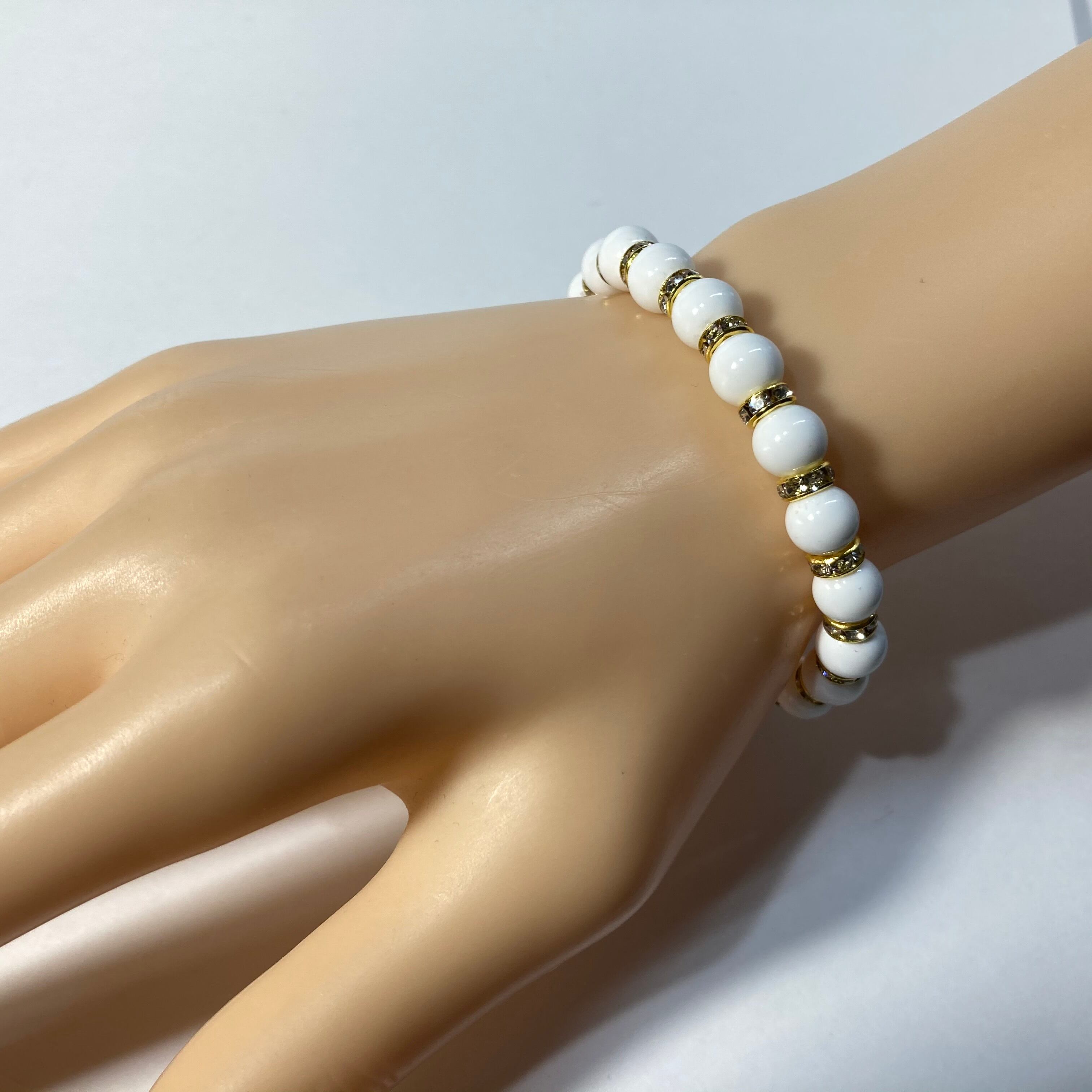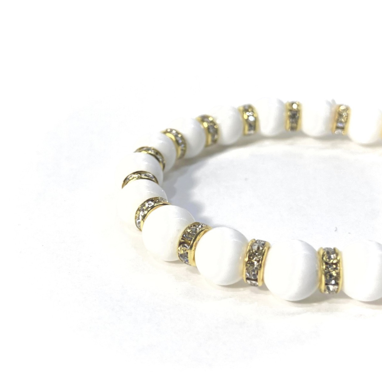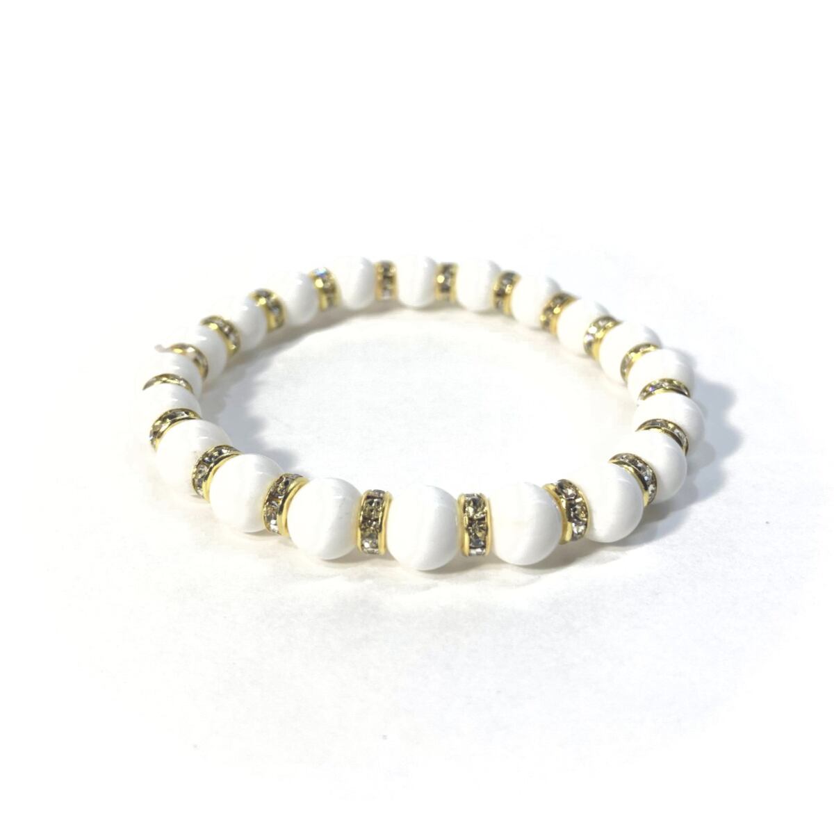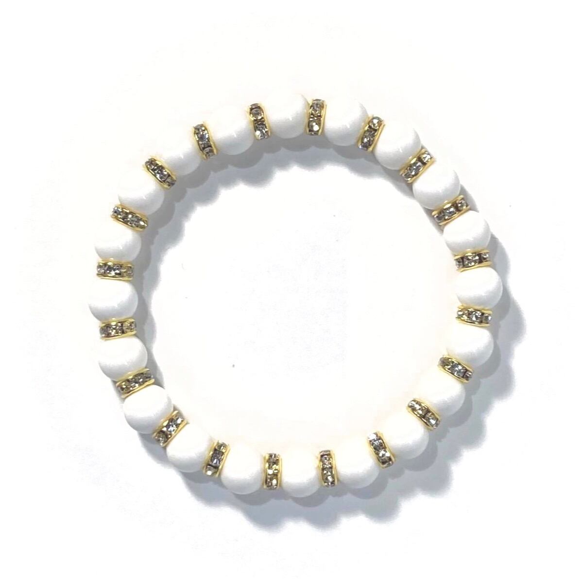 ホワイトオニキス パワーストーン ブレスレット 8mm (ゴールド)メンズ・レディース 男性・女性 数珠ブレス 開運