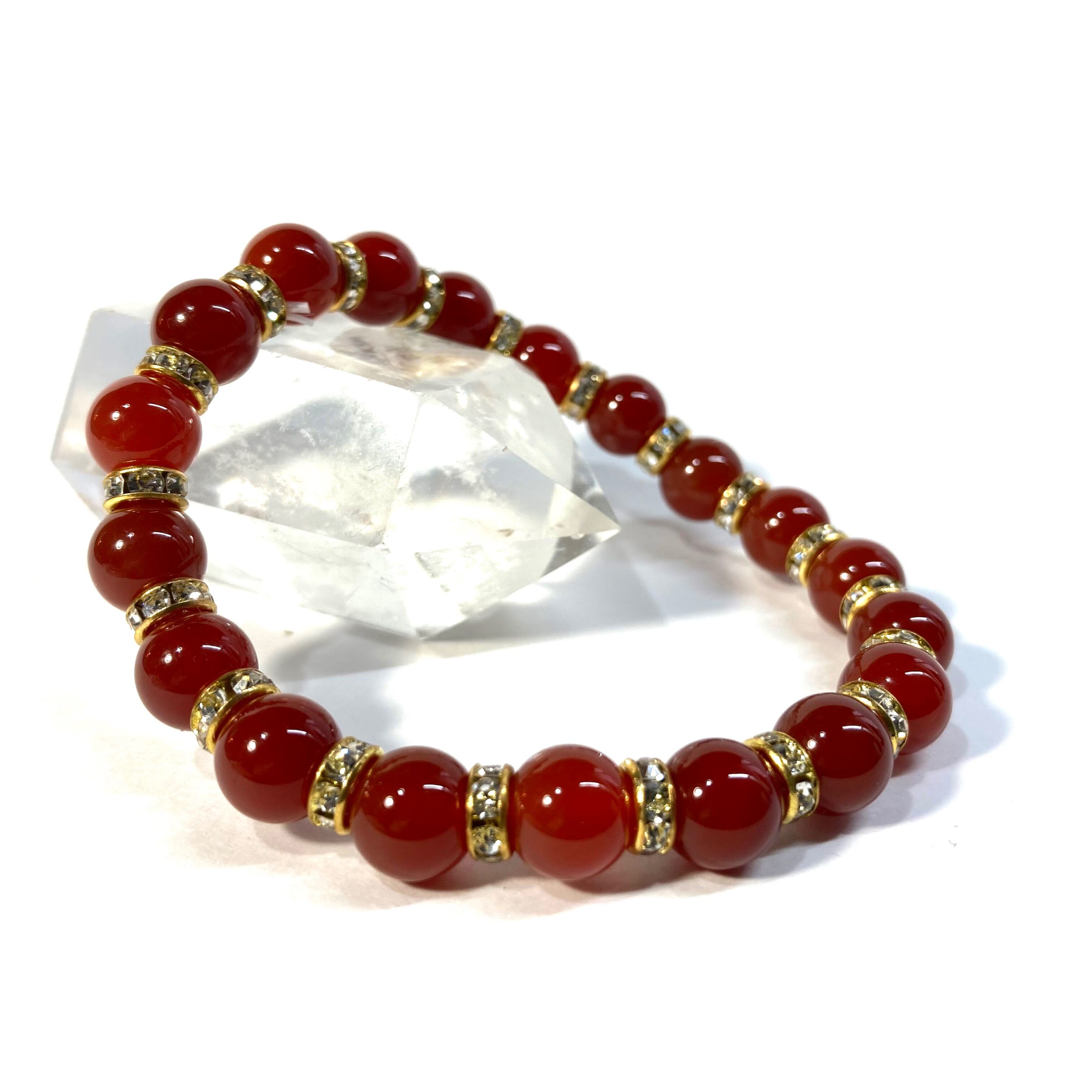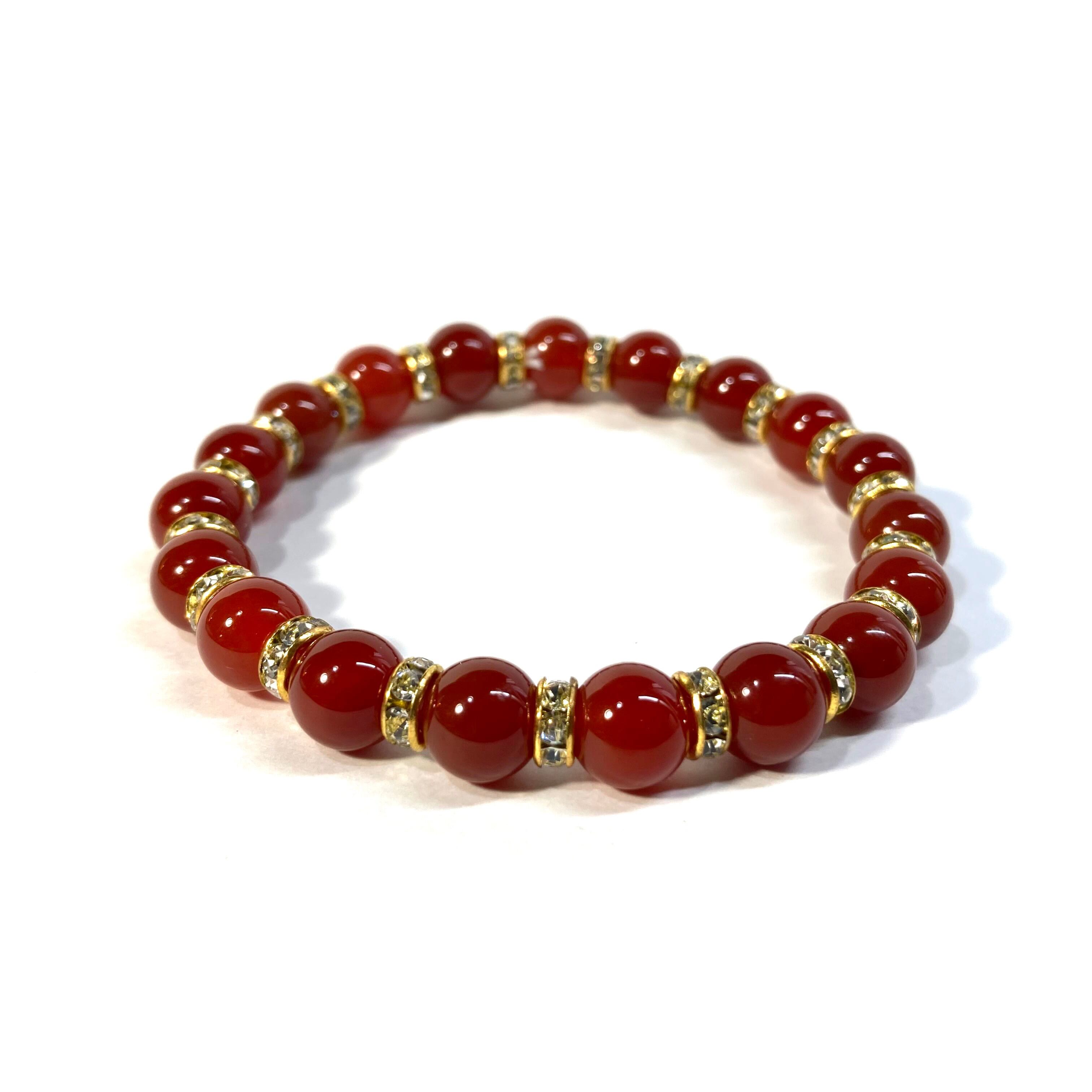 赤瑪瑙 パワーストーン ブレスレット 8mm 7月誕生石 (ゴールド)メンズ・レディース 男性・女性 数珠ブレス 開運