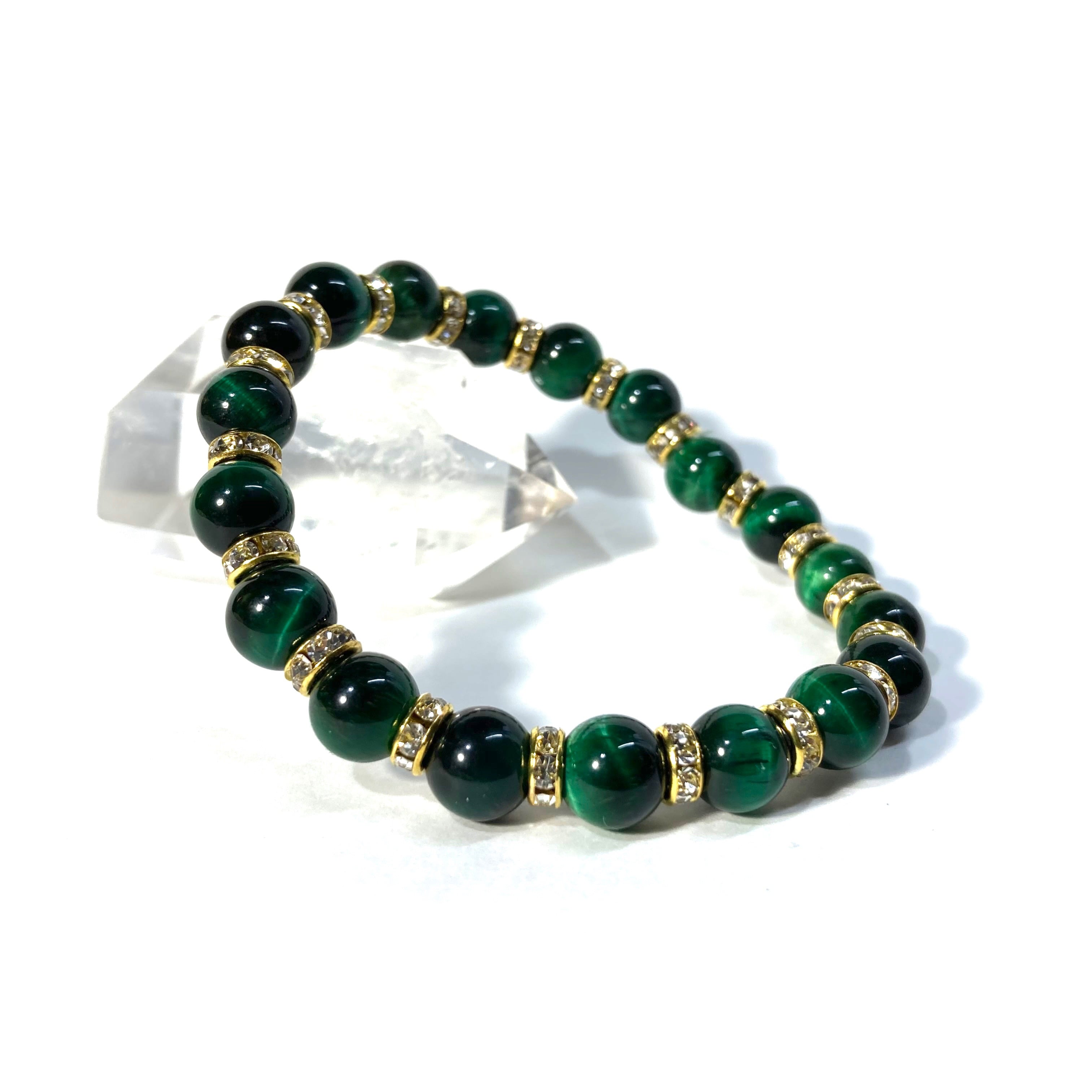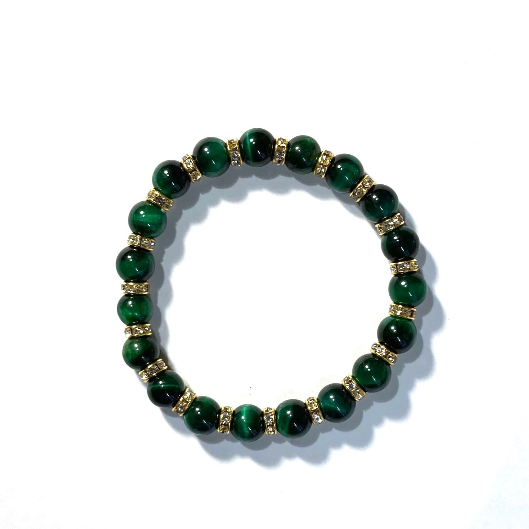 グリーンタイガーアイ パワーストーン ブレスレット 8mm (ゴールド)メンズ・レディース 男性・女性 数珠ブレス 開運