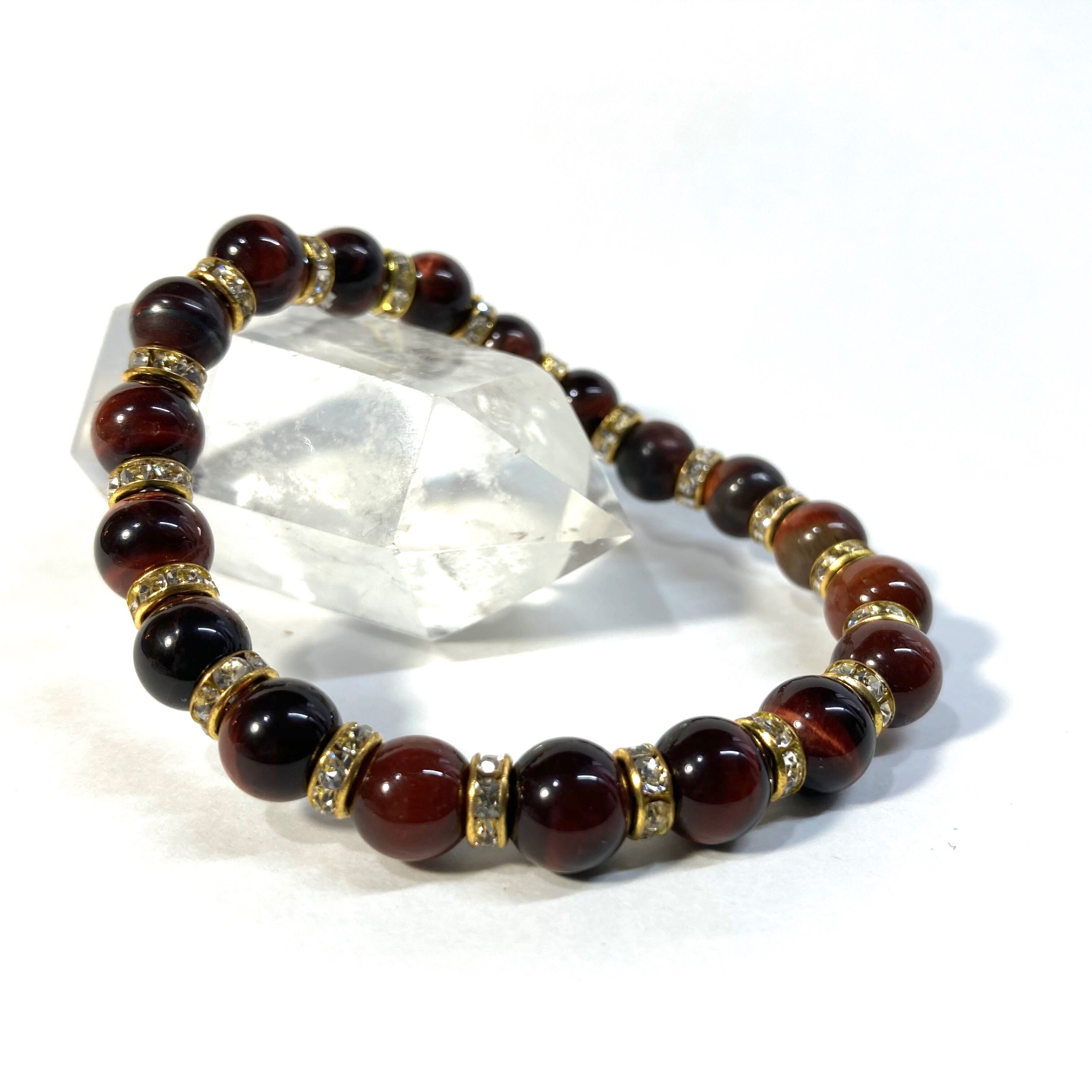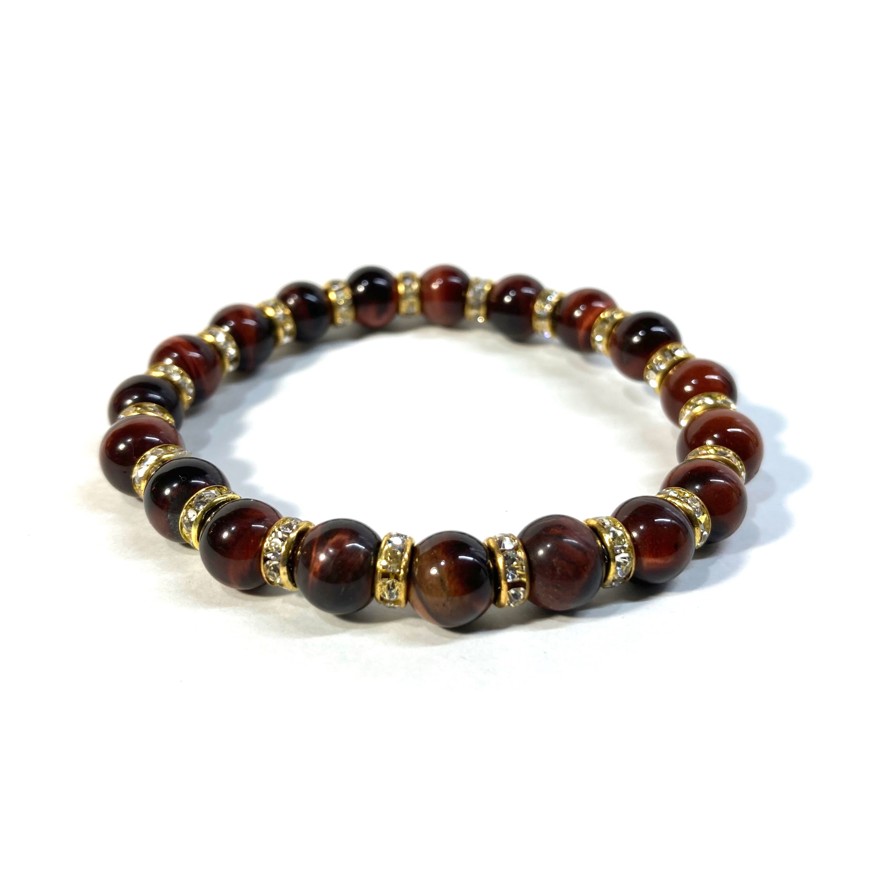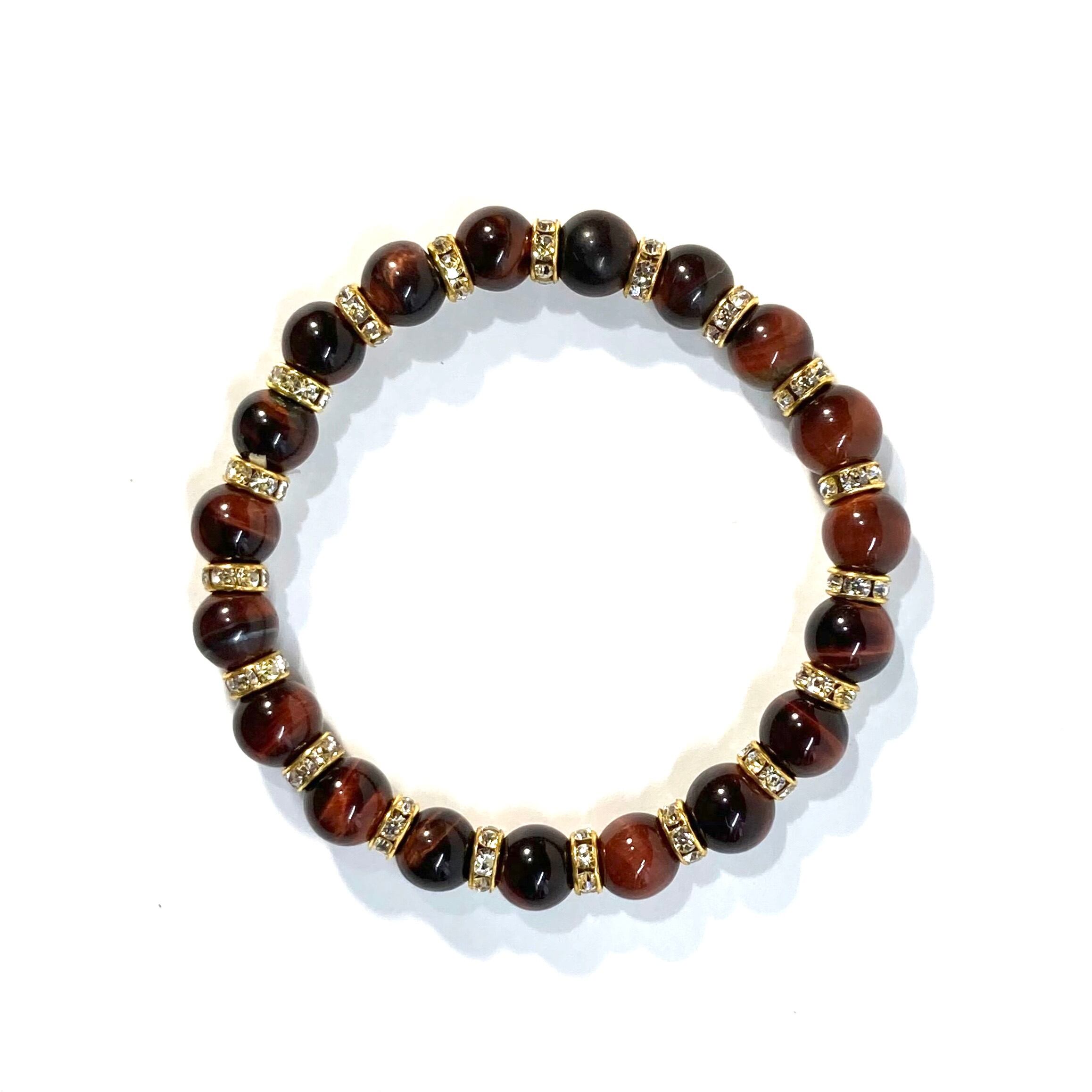 レッドタイガーアイ パワーストーン ブレスレット 8mm (ゴールド)メンズ・レディース 男性・女性 数珠ブレス 開運