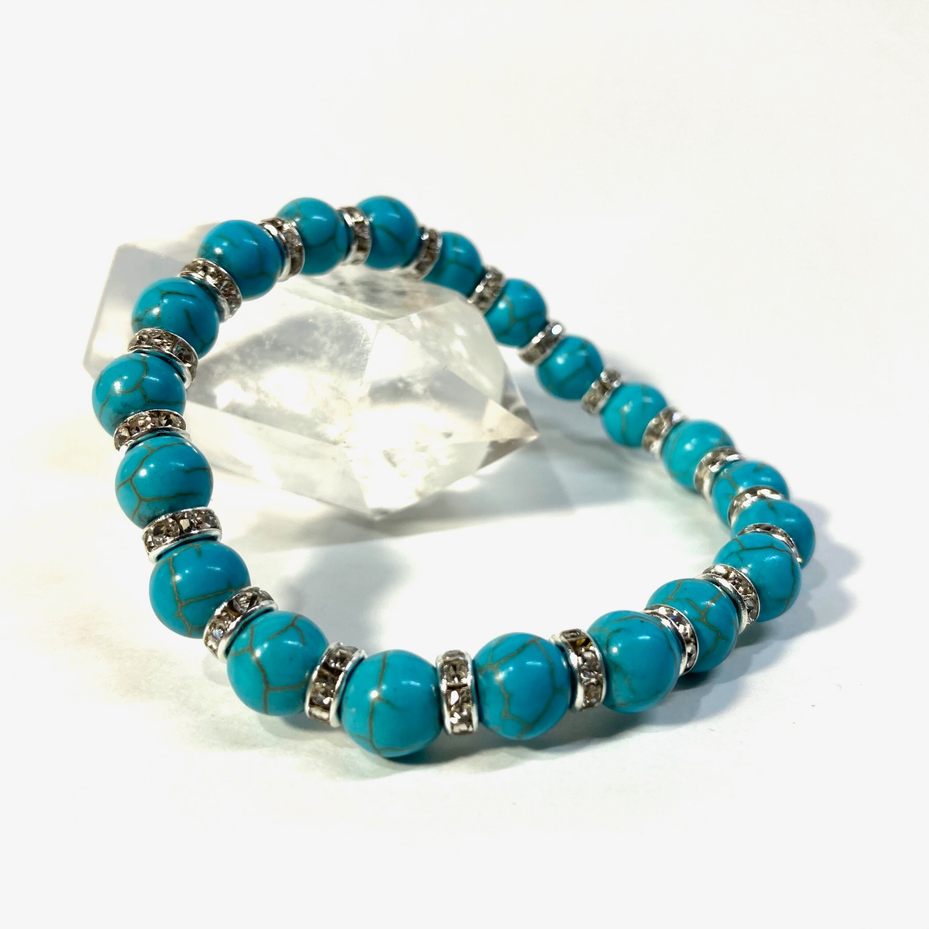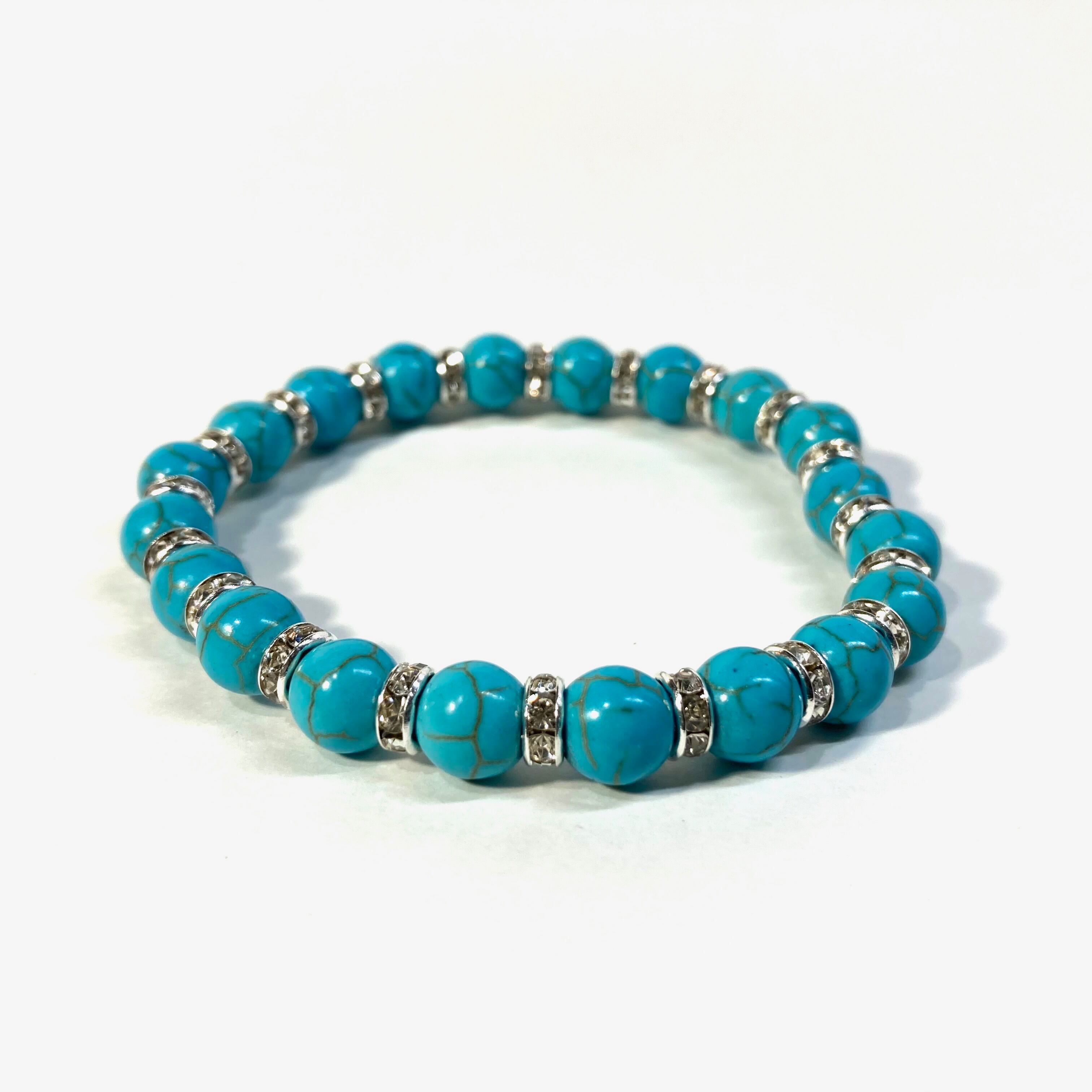ターコイズ パワーストーン ブレスレット 8mm #2 (シルバー)メンズ・レディース 男性・女性 数珠ブレス 開運