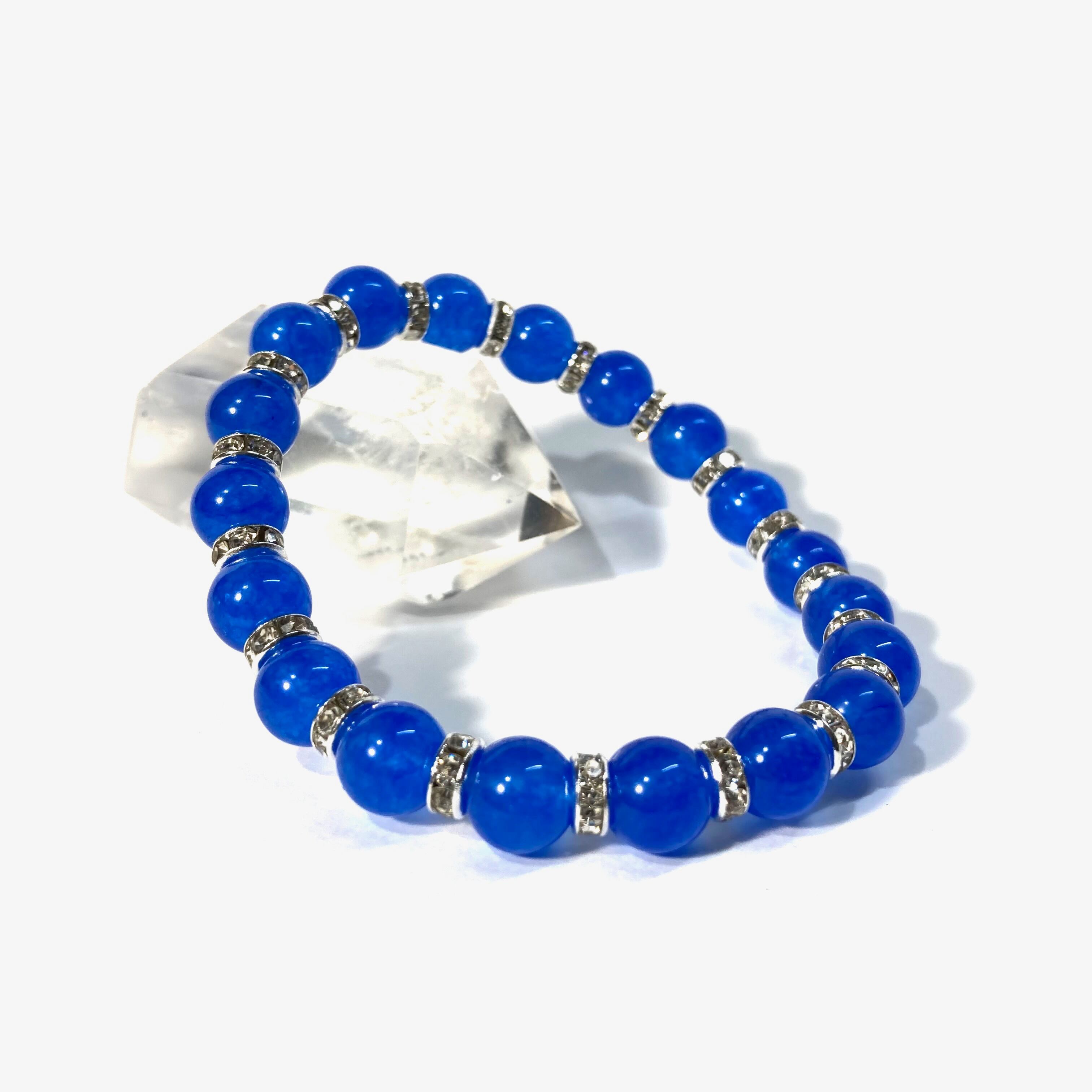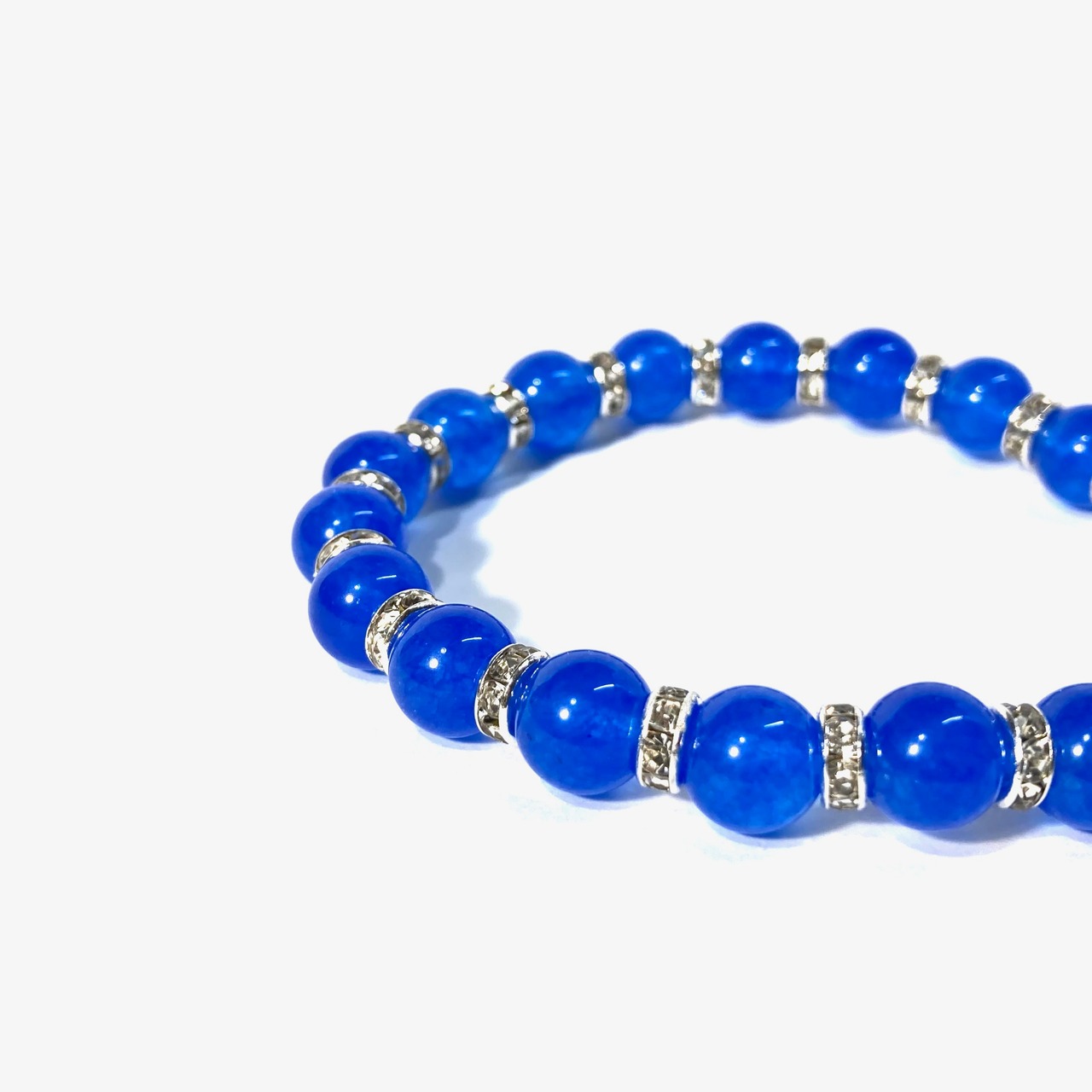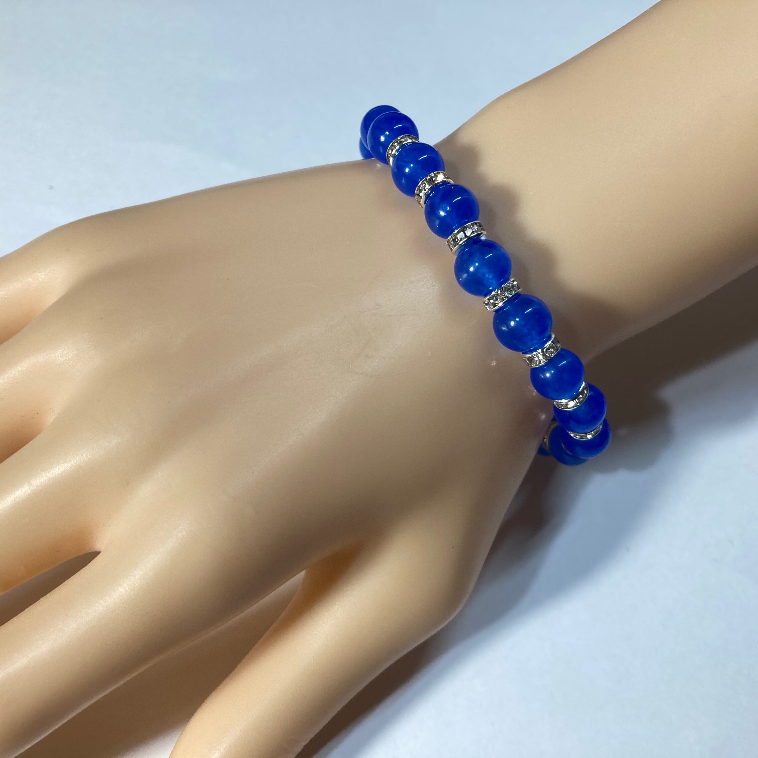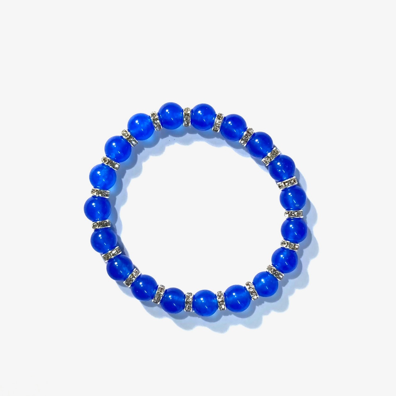 こちらは、ブルーメノウの8mm玉を使用したパワーストーンブレスレットです。石との間にはロンデルを挟み高級感を演出しております。シンプルなデザインは、シーン問わずどんなコーディネートとも合わせ易いブレスレットです。サイズは内周約15cm (手首周りを測り少し余裕をもってお買い求めくださいませ。)です。当社の中でも一番人気の実績があるデザインとなっております。気になる方はお早めにどうぞ。