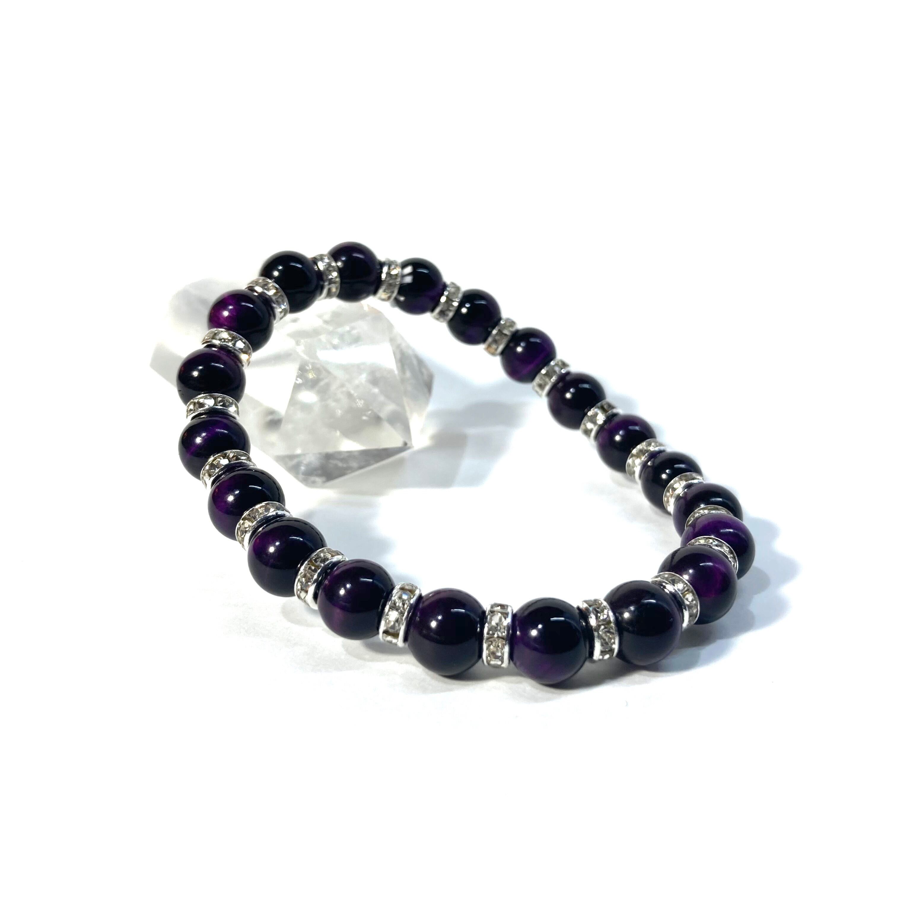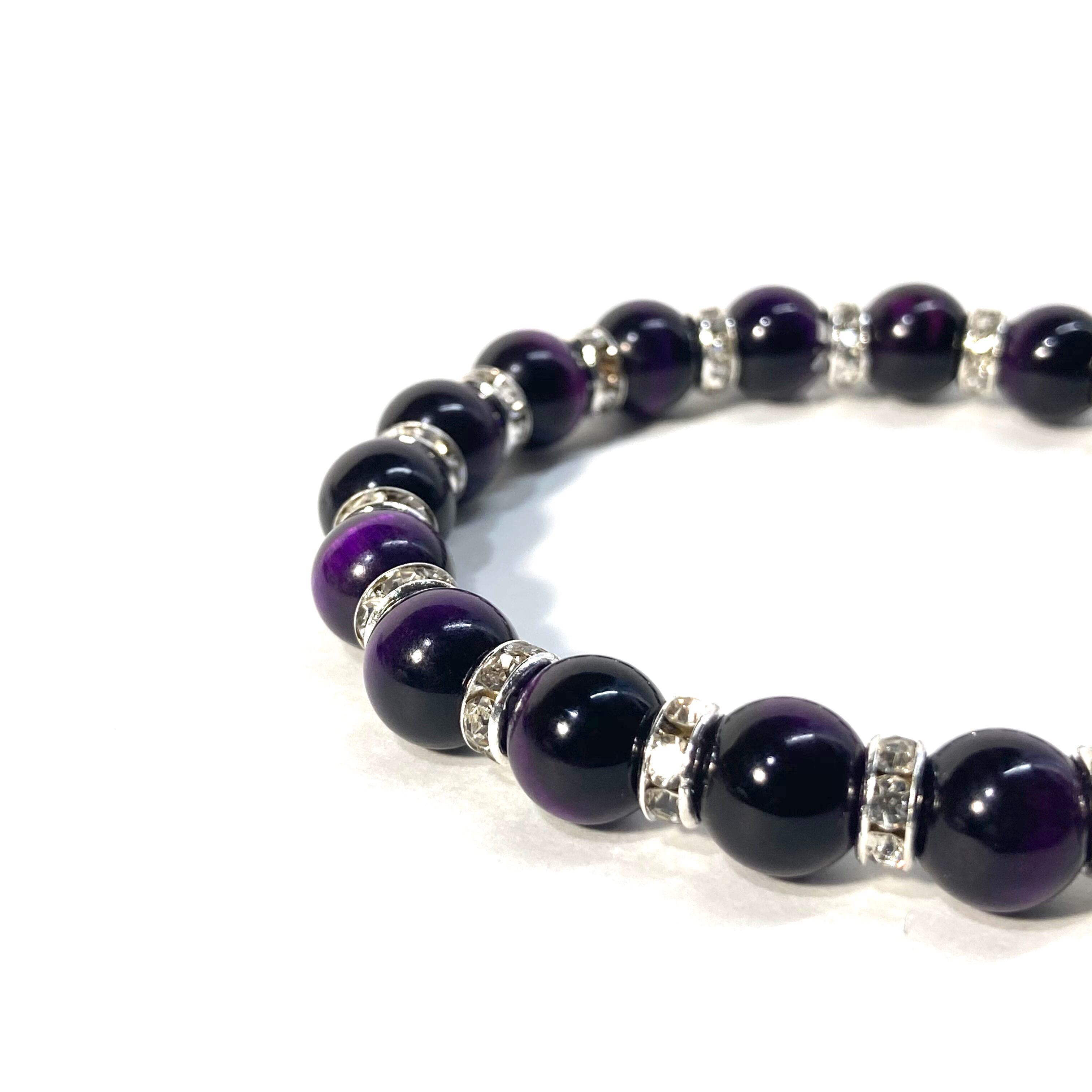 パープルタイガーアイ パワーストーン ブレスレット 8mm (シルバー)メンズ・レディース 男性・女性 数珠ブレス 開運