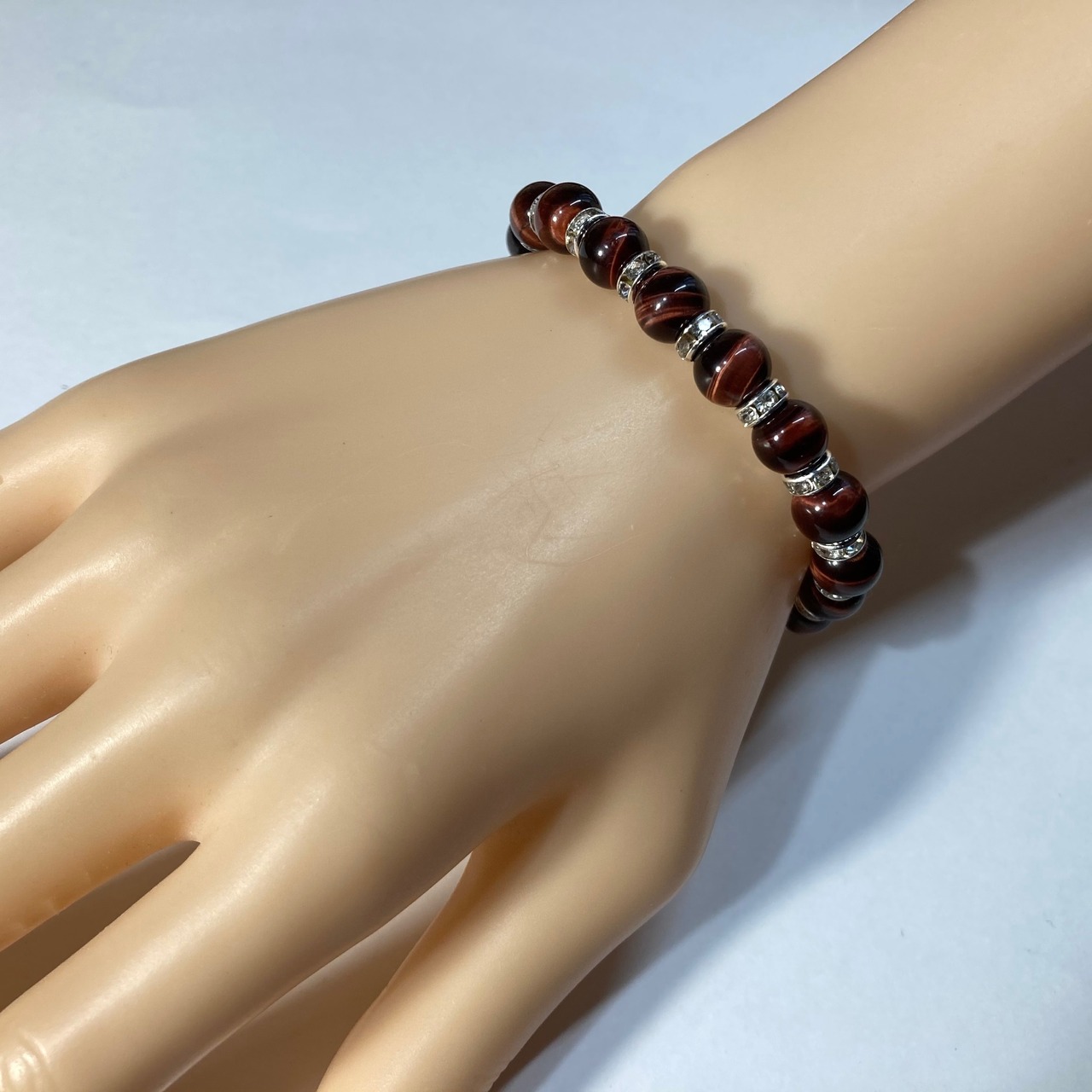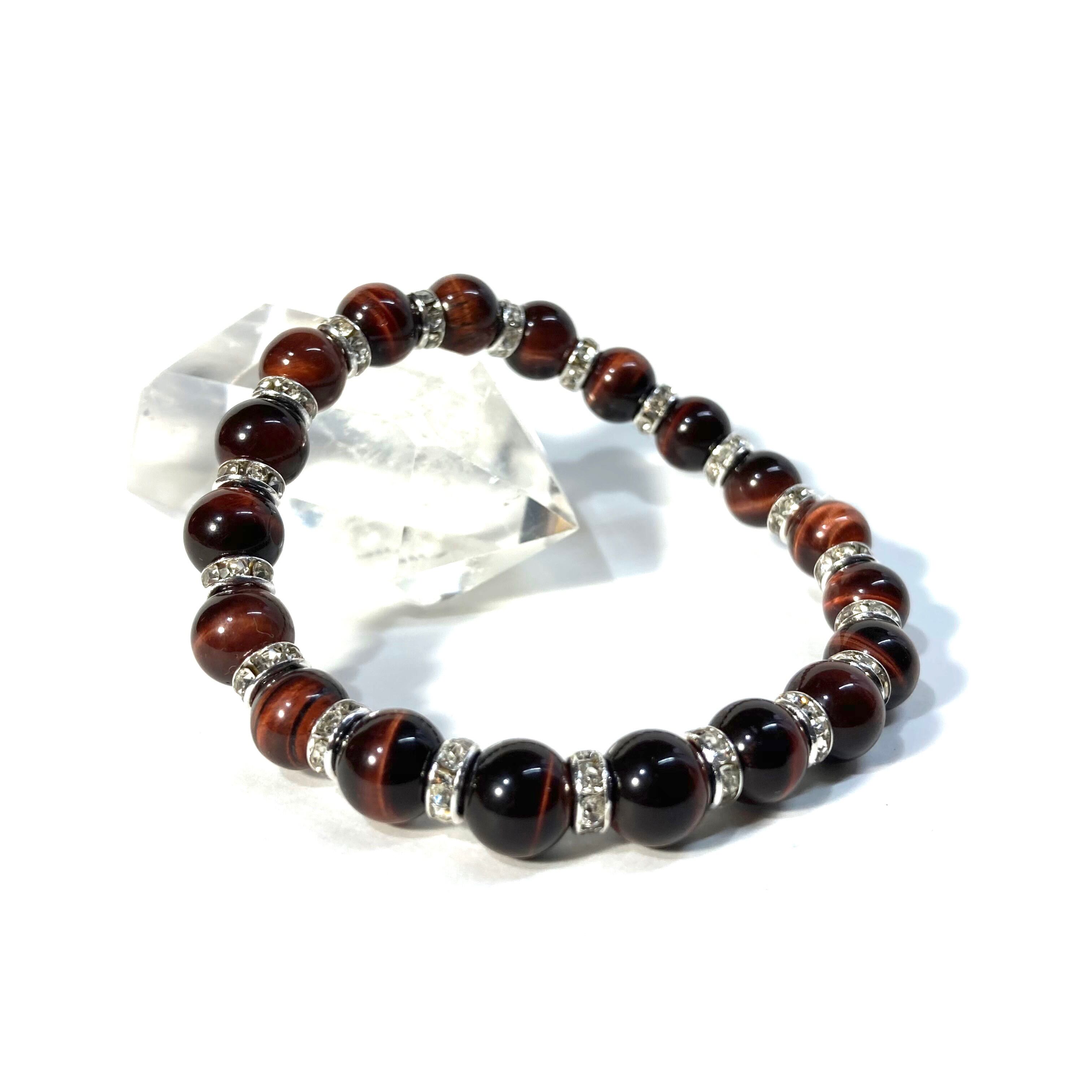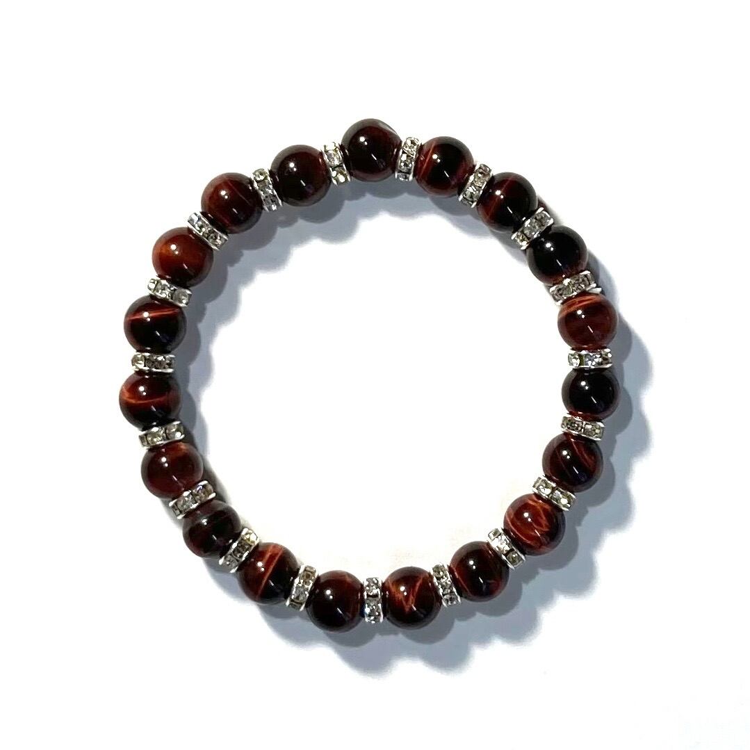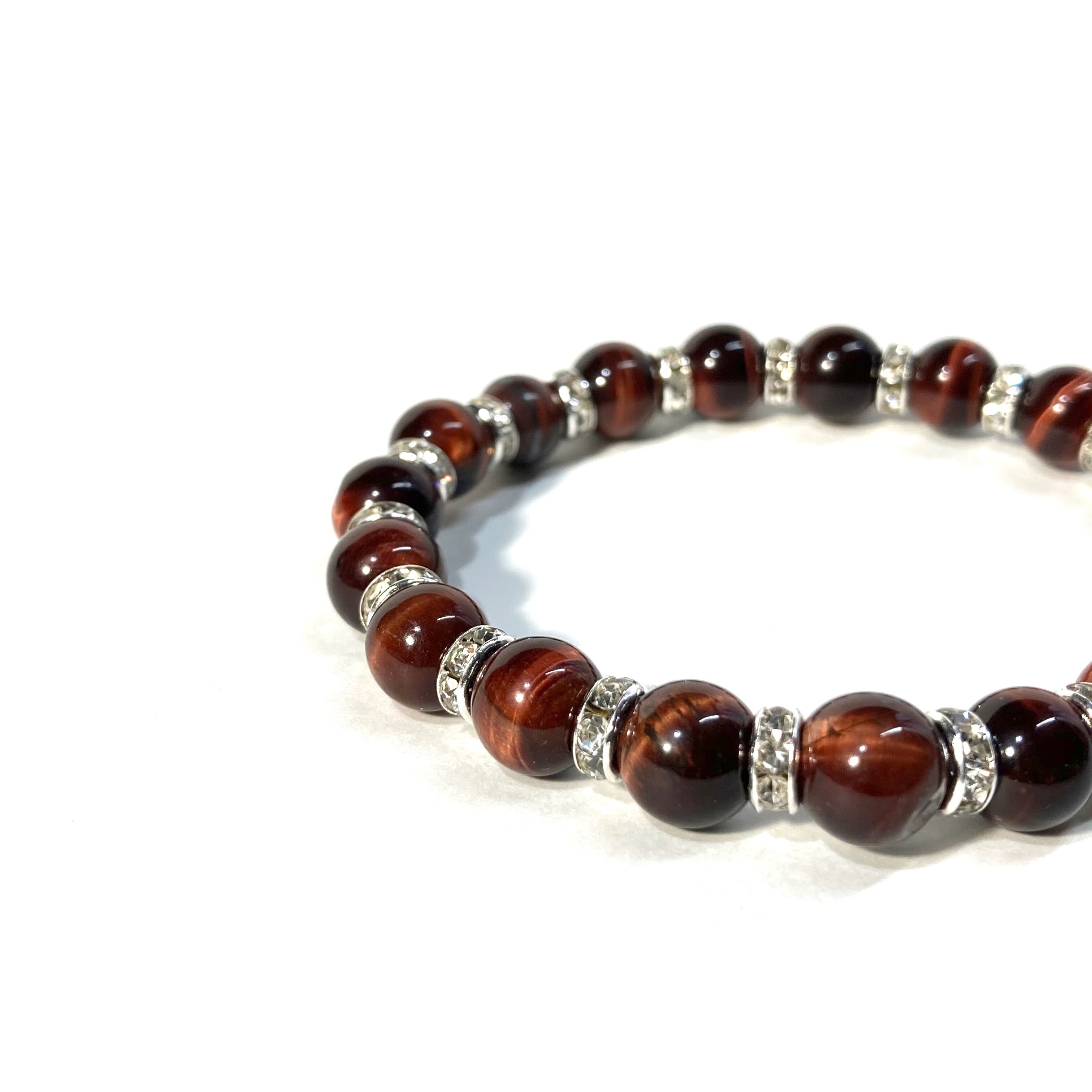 レッドタイガーアイ パワーストーン ブレスレット 8mm (シルバー)メンズ・レディース 男性・女性 数珠ブレス 開運