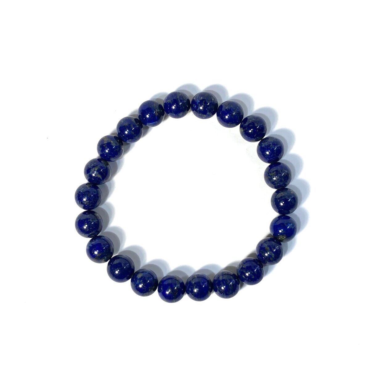 こちらは、ラピスラズリの8mm玉を使用したパワーストーンブレスレットです。シンプルなデザインは、シーン問わずどんなコーディネートとも合わせ易いブレスレットです。内周15cmです。(サイズ変更は1cmあたり100円で承っております。サイズ変更の場合は金額変更しますのでメッセージにてご連絡くださいませ。)気になる方はお早めにどうぞ。