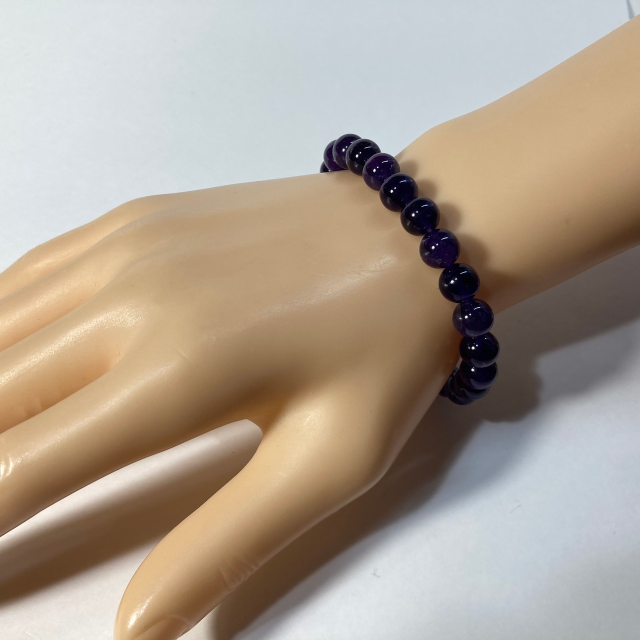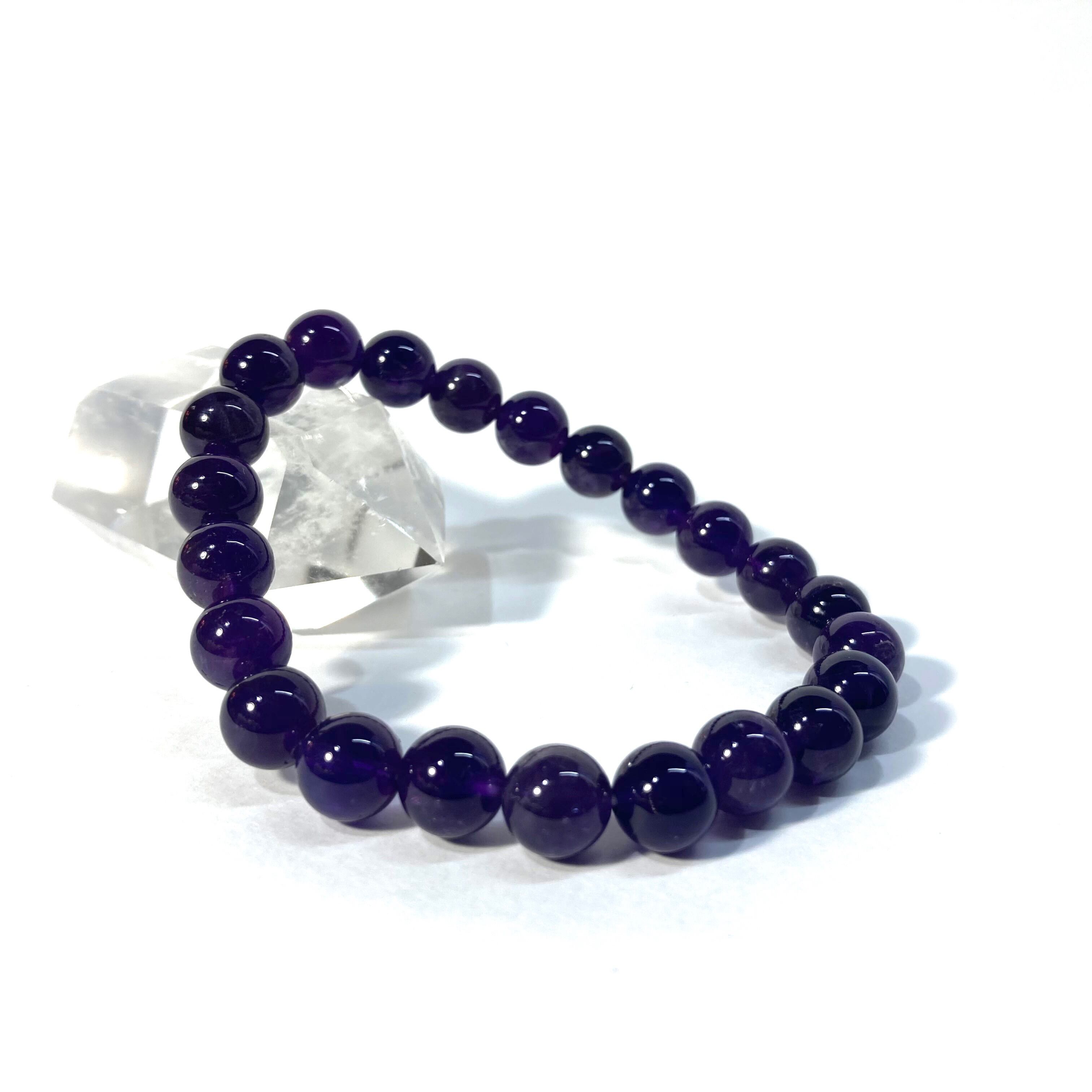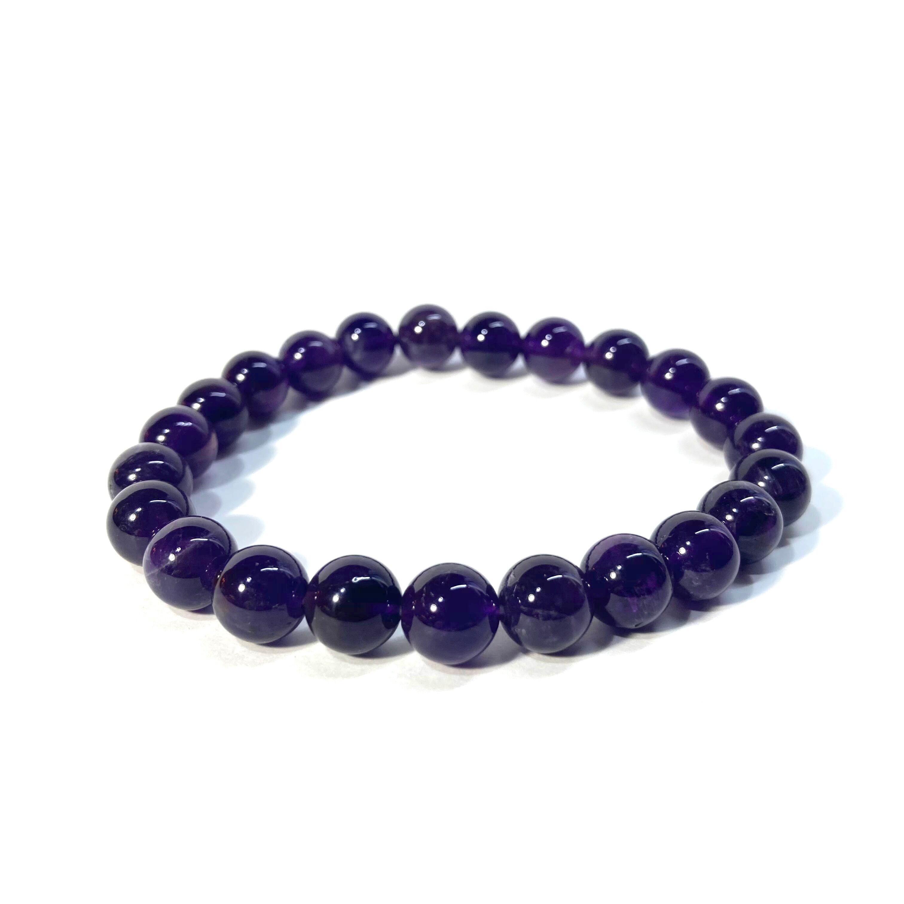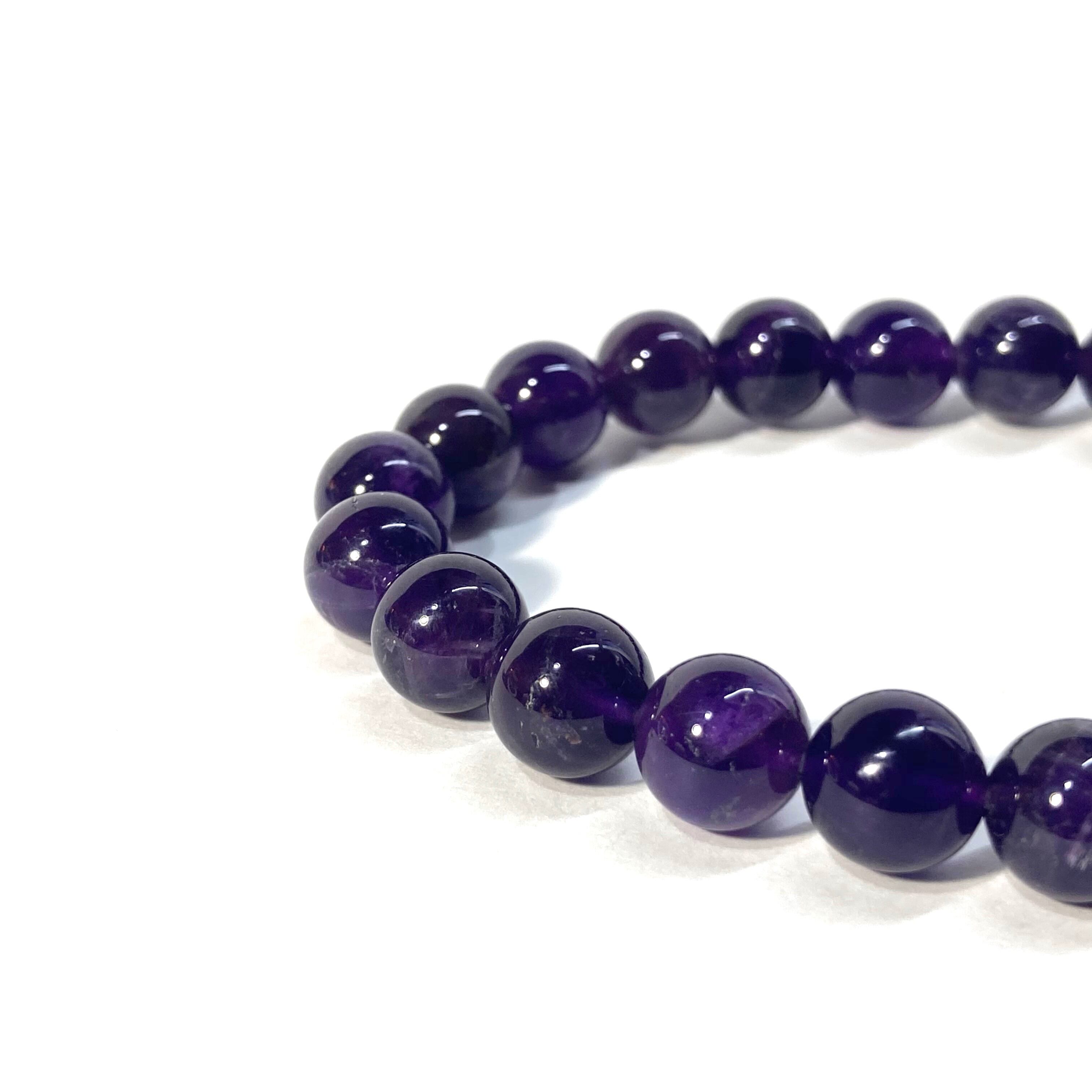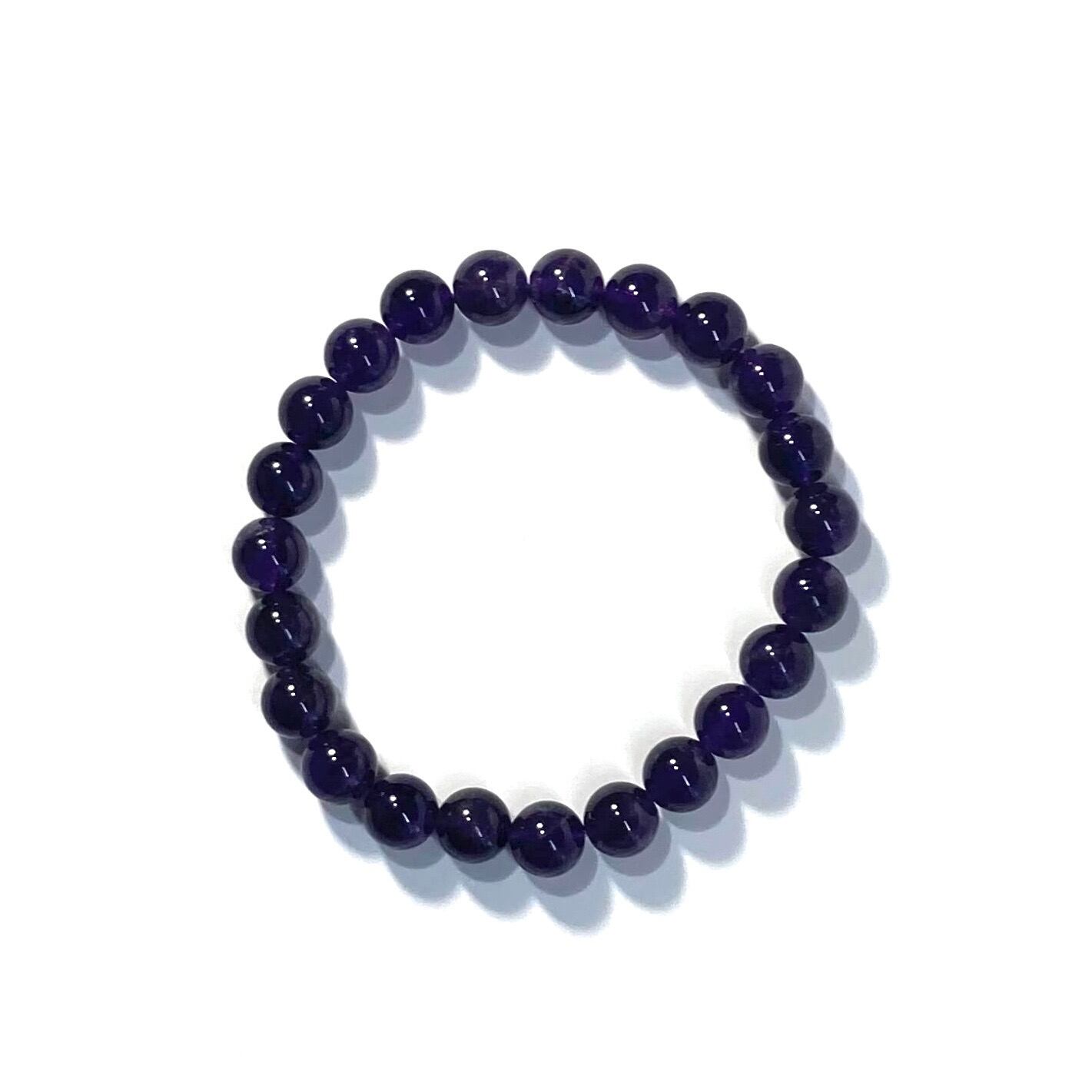 こちらは、アメジストの8mm玉を使用したパワーストーンブレスレットです。シンプルなデザインは、シーン問わずどんなコーディネートとも合わせ易いブレスレットです。内周15cmです。(サイズ変更は1cmあたり100円で承っております。サイズ変更の場合は金額変更しますのでメッセージにてご連絡くださいませ。)気になる方はお早めにどうぞ。