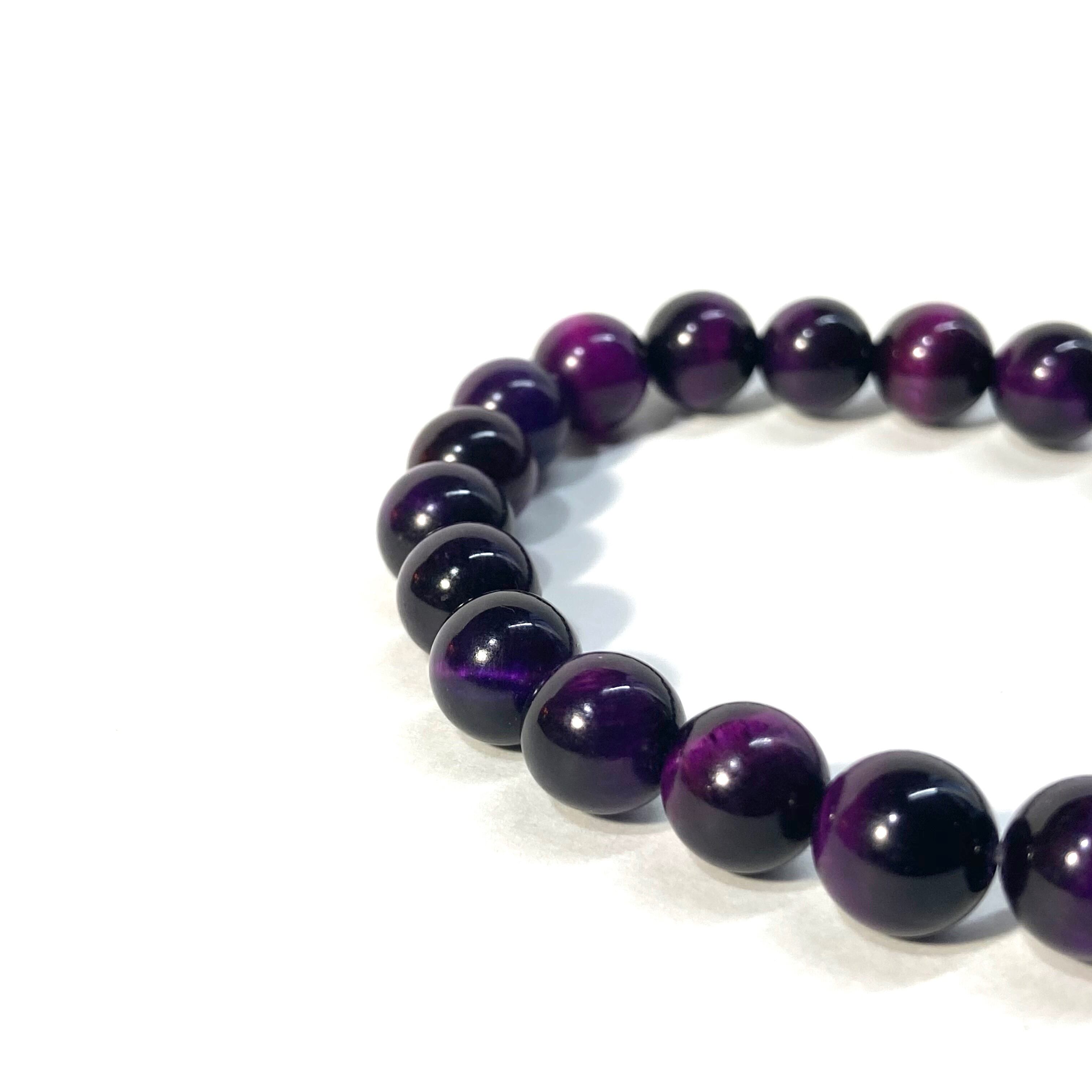 こちらは、パープルタイガーアイの8mm玉を使用したパワーストーンブレスレットです。シンプルなデザインは、シーン問わずどんなコーディネートとも合わせ易いブレスレットです。内周15cmです。(サイズ変更は1cmあたり100円で承っております。サイズ変更の場合は金額変更しますのでメッセージにてご連絡くださいませ。)気になる方はお早めにどうぞ。