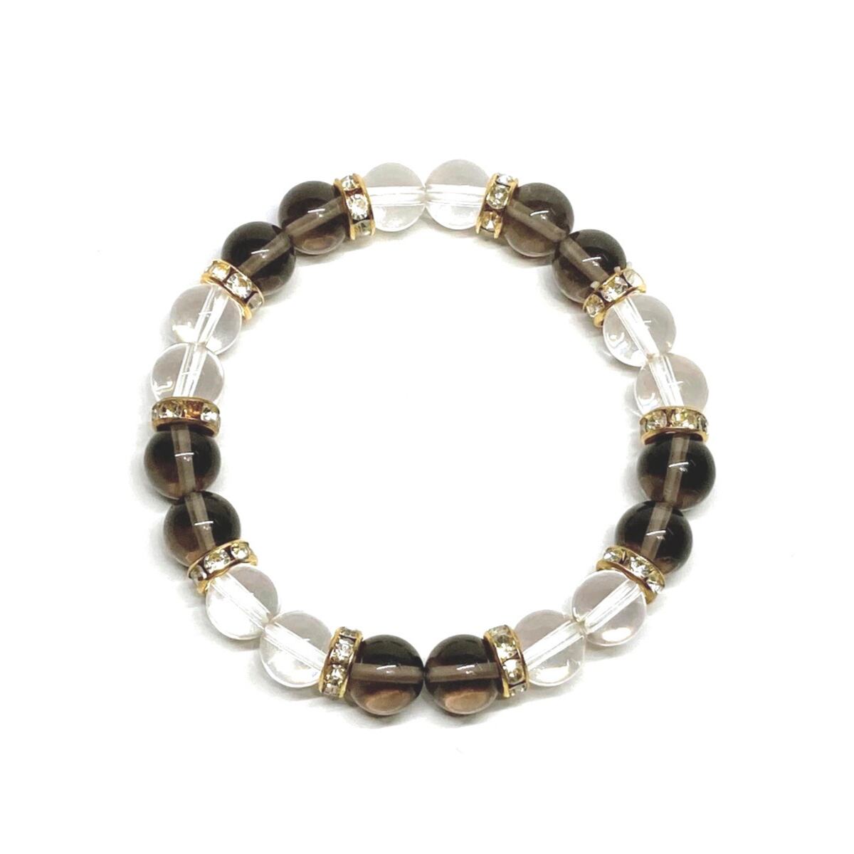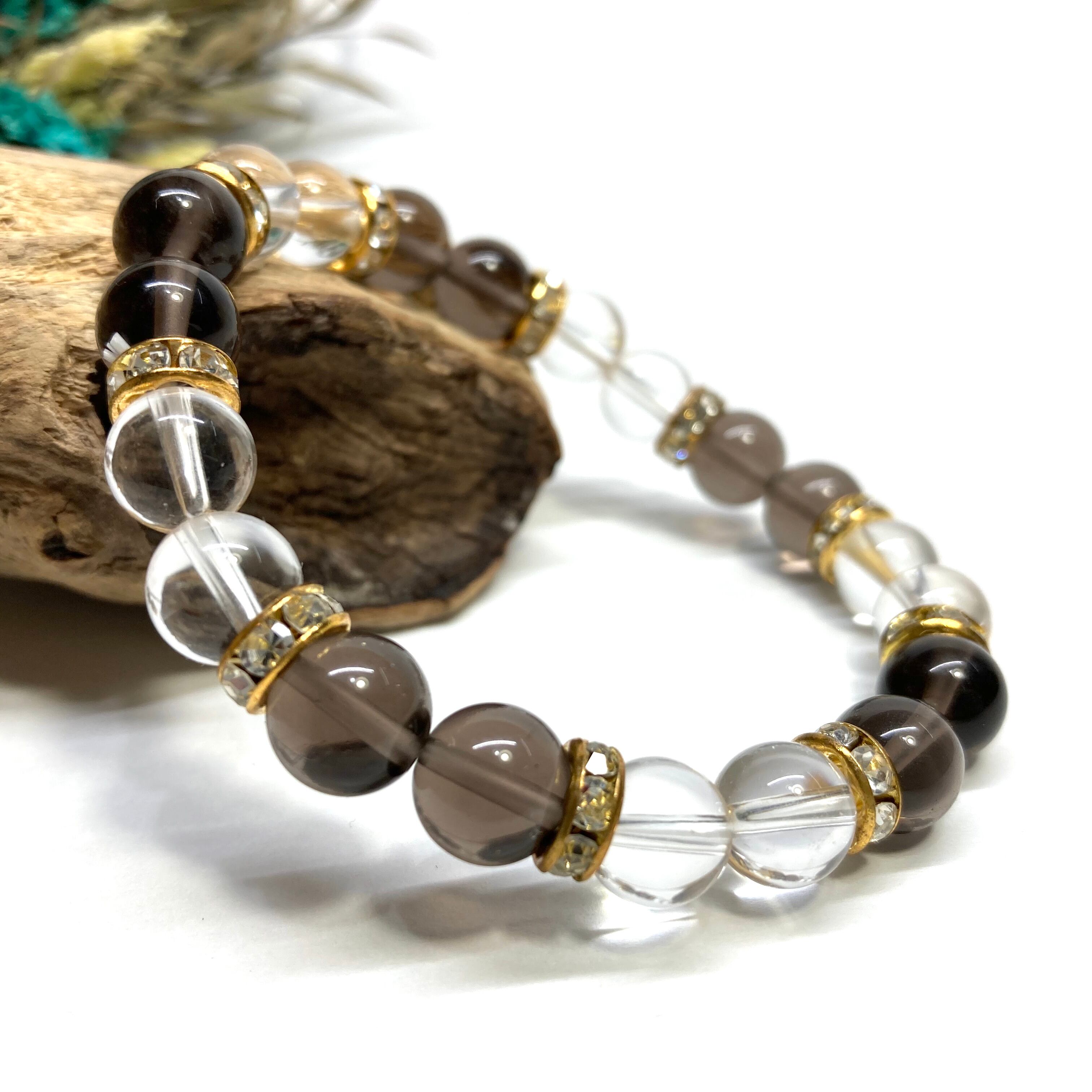 スモーキークォーツ&水晶 パワーストーン ブレスレット 天然石ブレス (ゴールド) 8mm レディース 女性 数珠ブレス 開運 プレゼント ギフト